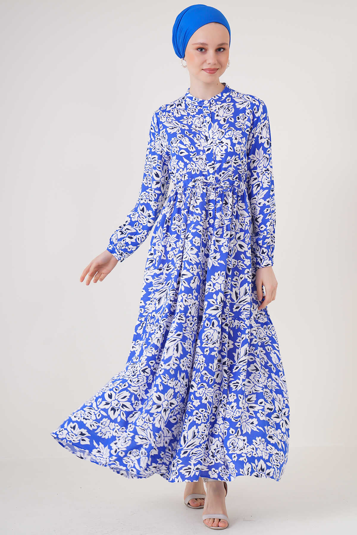 2144 Hakim Yaka Tesettür Elbise - Saks