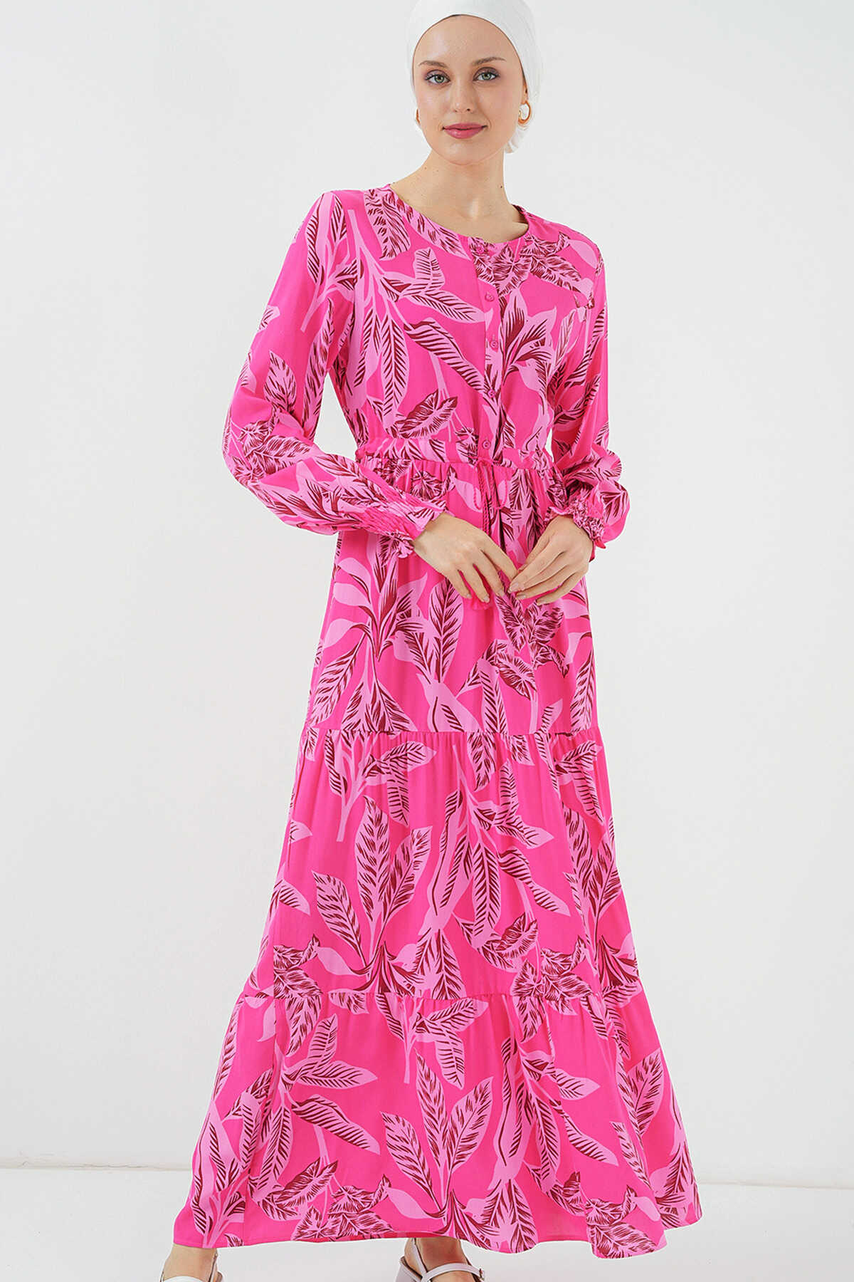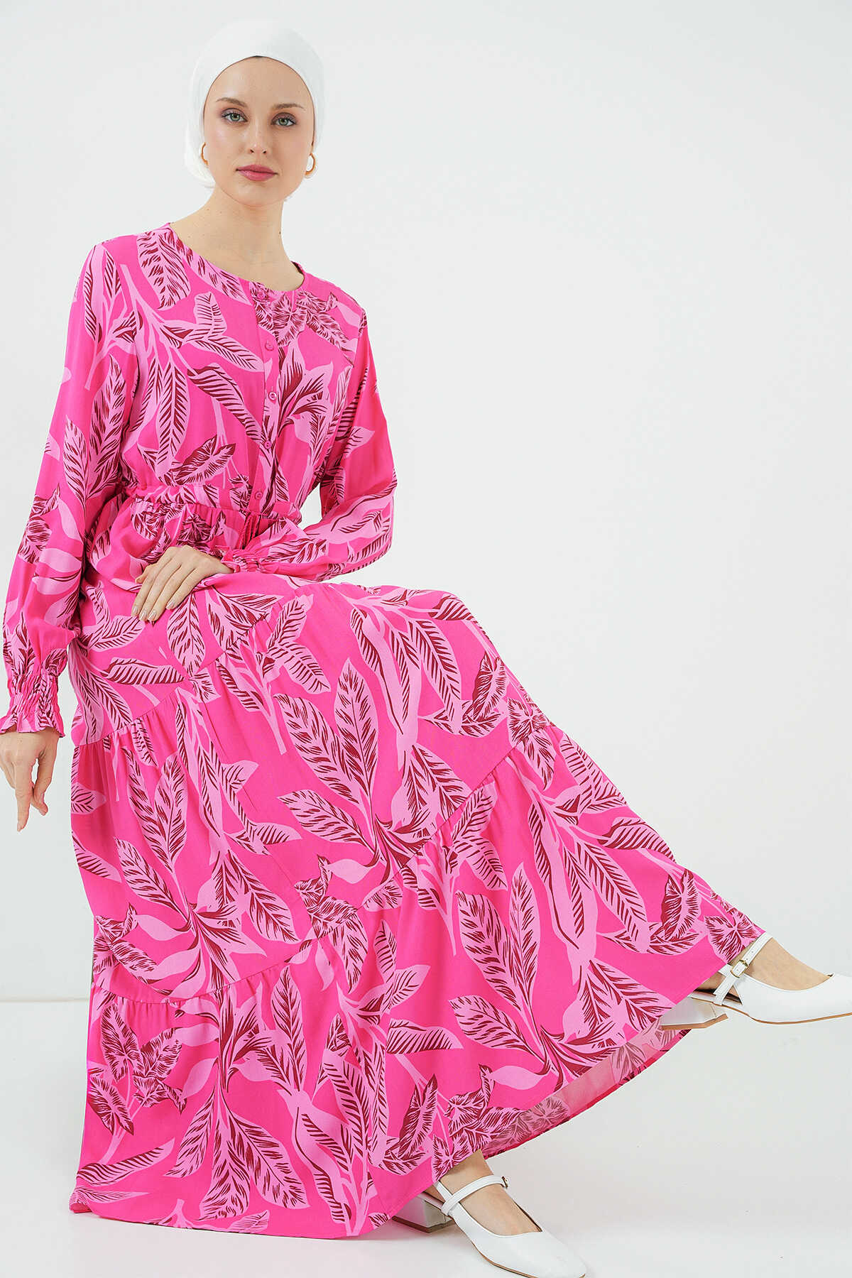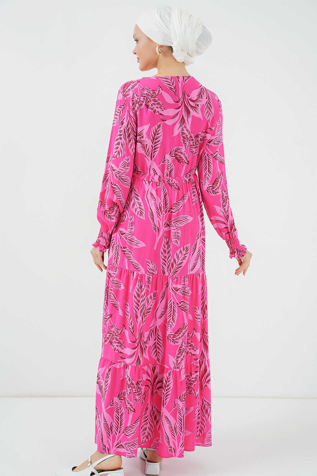 Yaprak Desenli Elbise, Kol Büzgülü Elbise