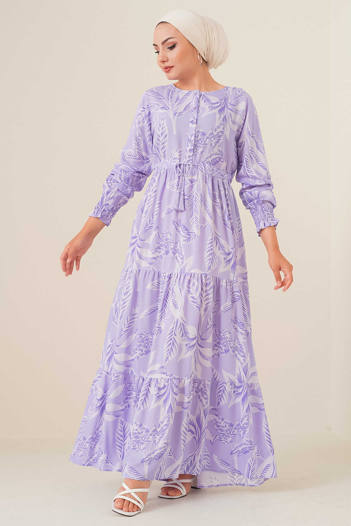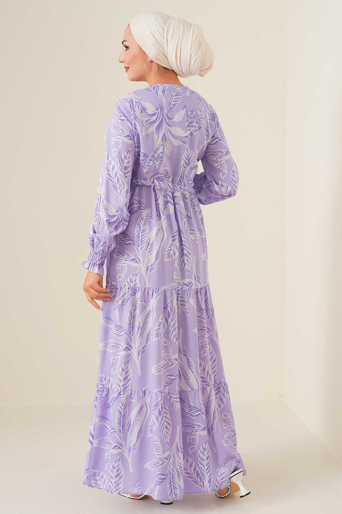 Yaprak Desenli Elbise, Kol Büzgülü Elbise