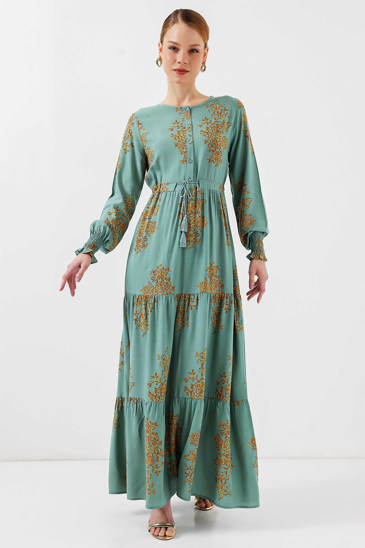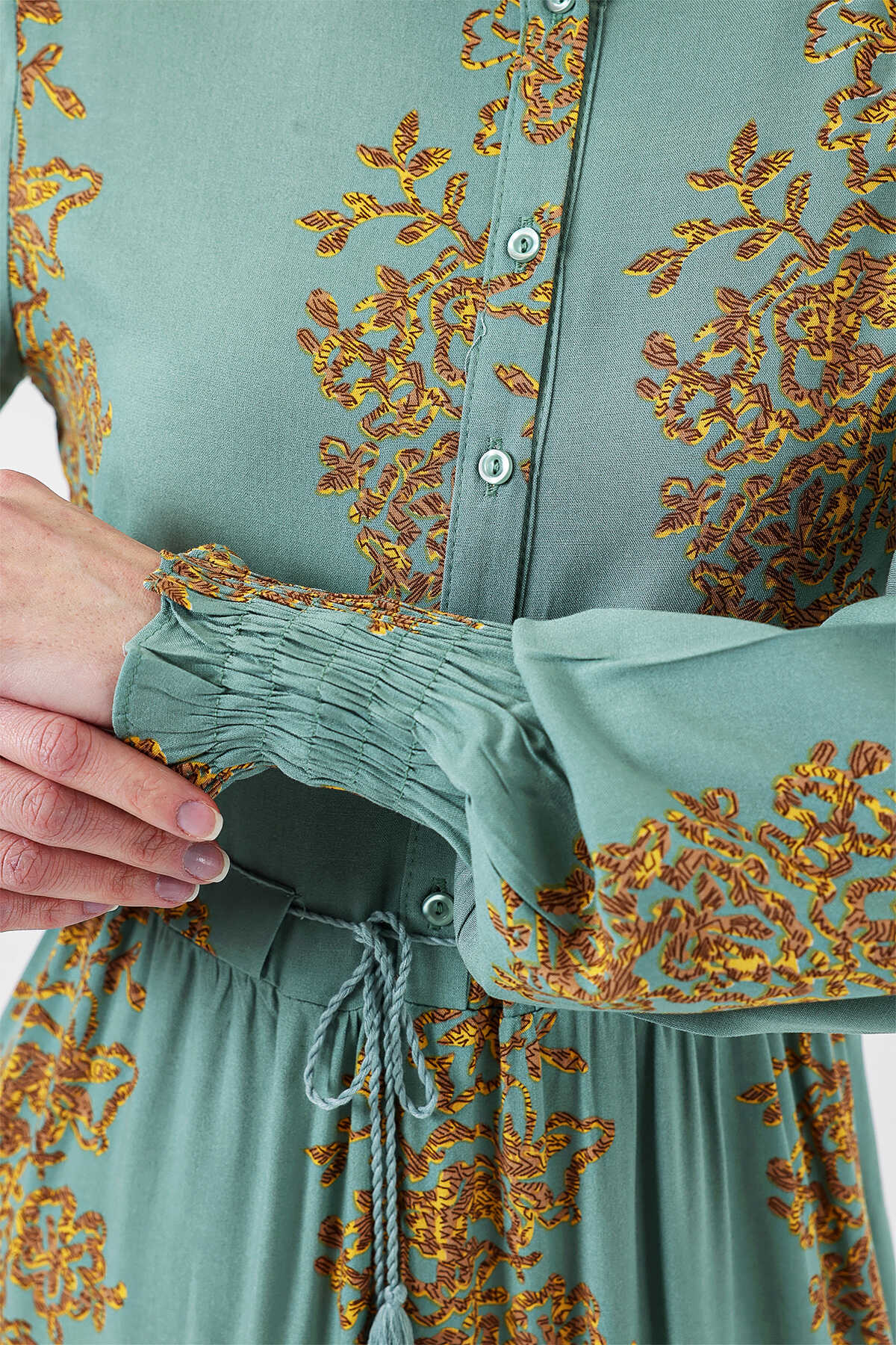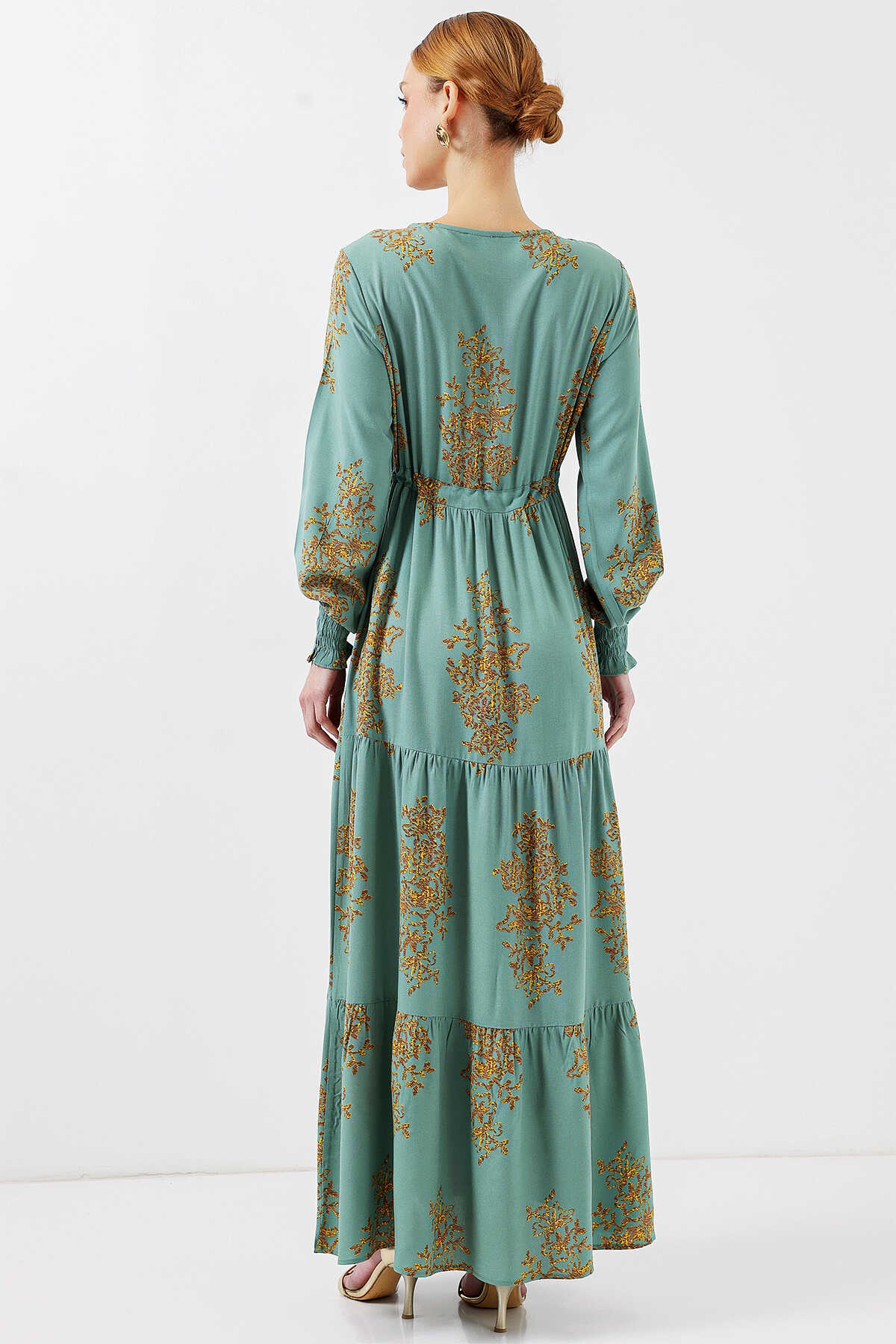 2145 Desenli Tesettür Elbise - Mint - Kombin