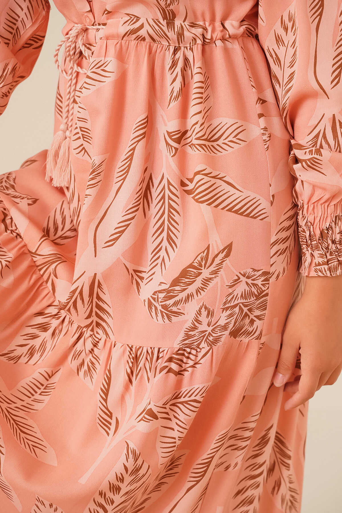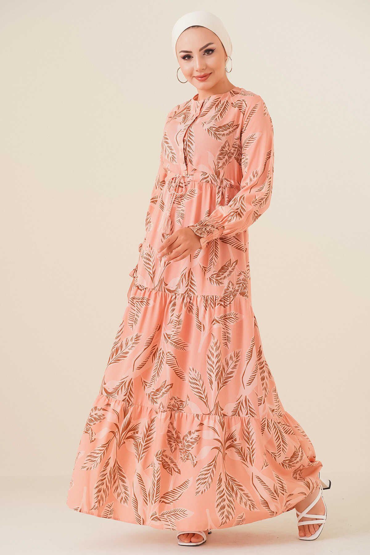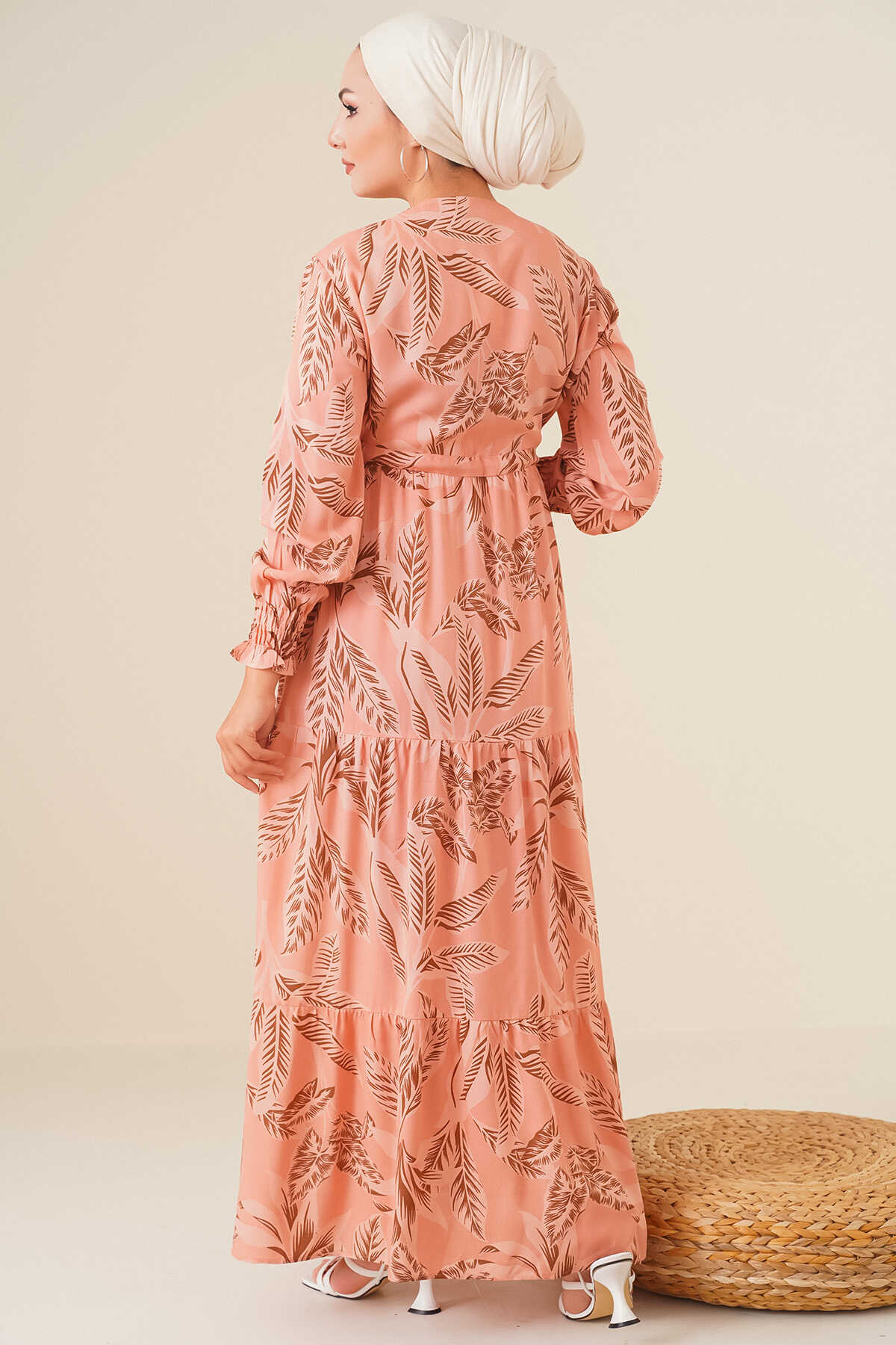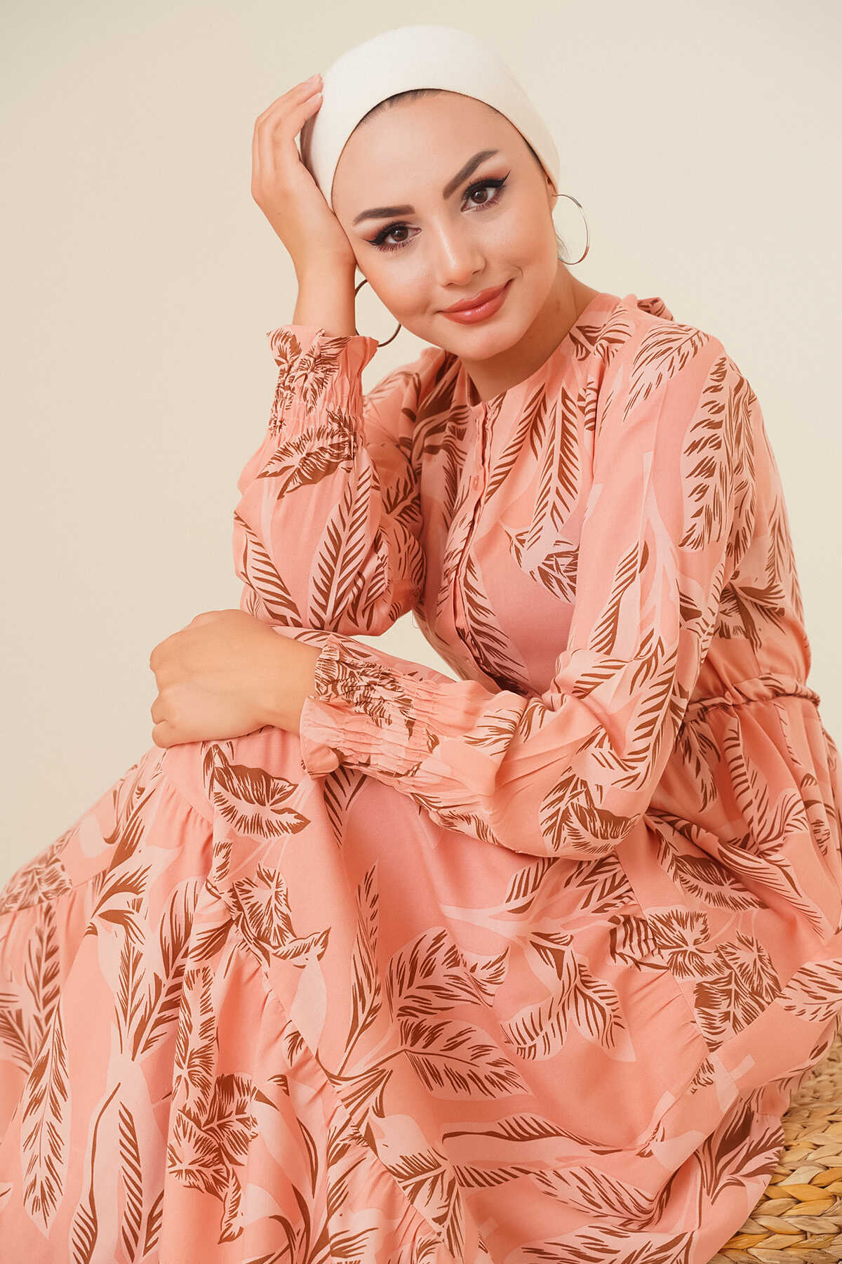 Yaprak Desenli Elbise, Kol Büzgülü Elbise