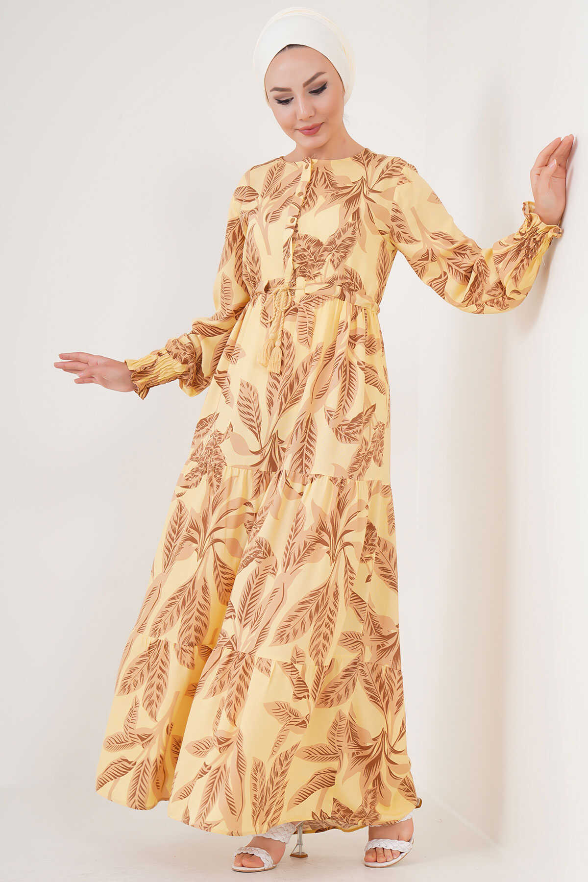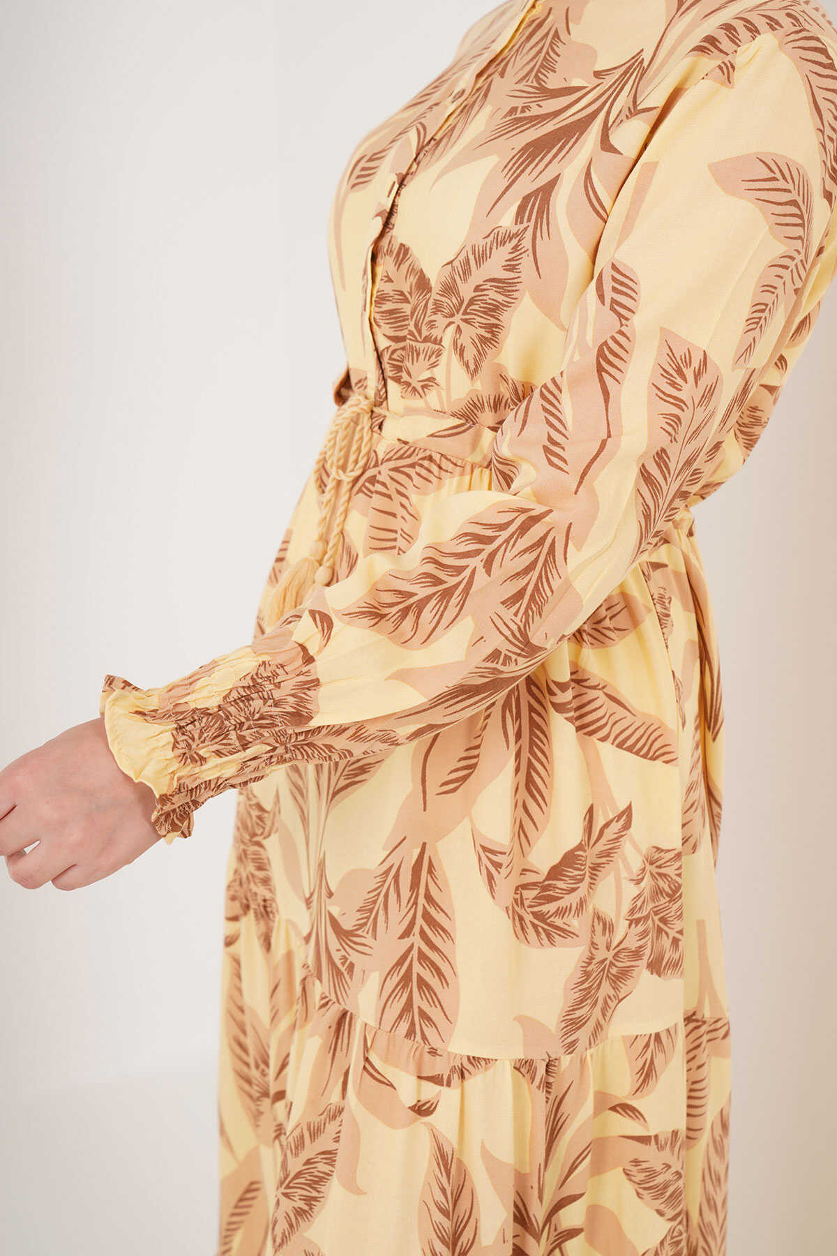 Yaprak Desenli Elbise, Kol Büzgülü Elbise