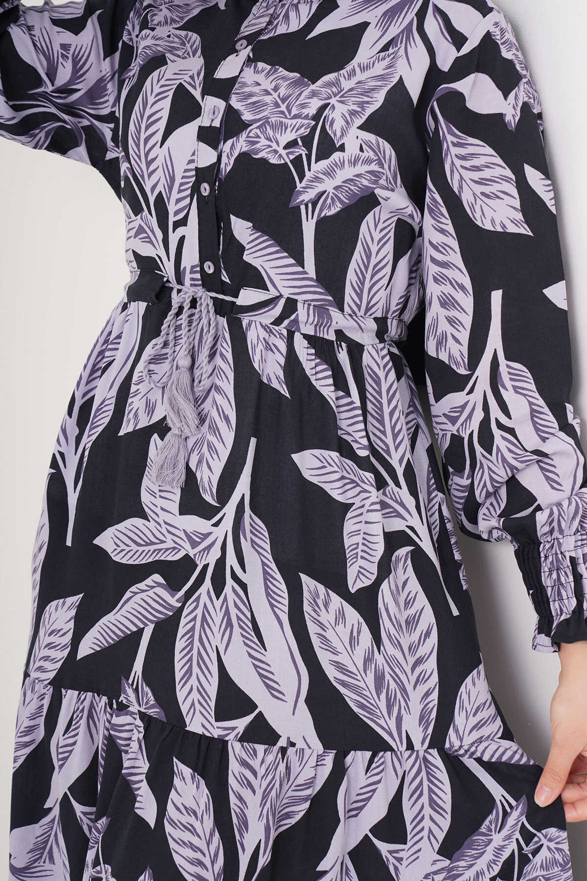 Yaprak Desenli Elbise, Kol Büzgülü Elbise
