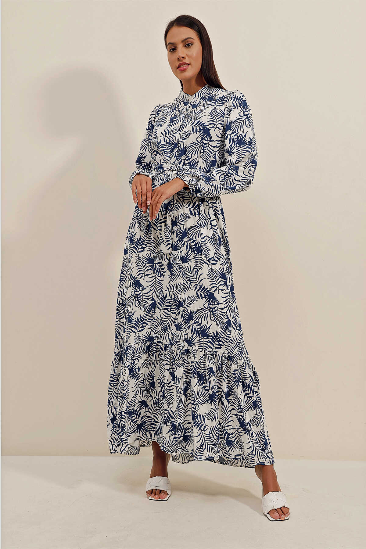 Kol Büzgülü Elbise, Boydan Dügmeli Kusakli Elbise