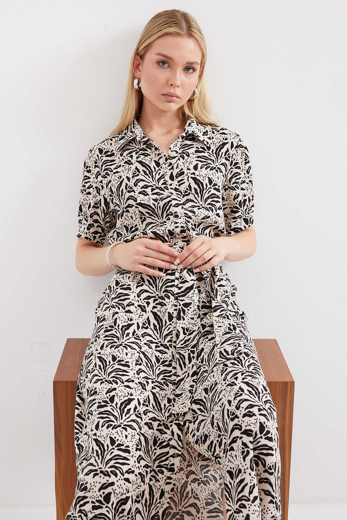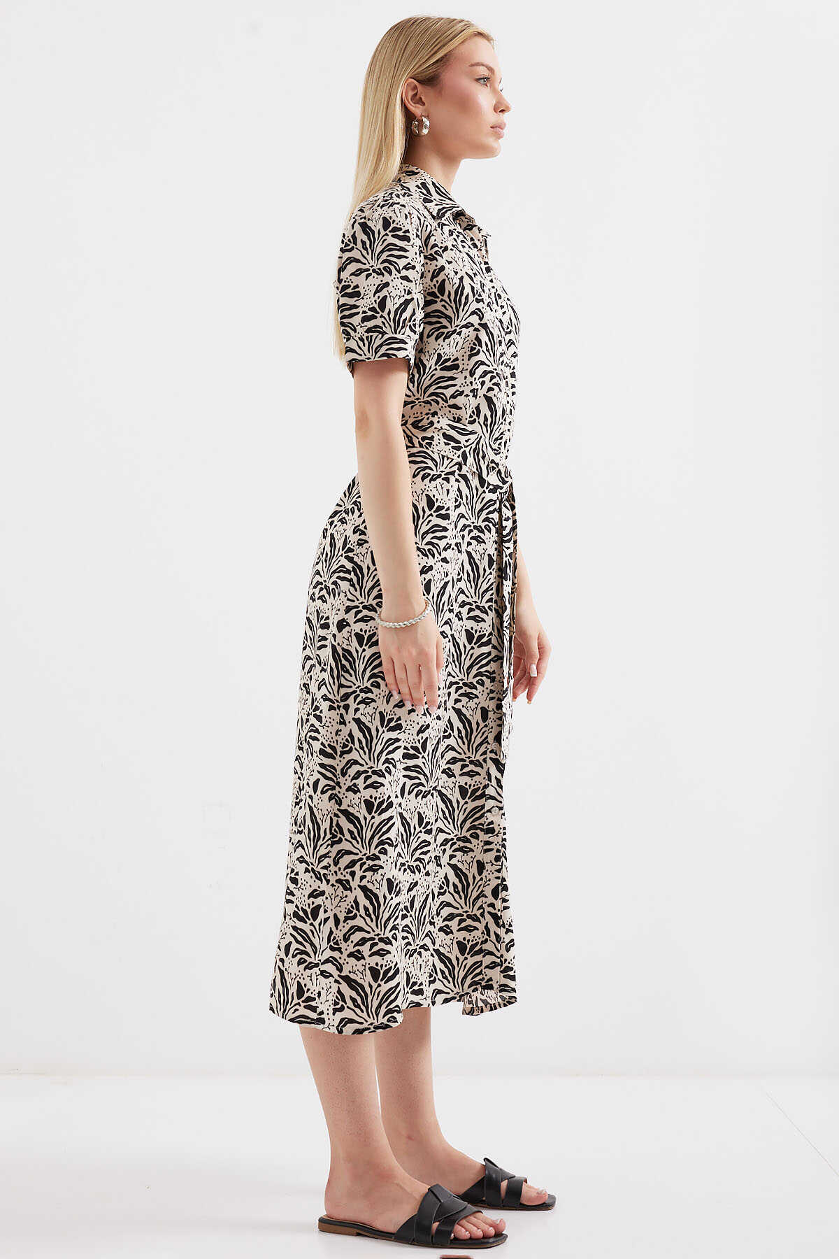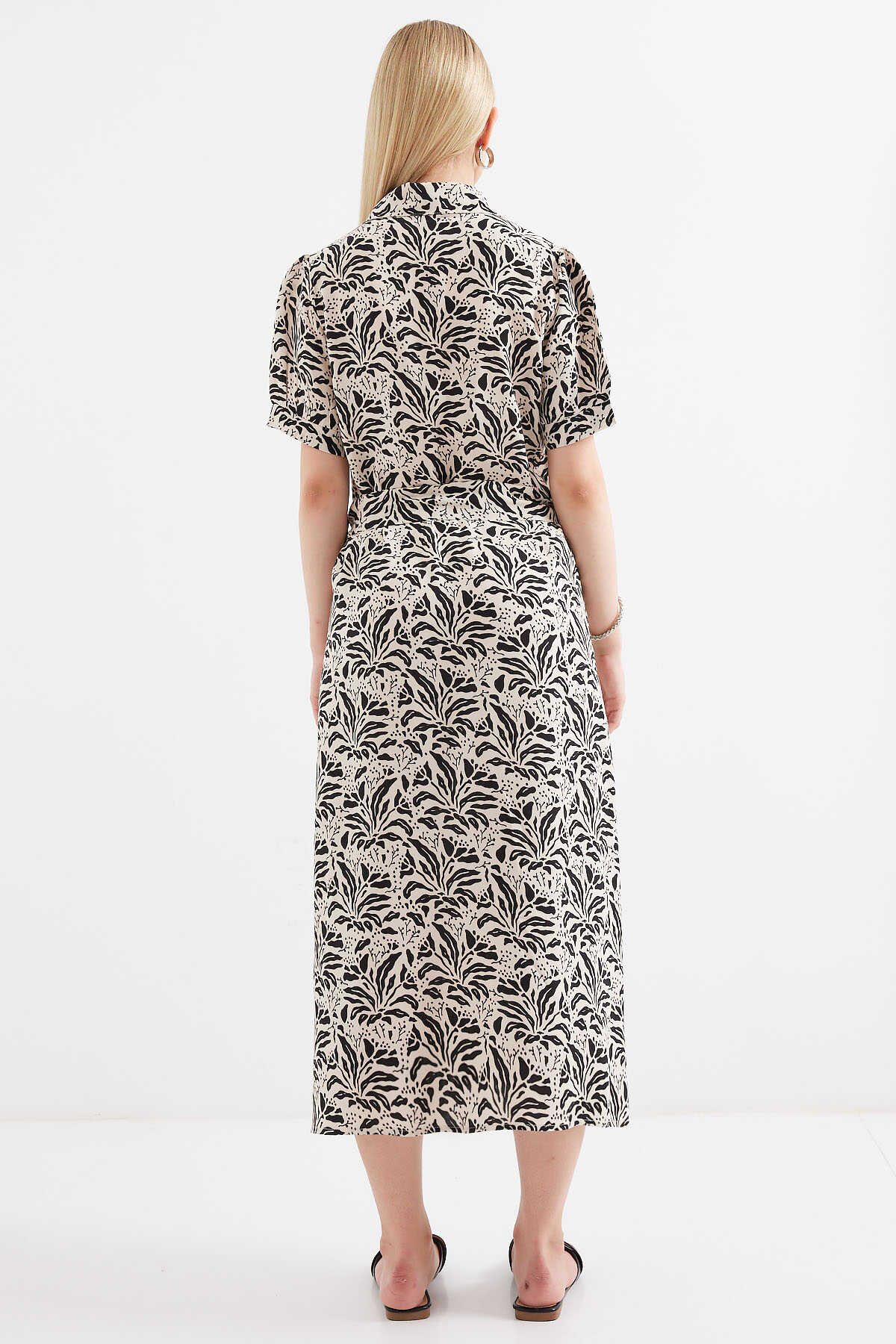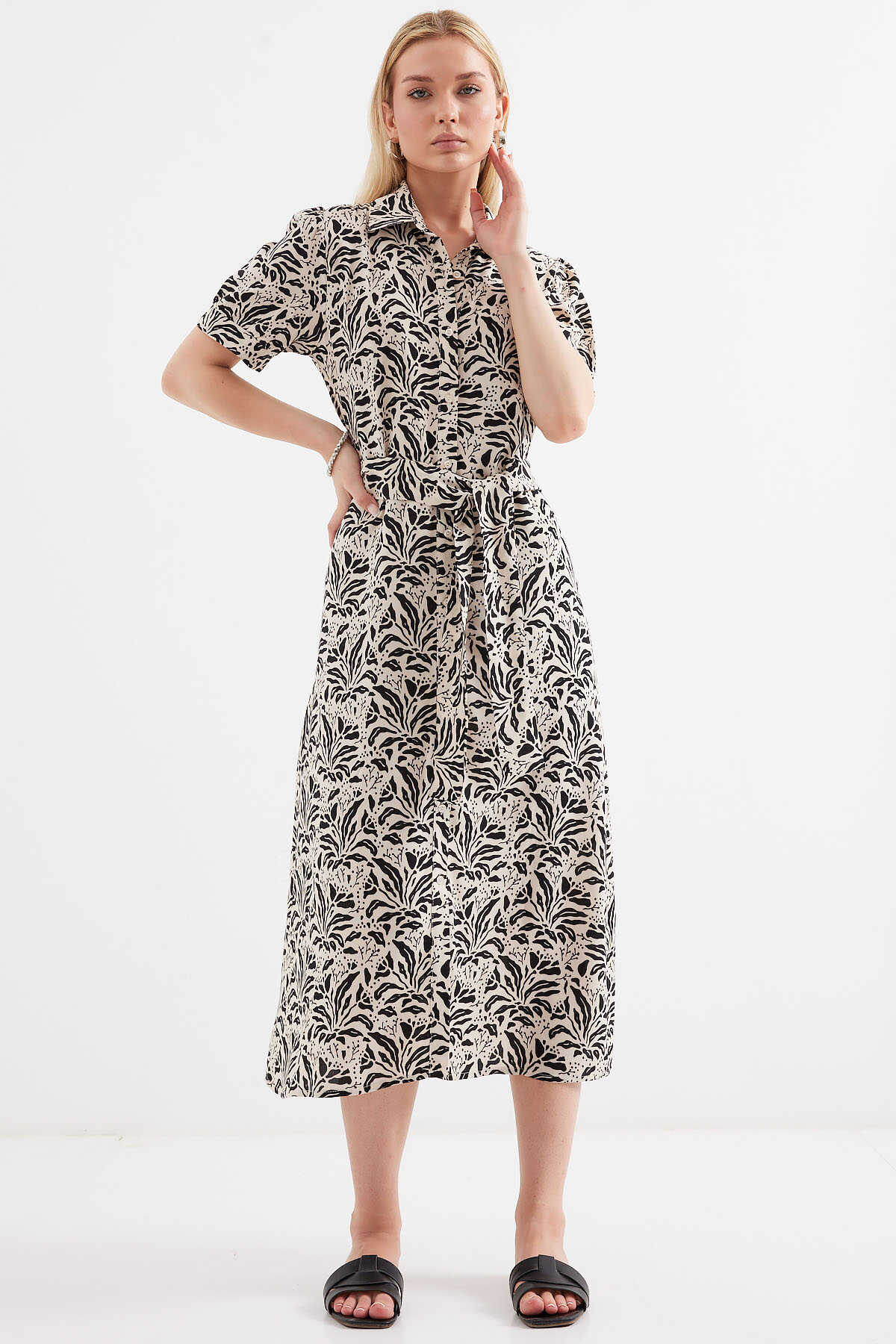2213 Kısa Kol Viskon Elbise - C.Siyah - Kombin