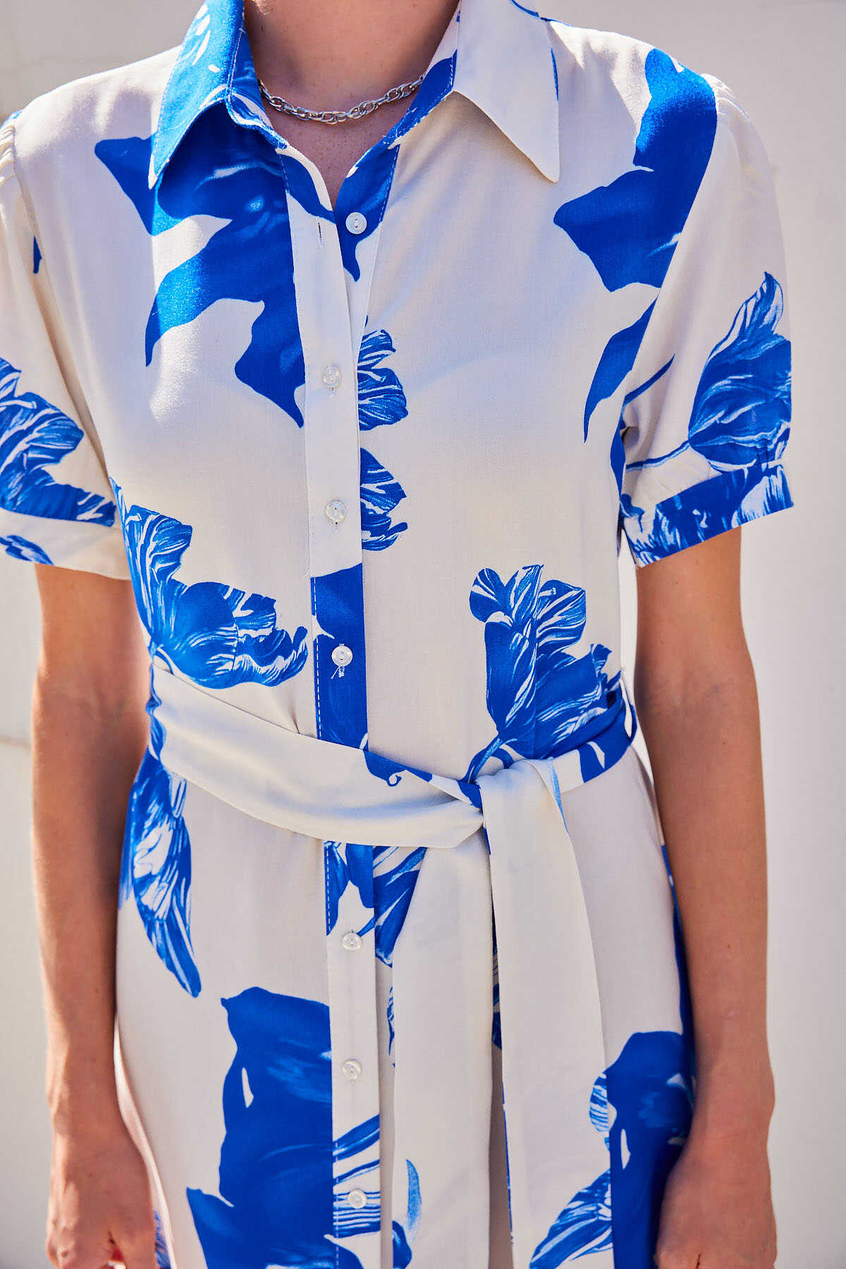 2213 Kısa Kol Viskon Elbise - Lacivert - Kombin