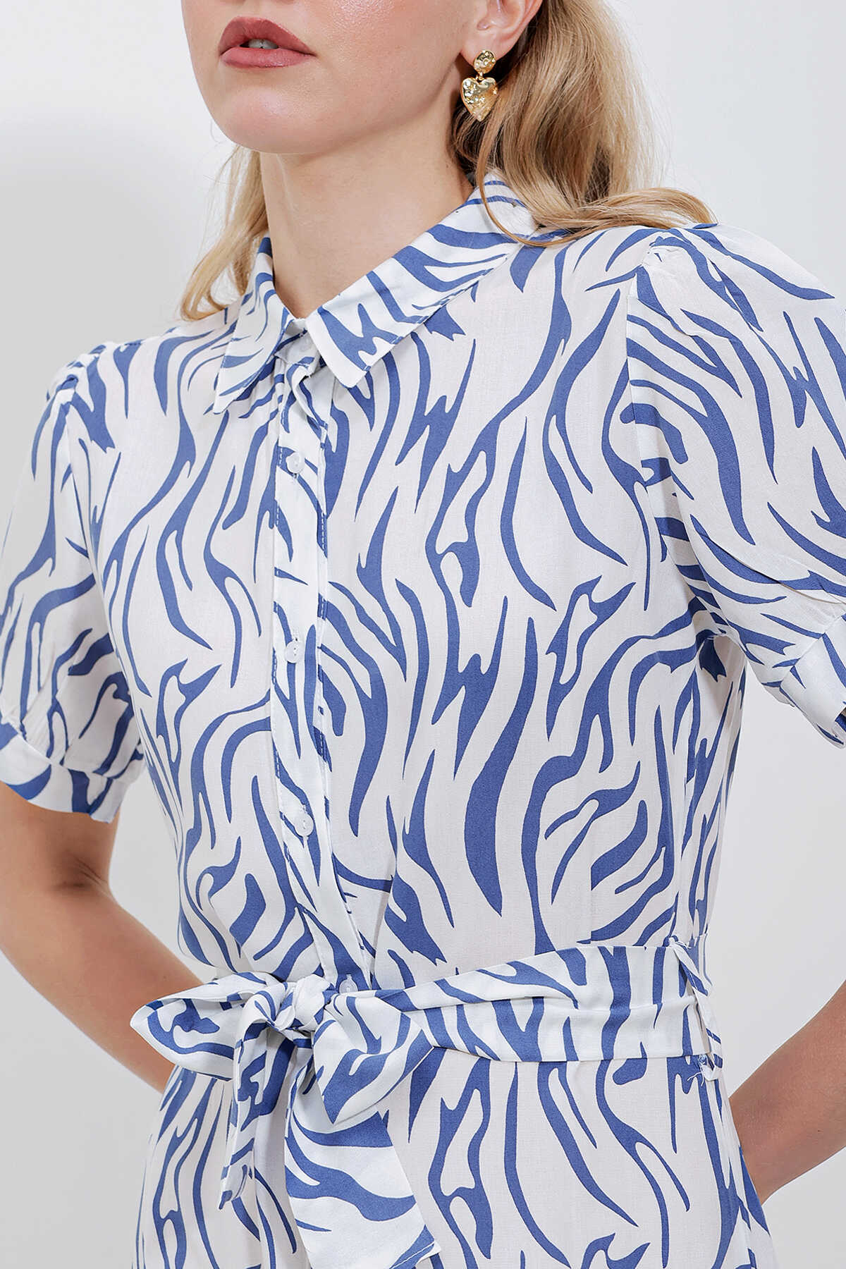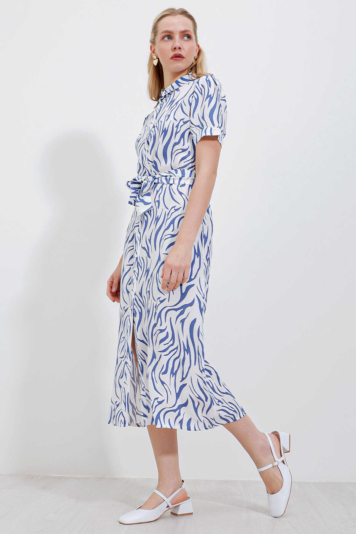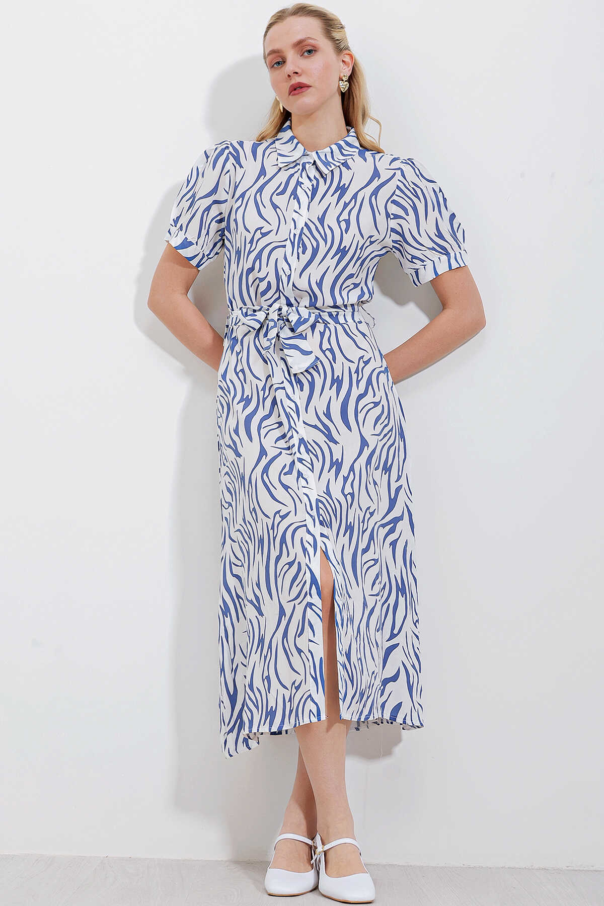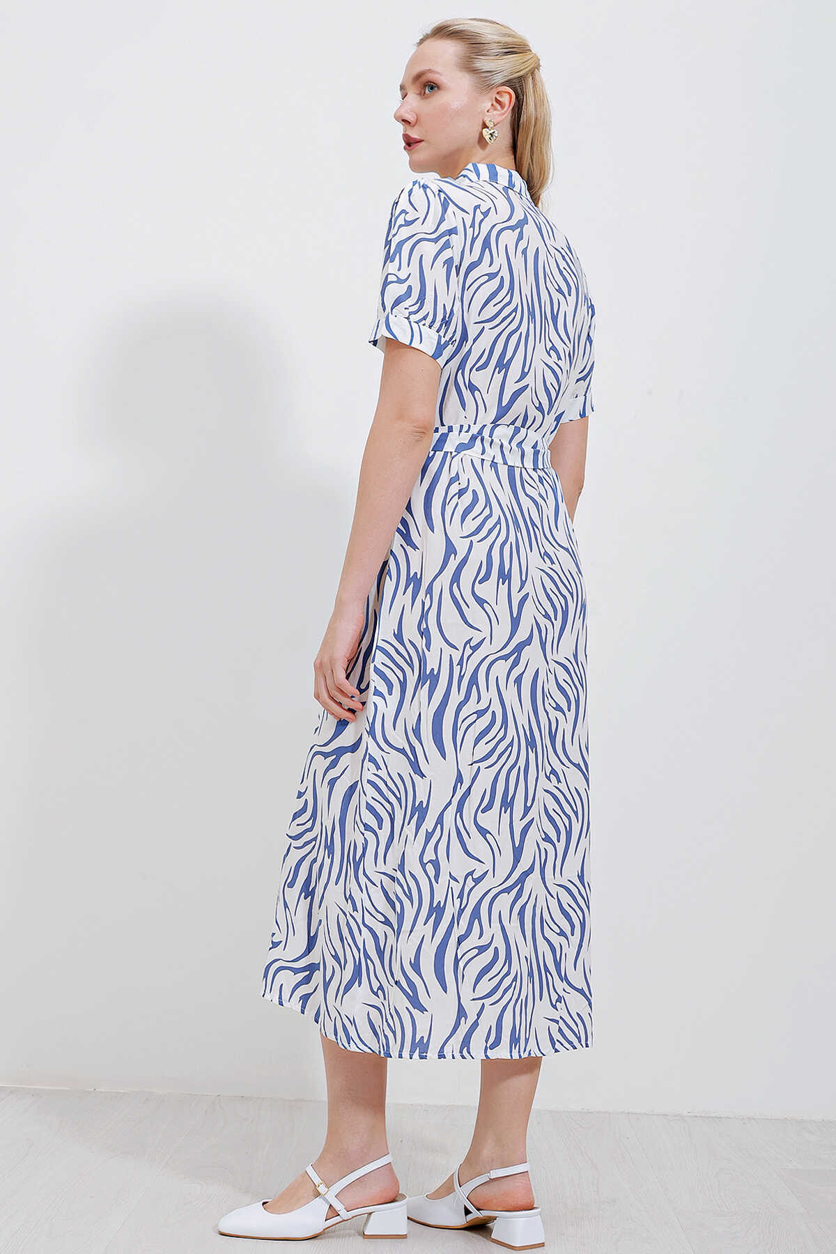2213 Kısa Kol Viskon Elbise - Mavi - Kombin