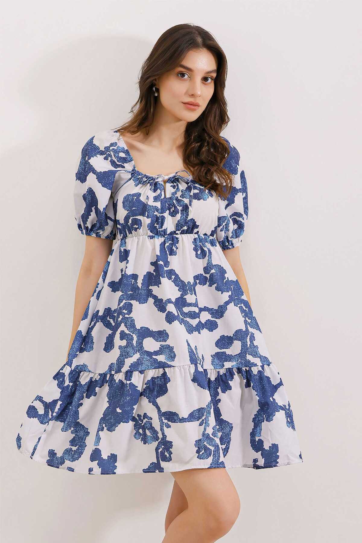 2351 Kloş Poplin Elbise - D.Lacivert - Kombin