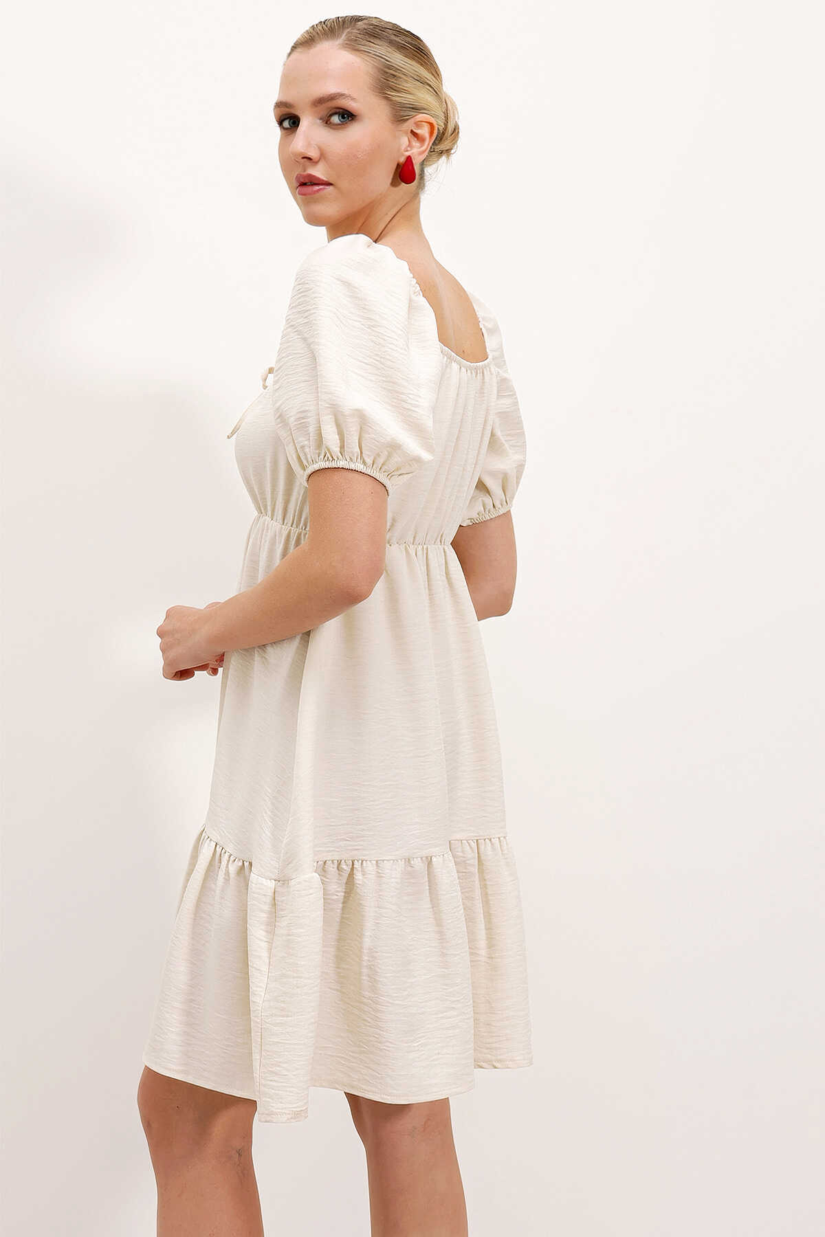 2351 Kloş Poplin Elbise - Ekru - Kombin