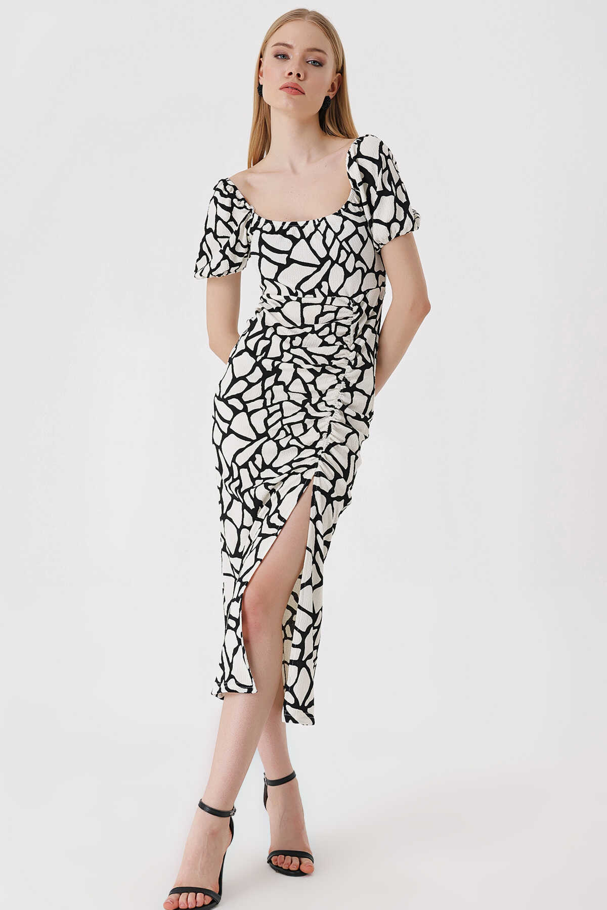 2396 Yırtmaçlı Yazlık Örme Elbise - D. Siyah - Kombin