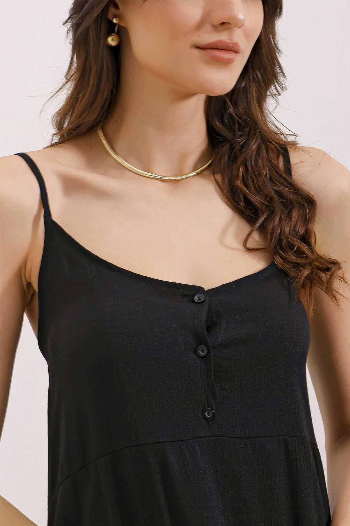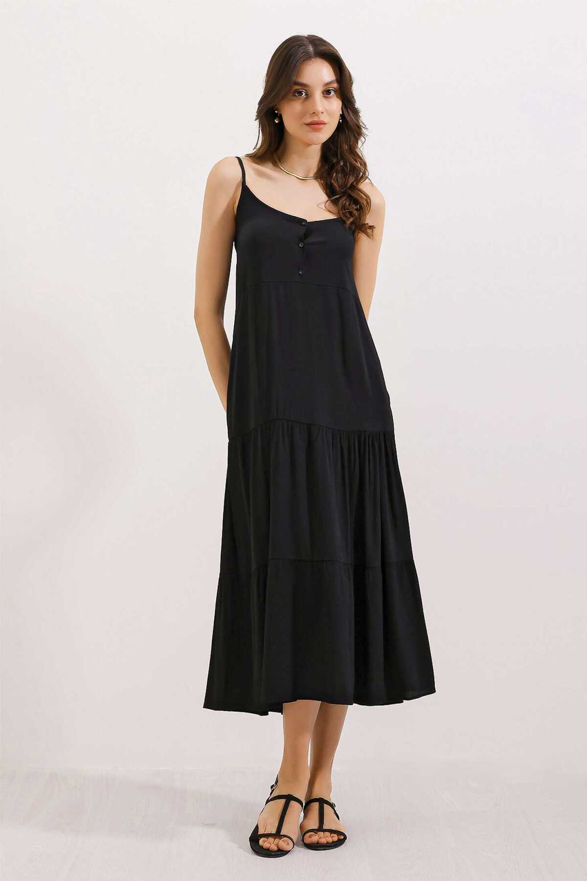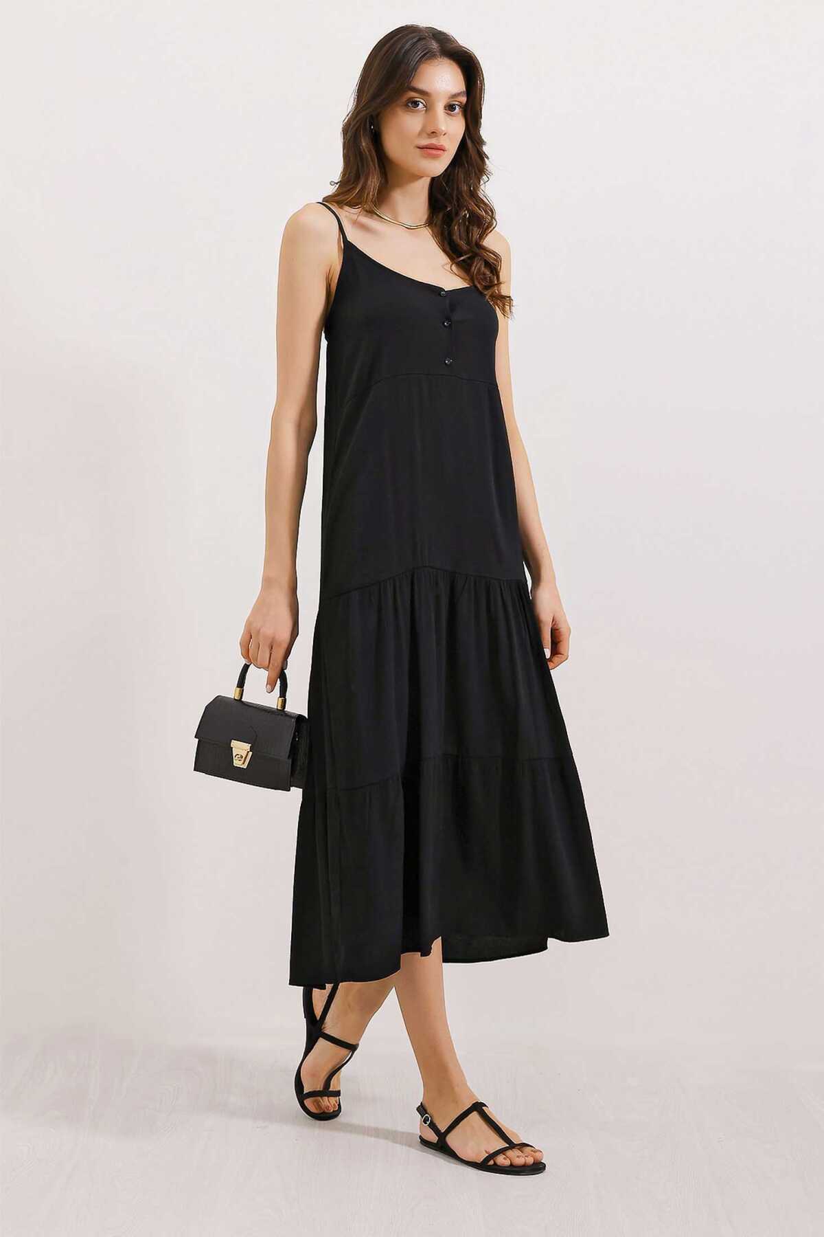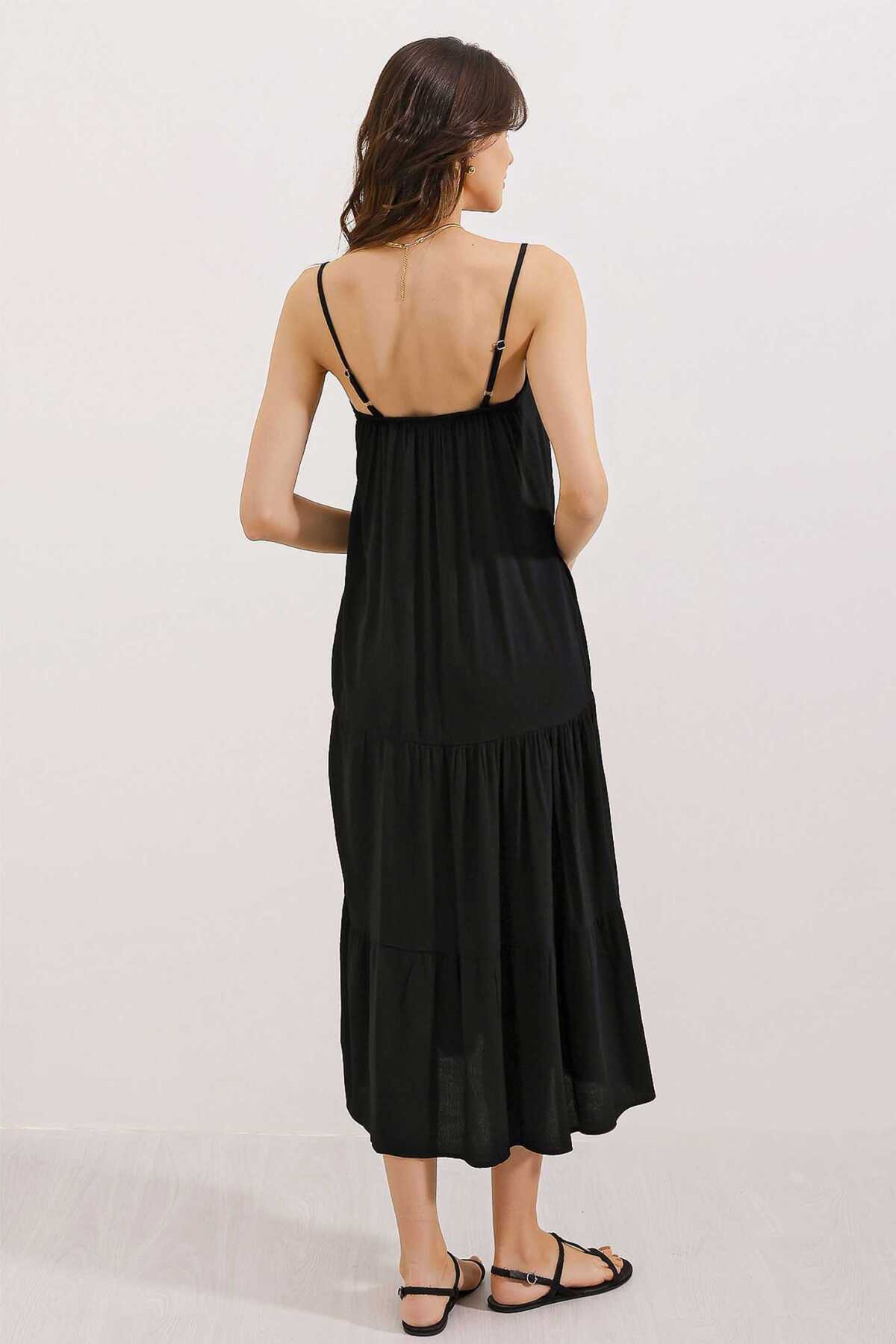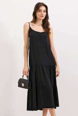 2403 Askılı Midi Elbise - Siyah - Kombin