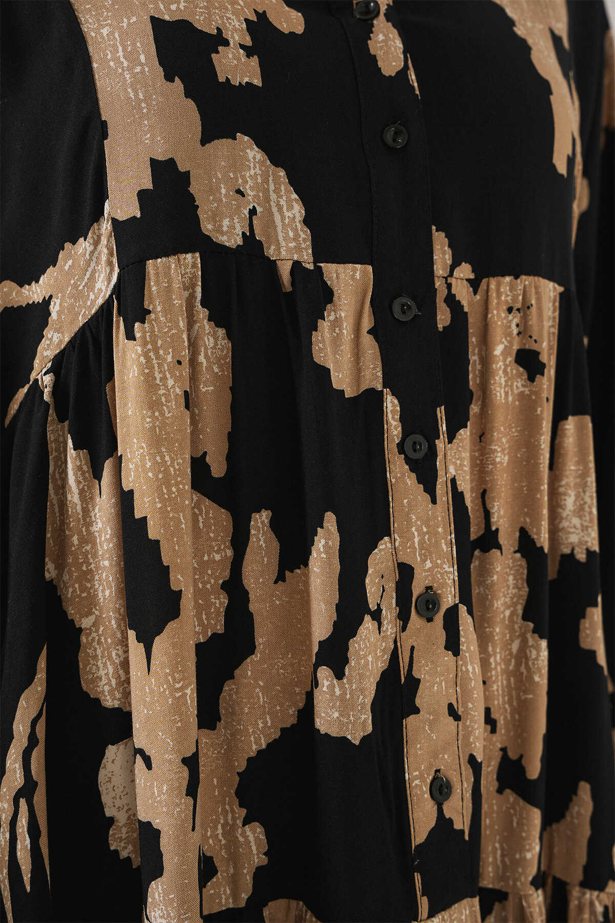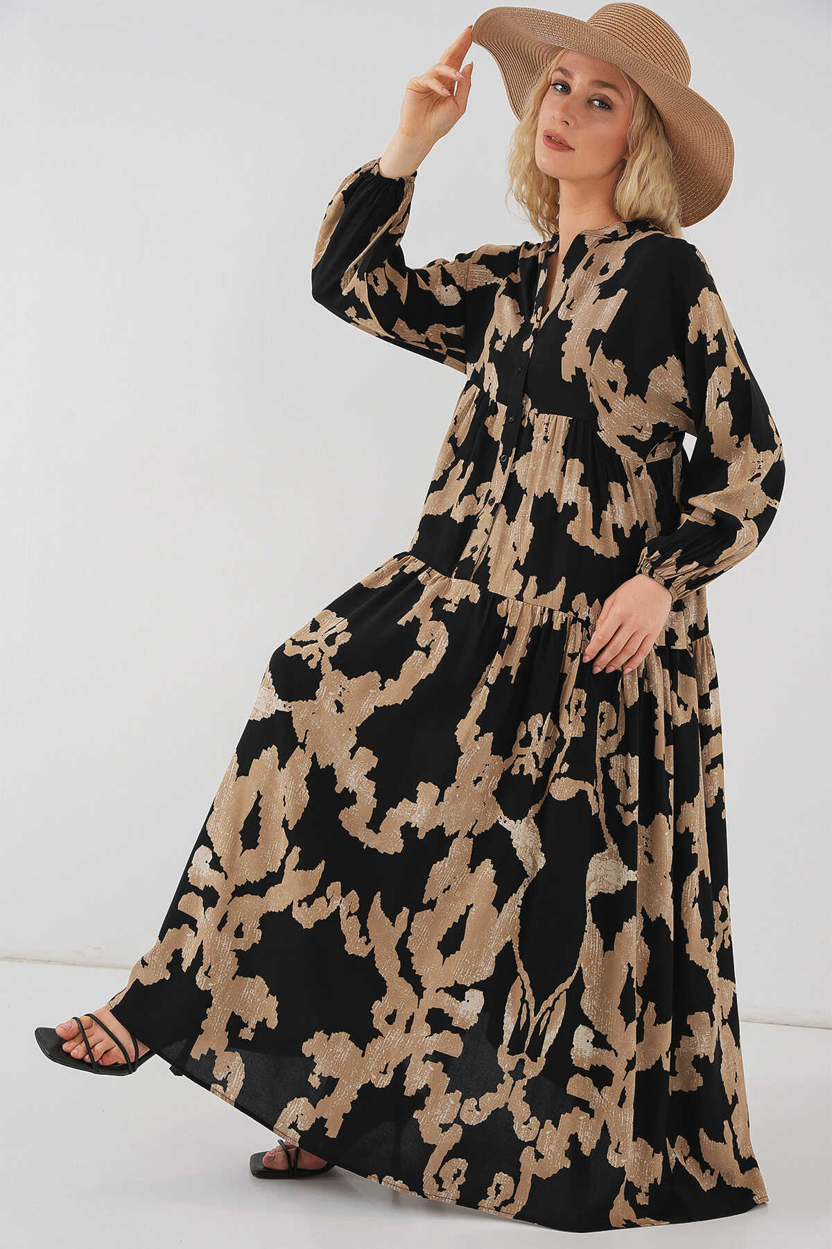 2423 Otantik Desenli Tesettür Elbise - A.Bej