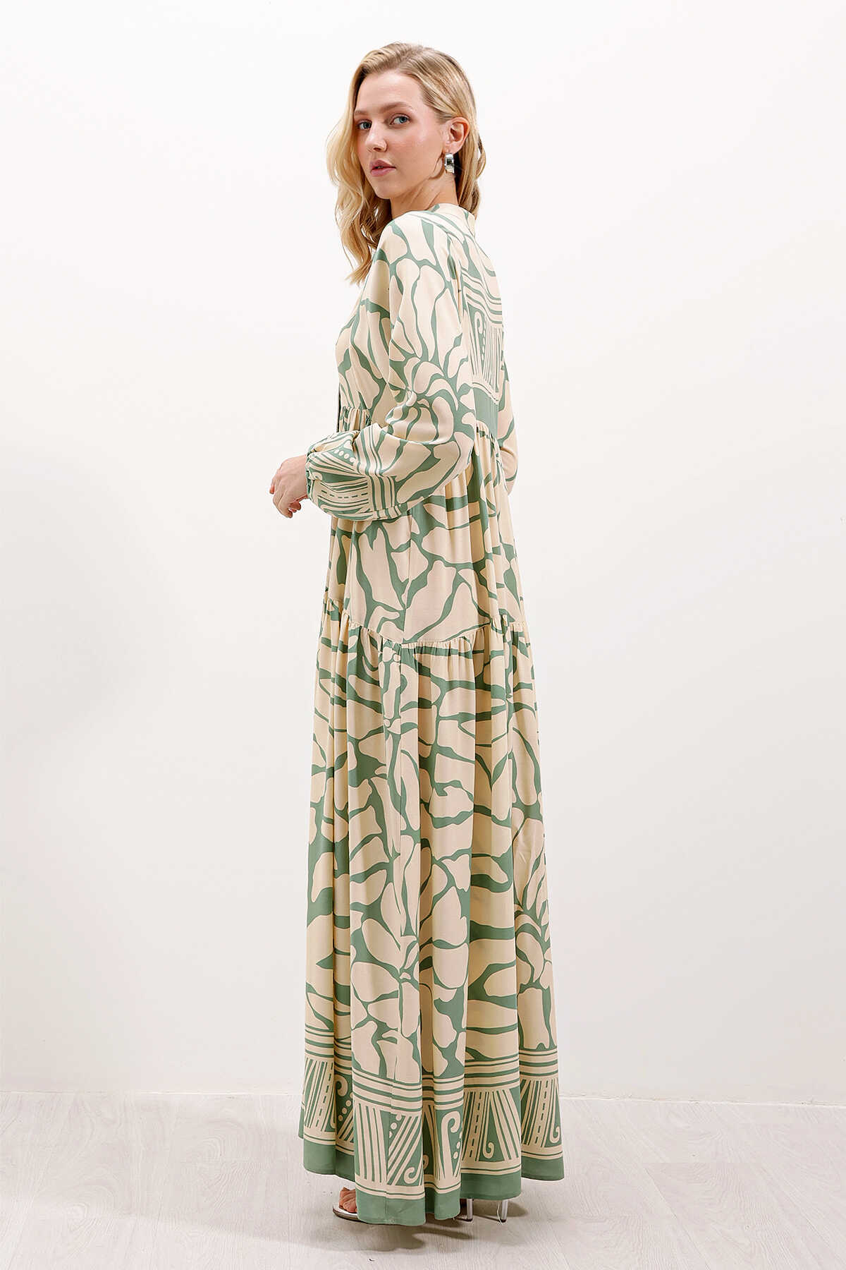 2423 Otantik Desenli Tesettür Elbise - A.Yeşil