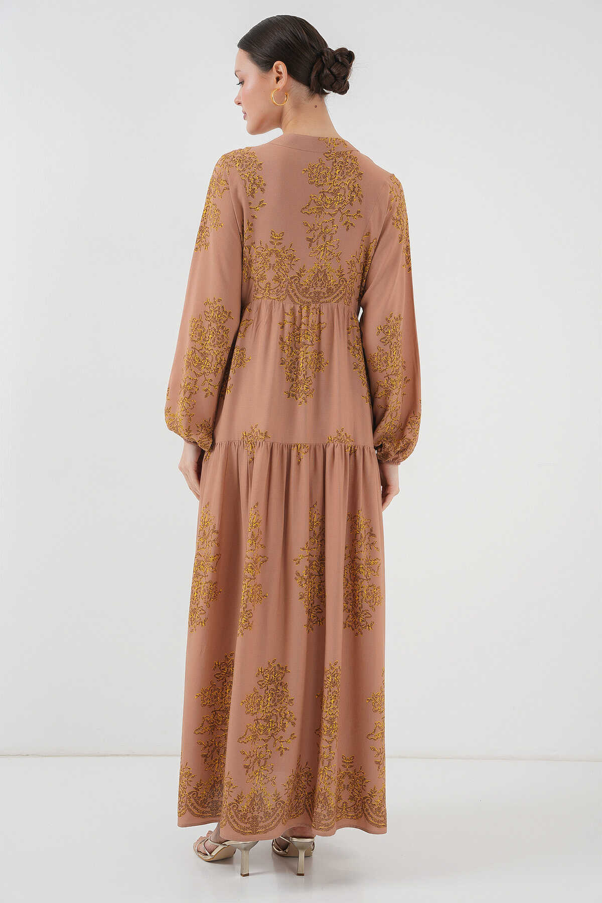 Vizon Gold Desenli Tesettür Elbise 2423 - Kombin