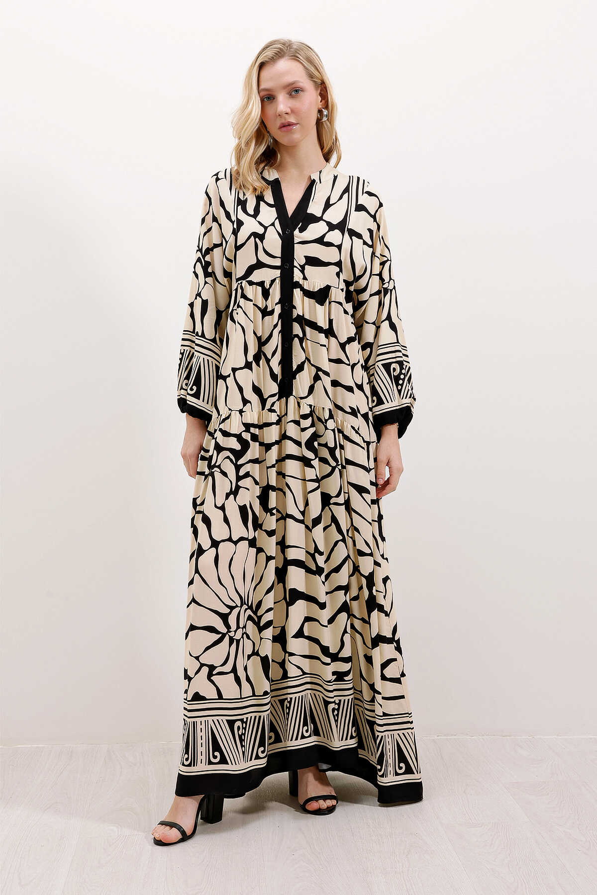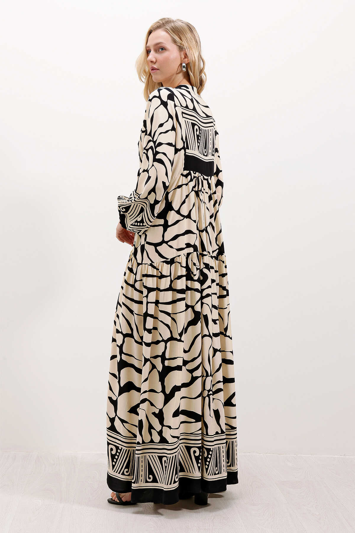 2423 Otantik Desenli Tesettür Elbise - C.Siyah - Kombin