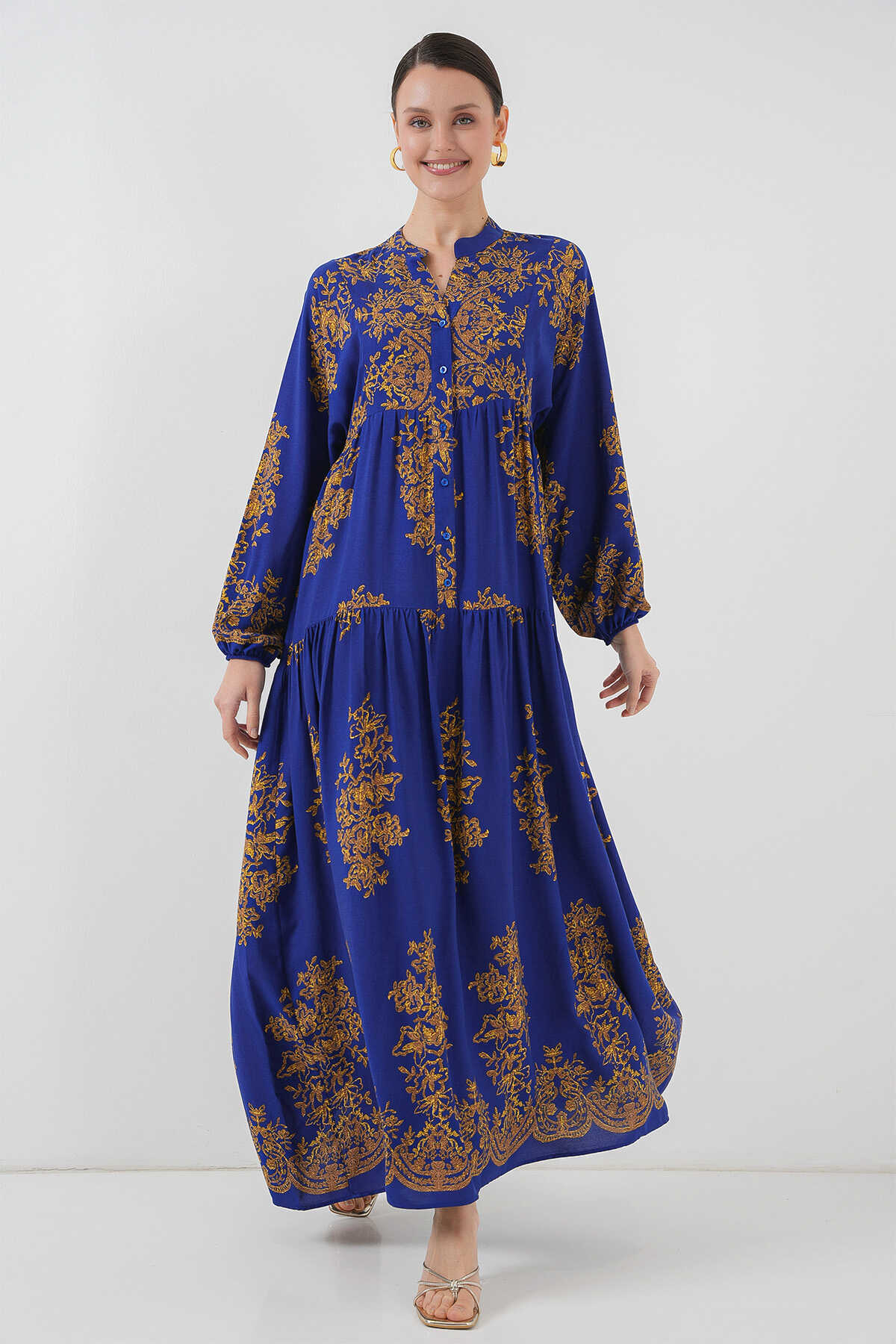 Saks Gold Desenli Tesettür Elbise 2423 - Kombin