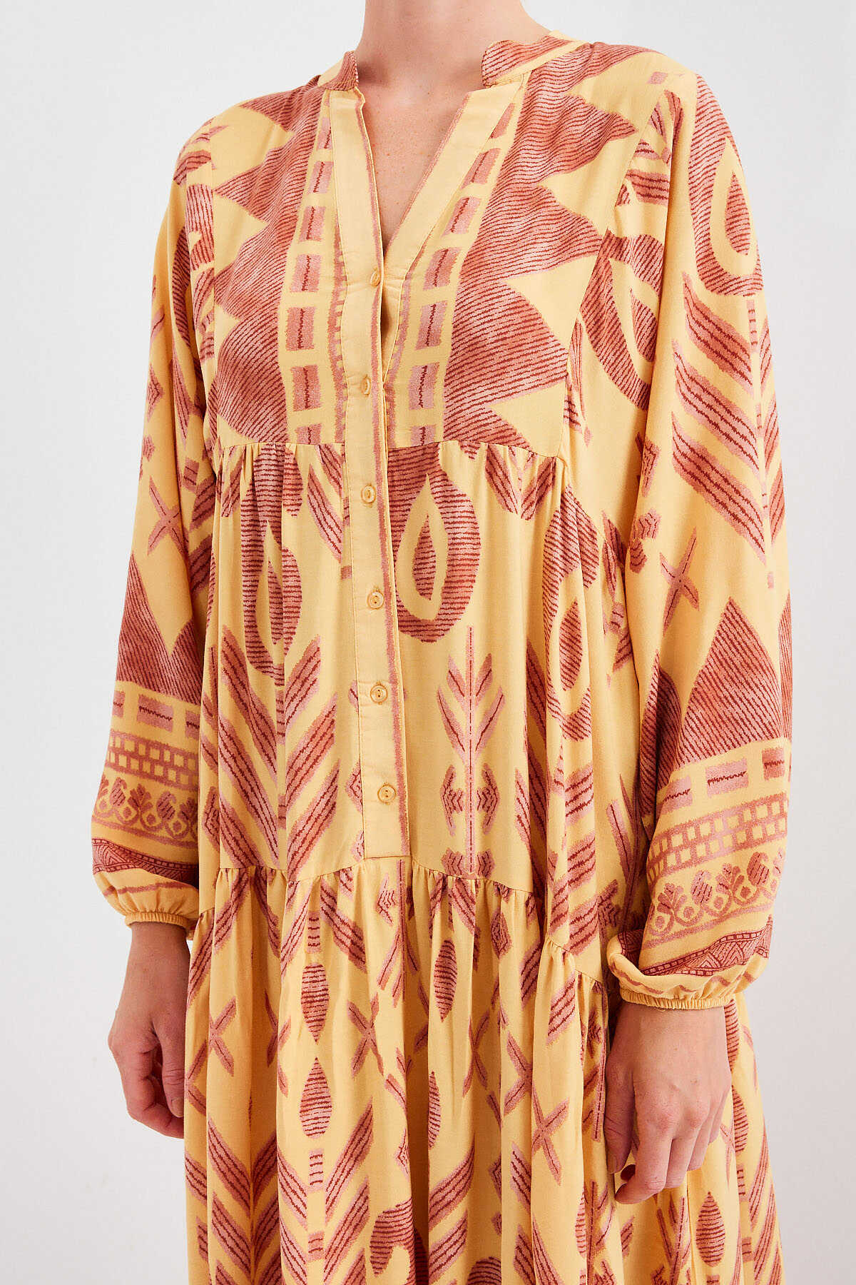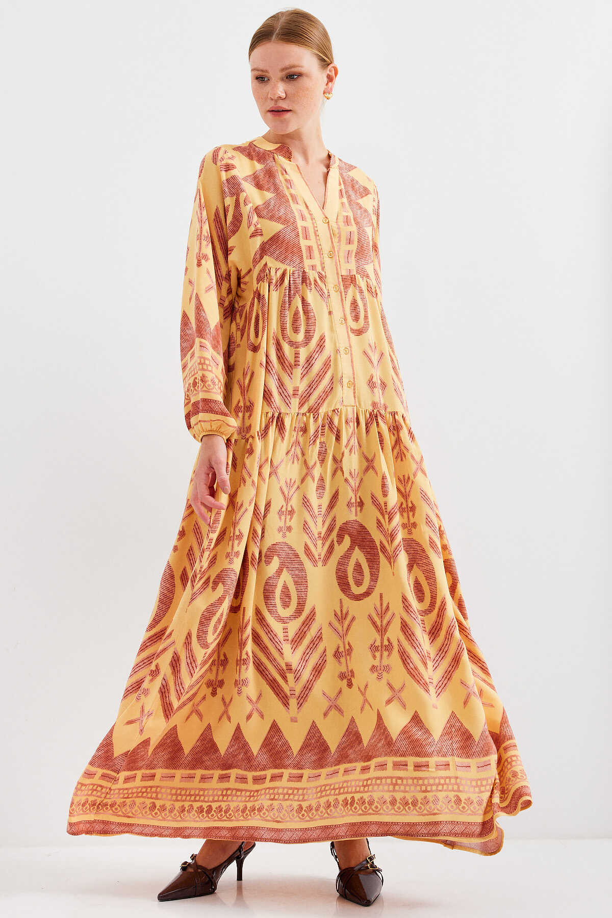 Kadın Hardal Sarısı Kiremit Viskon Tesettür Elbise 2423