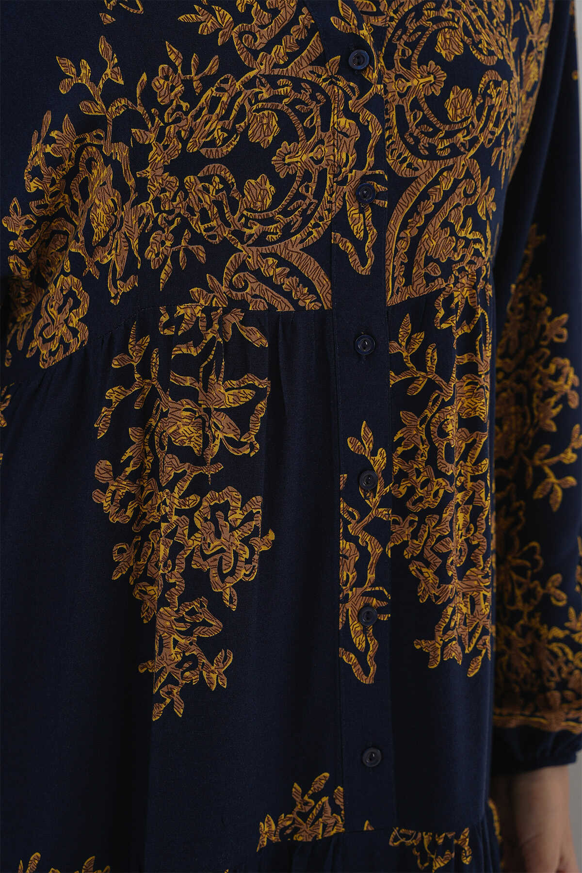 Lacivert Gold Desenli Tesettür Elbise 2423 - Kombin