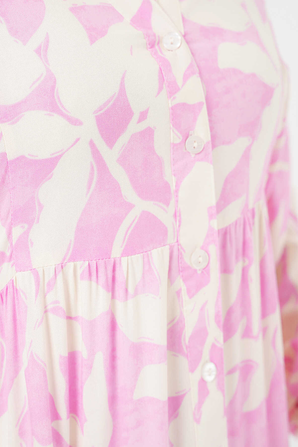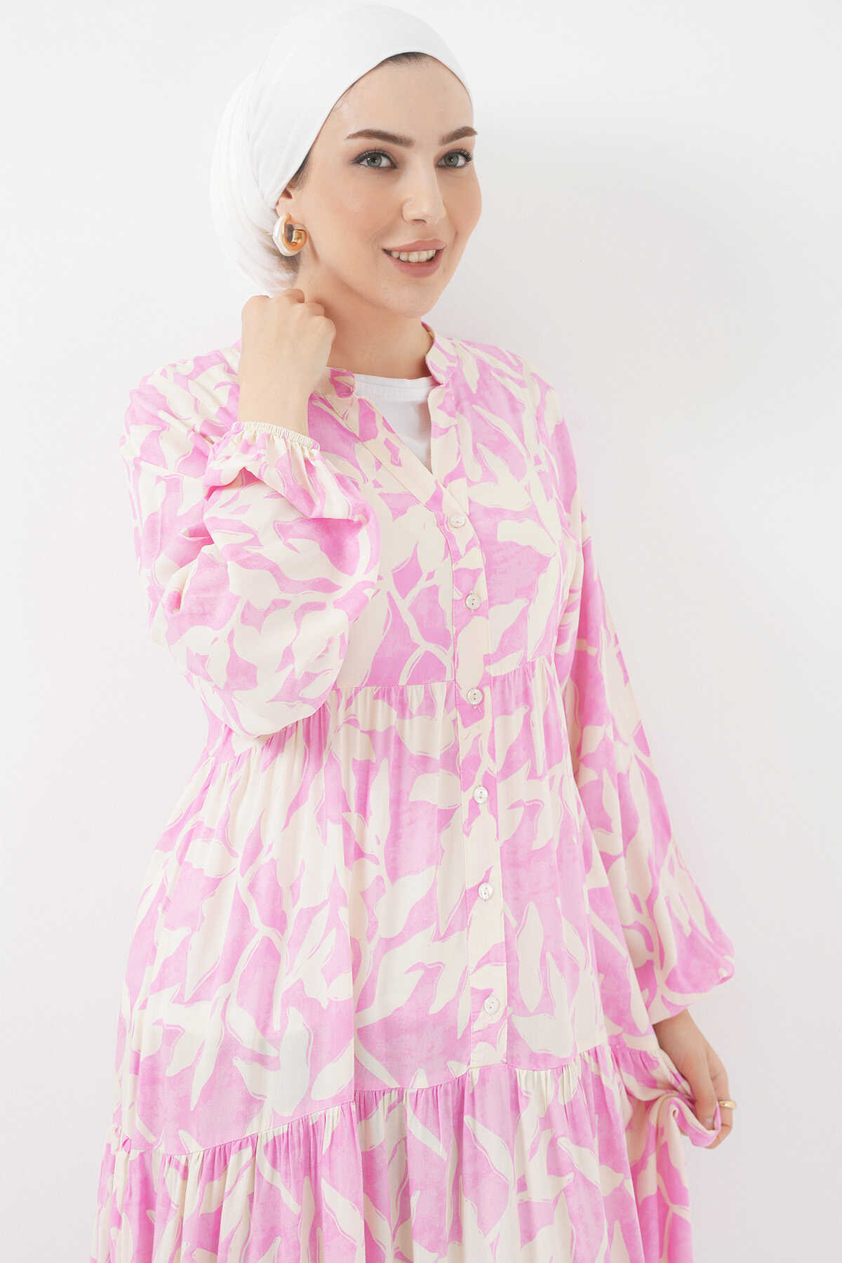 2423 Otantik Desenli Tesettür Elbise - Y.Pembe - Kombin