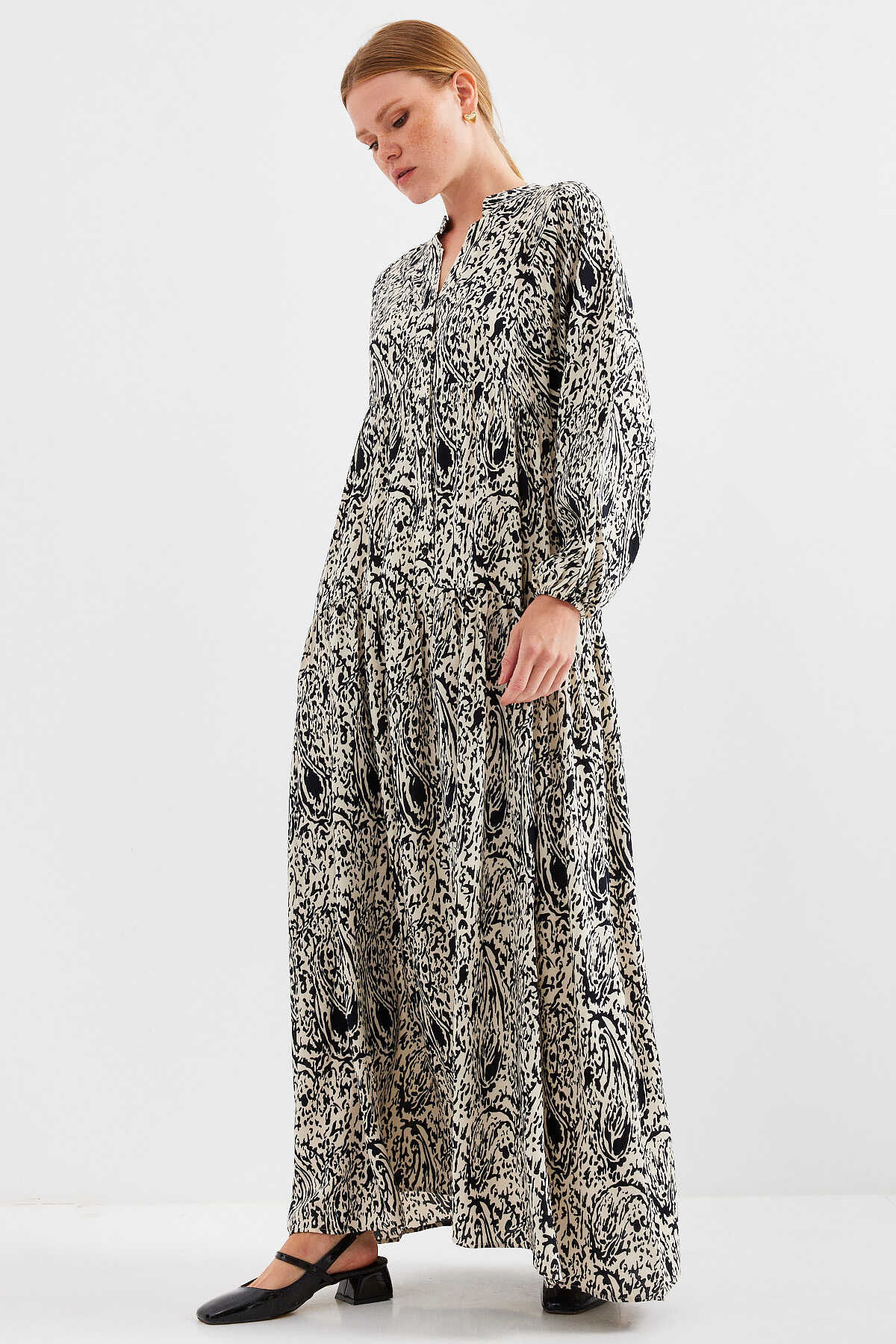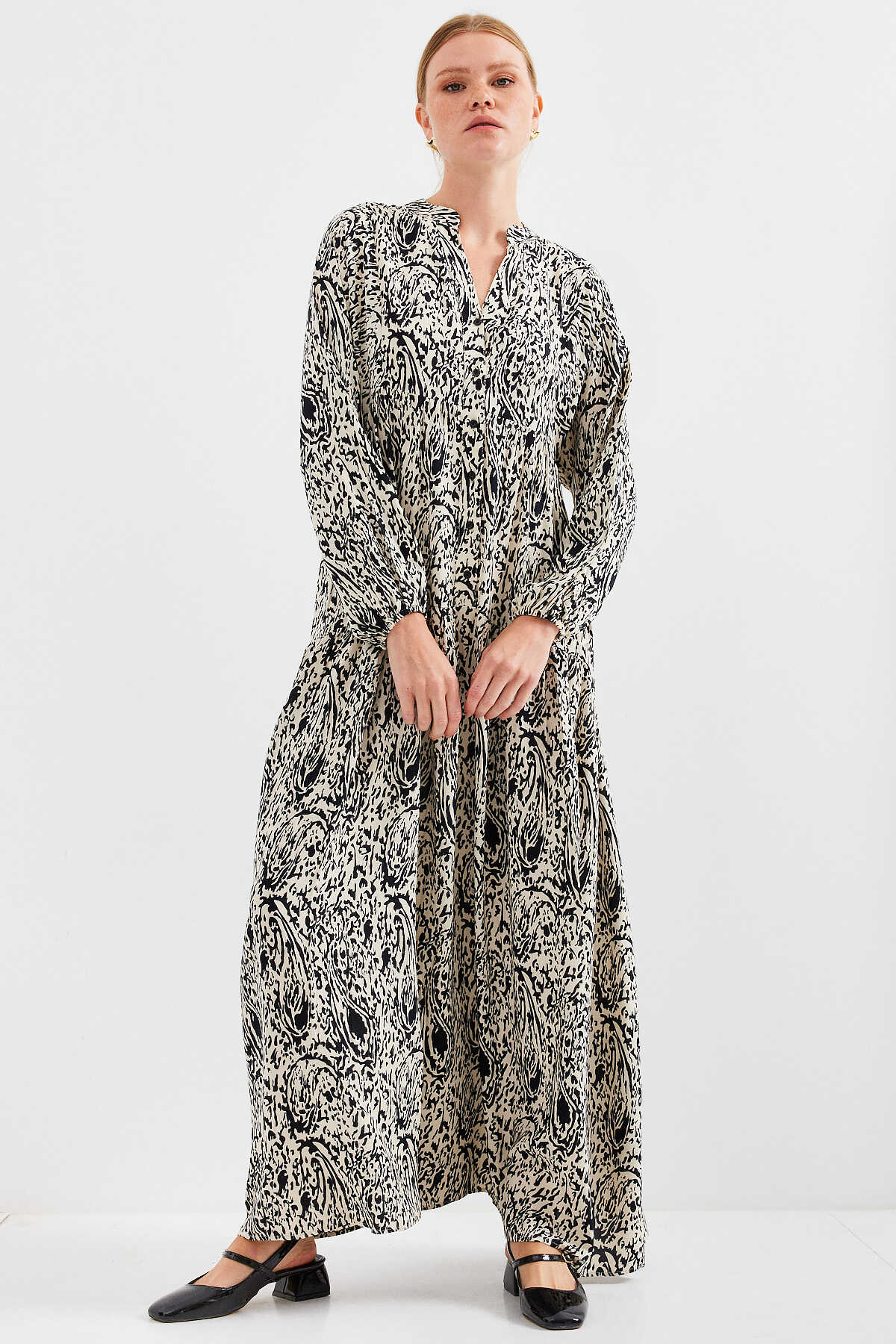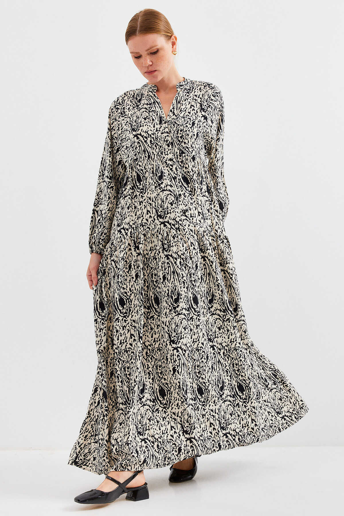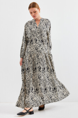 Kadın Desenli Siyah Viskon Tesettür Elbise 2423 - Kombin