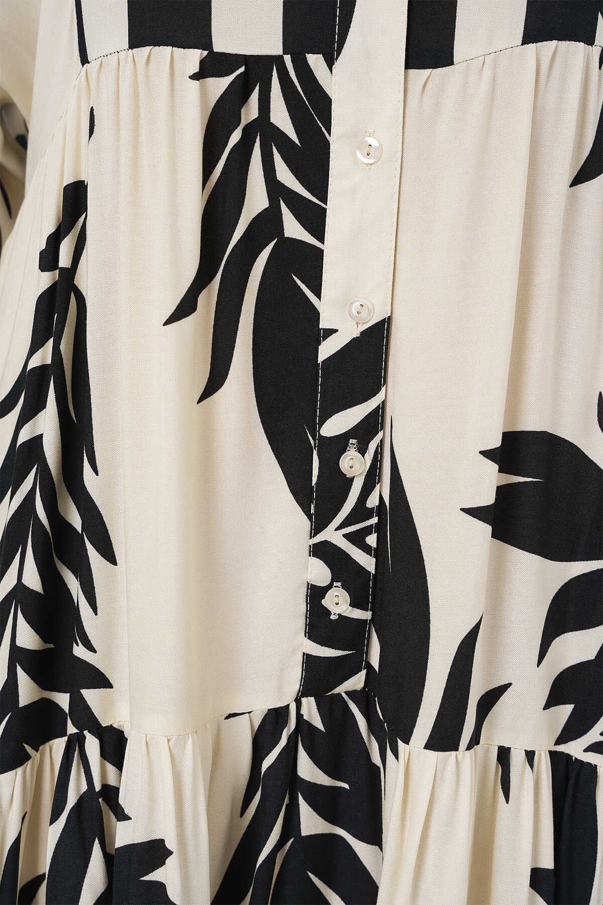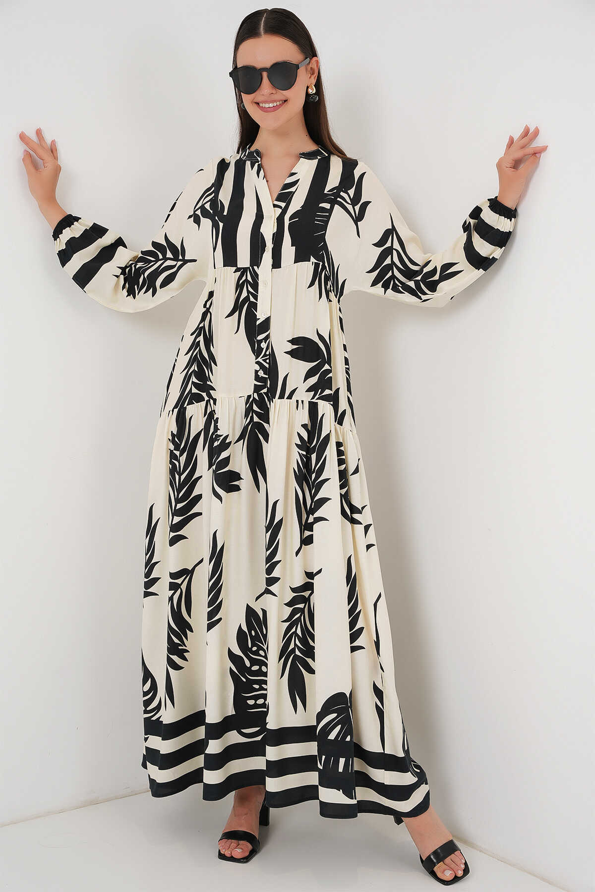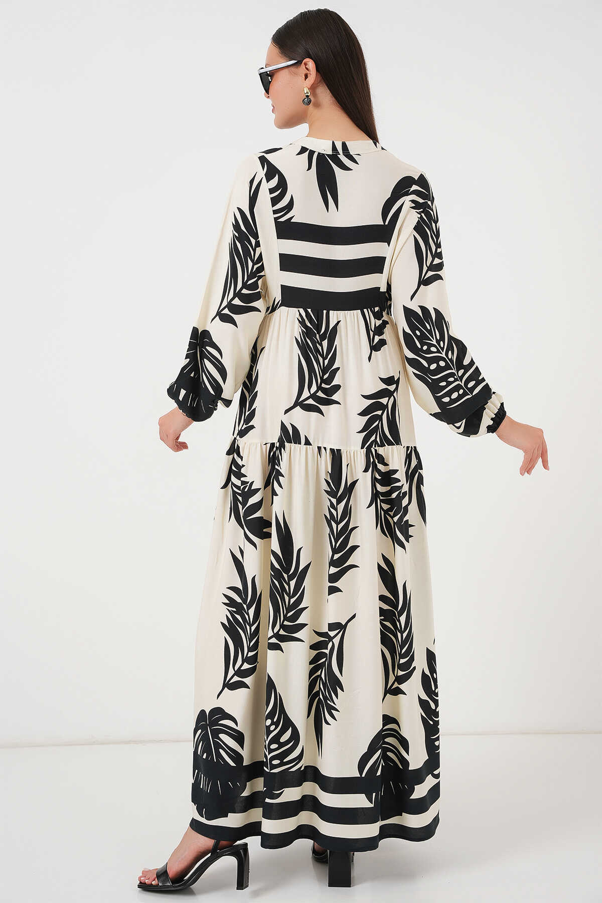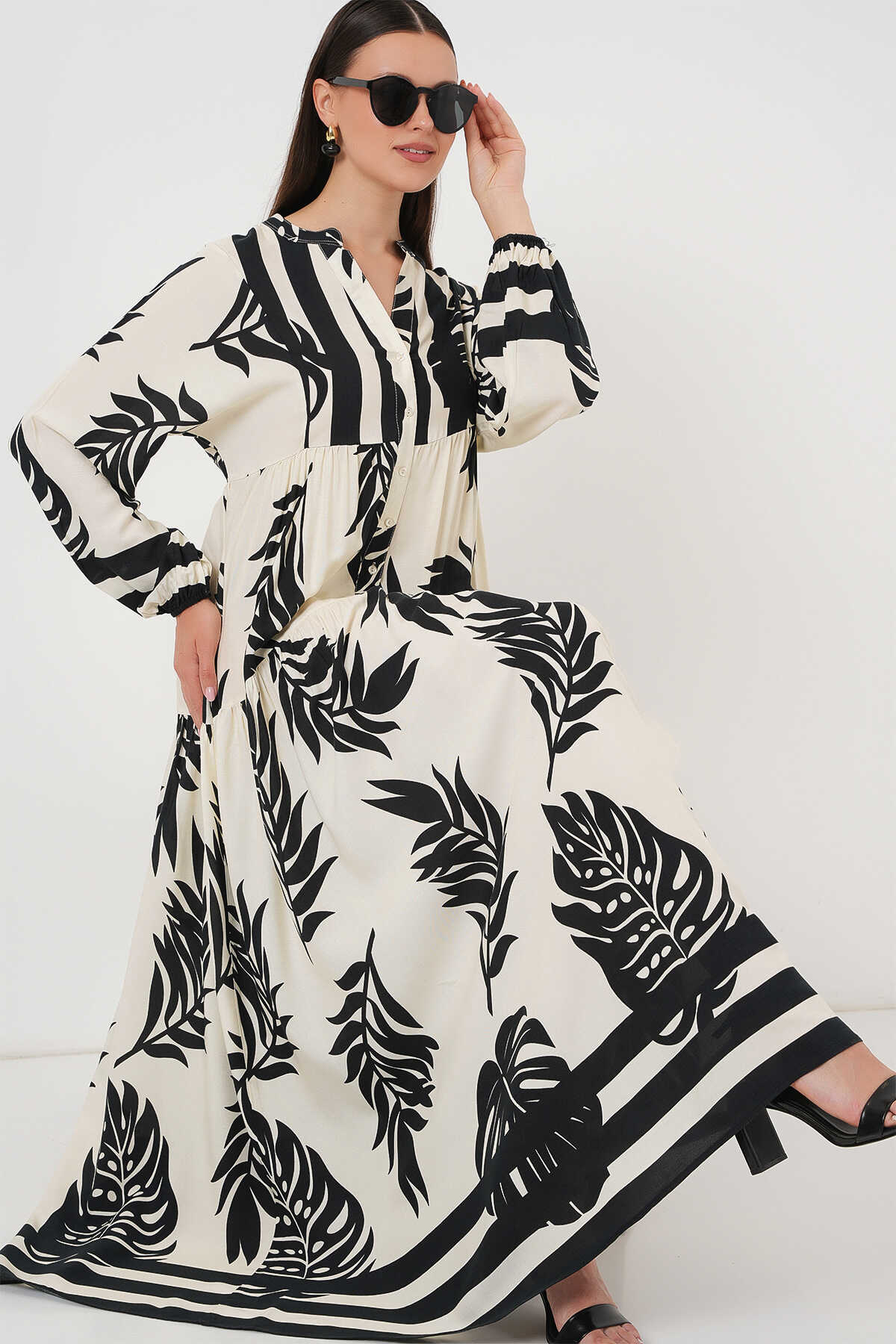 2423 Otantik Desenli Tesettür Elbise - A.Beyaz