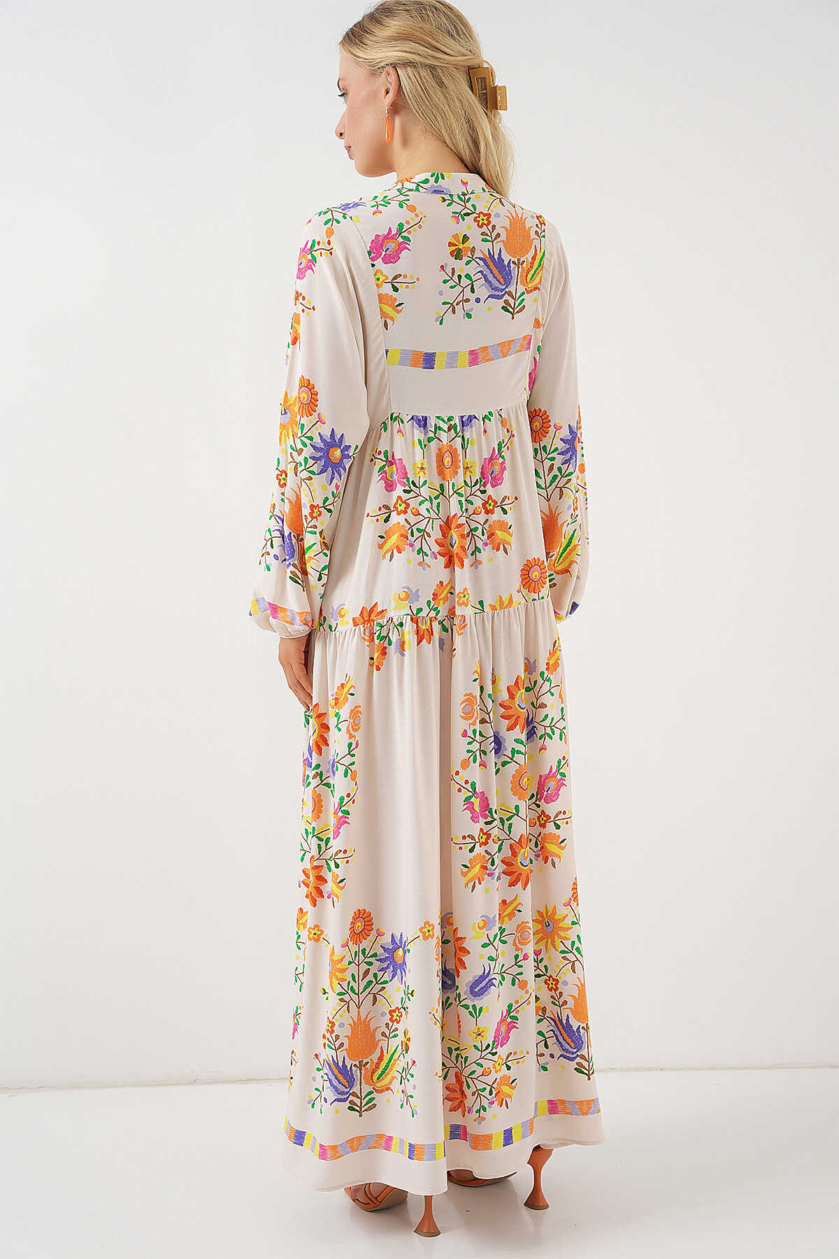 2423 Otantik Desenli Tesettür Elbise - B. Turuncu - Kombin