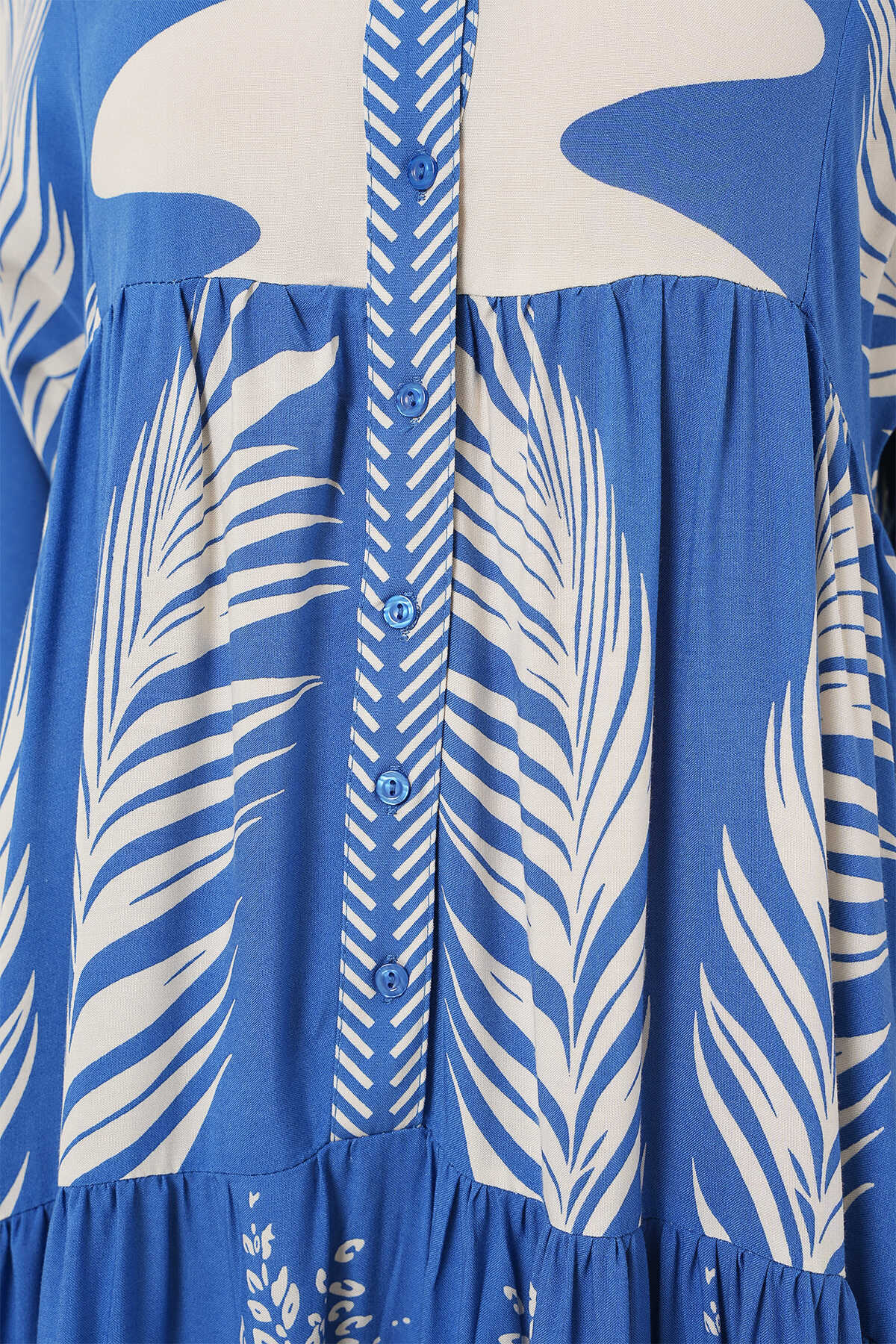 2423 Otantik Desenli Tesettür Elbise - H. İndigo - Kombin