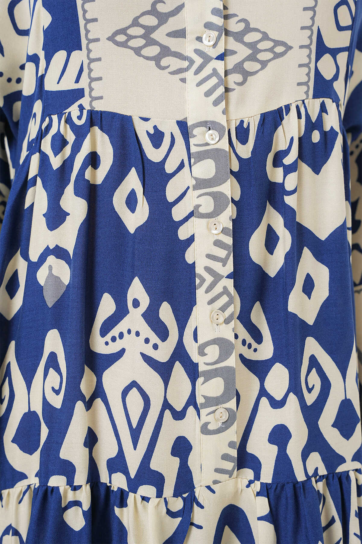 2423 Otantik Desenli Tesettür Elbise - İndigo 1 - Kombin