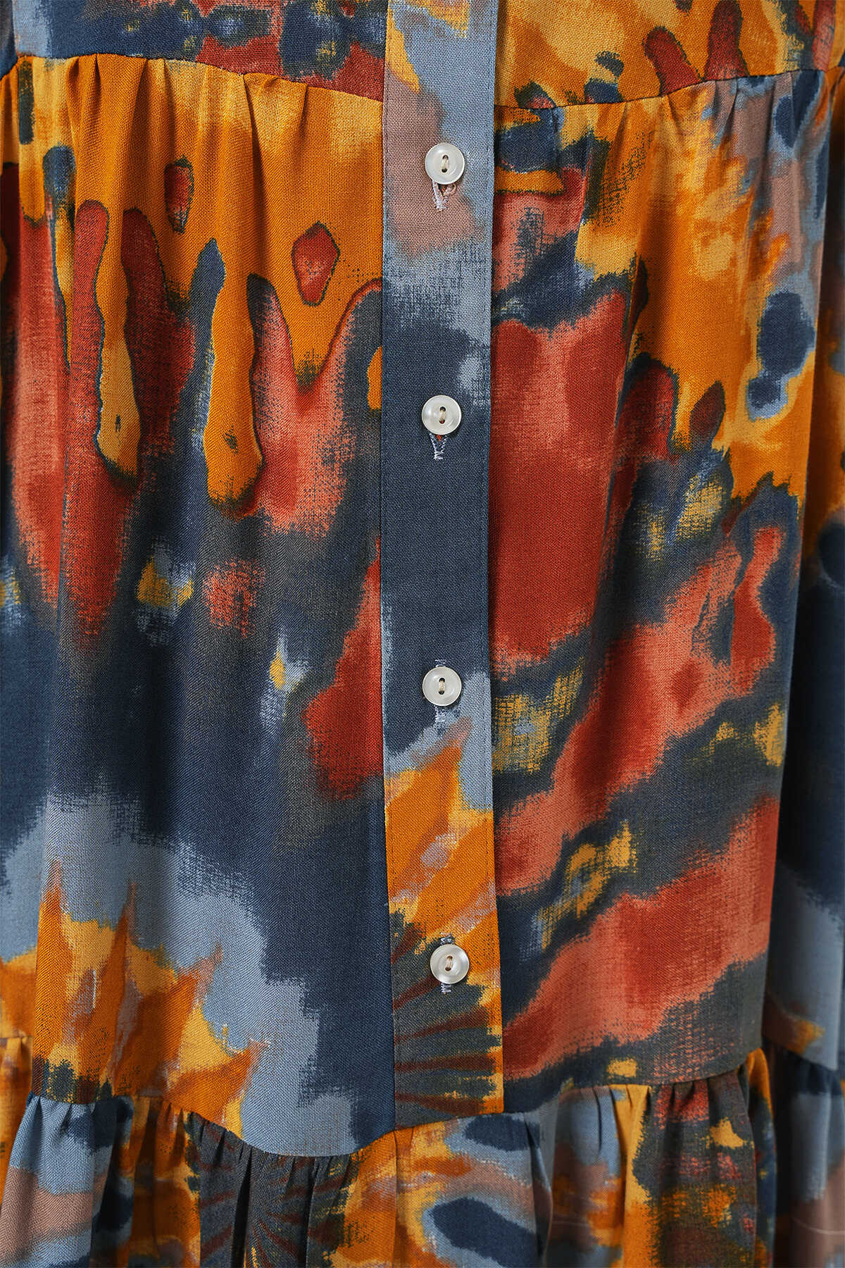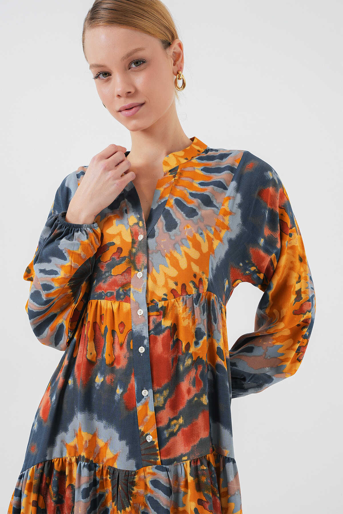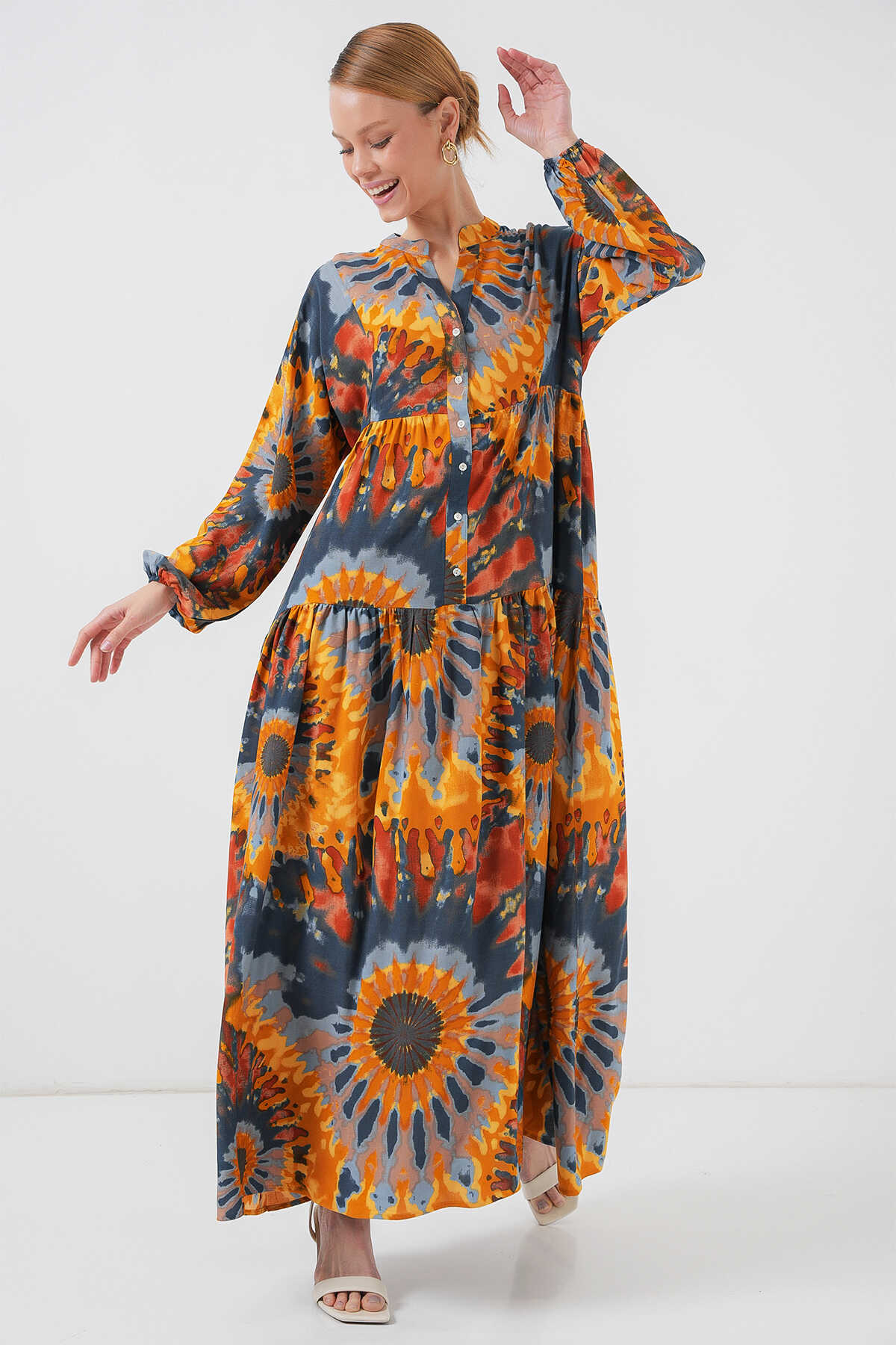 2423 Otantik Desenli Tesettür Elbise - L. Turuncu