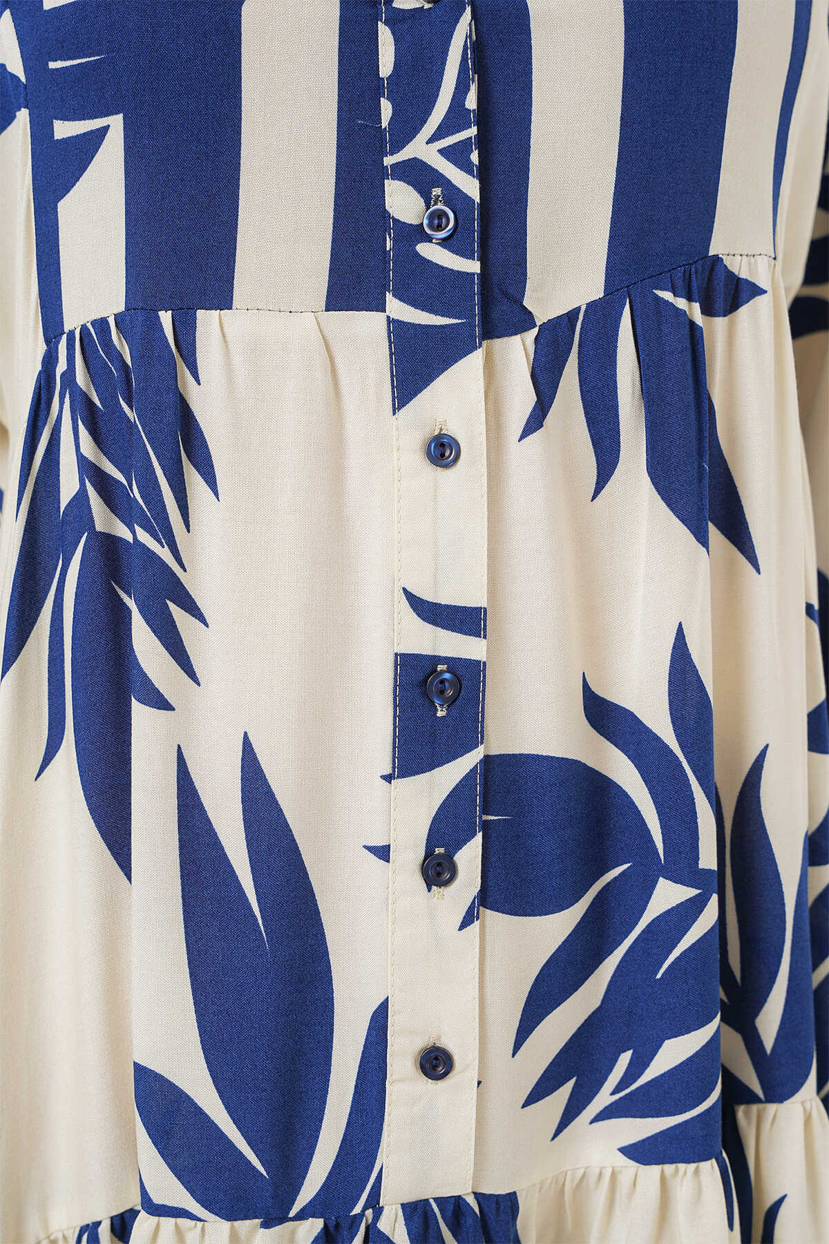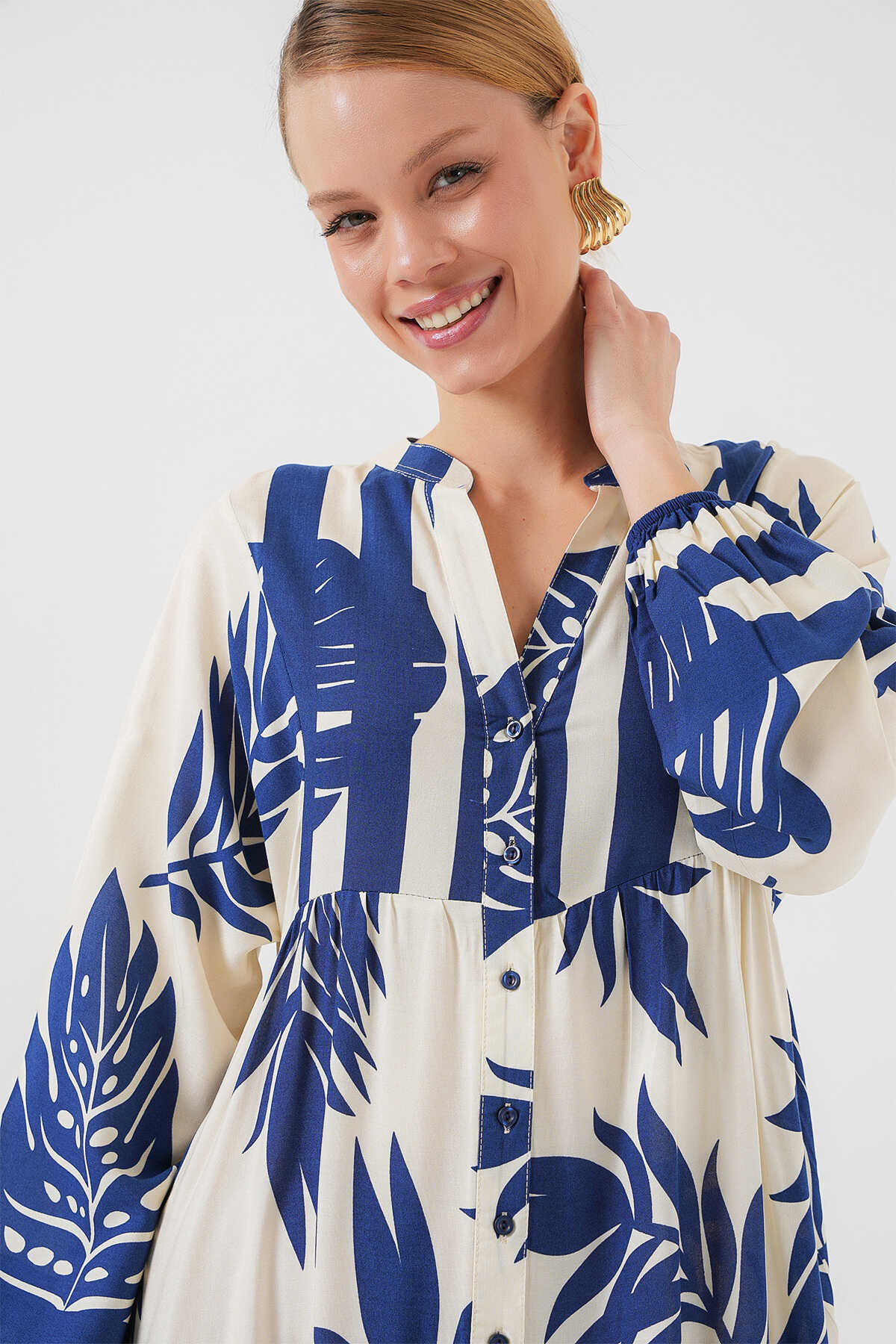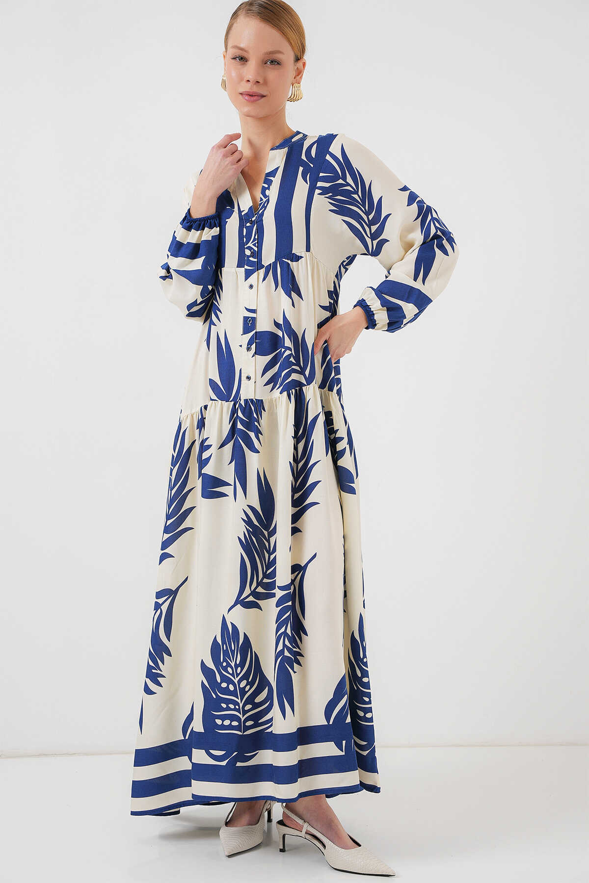 2423 Otantik Desenli Tesettür Elbise - Lacivert 0
