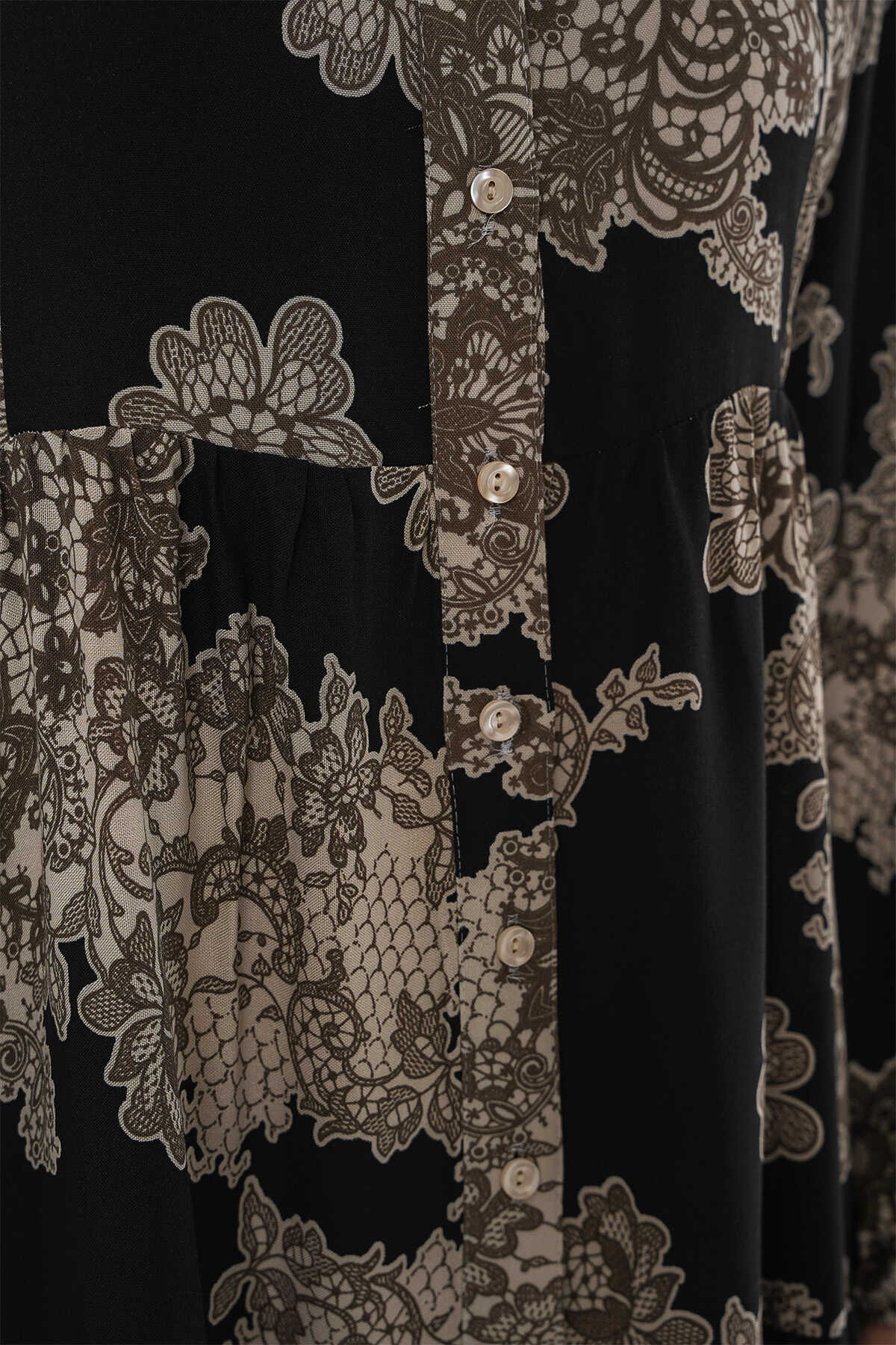 2423 Otantik Desenli Tesettür Elbise - Siyah 7
