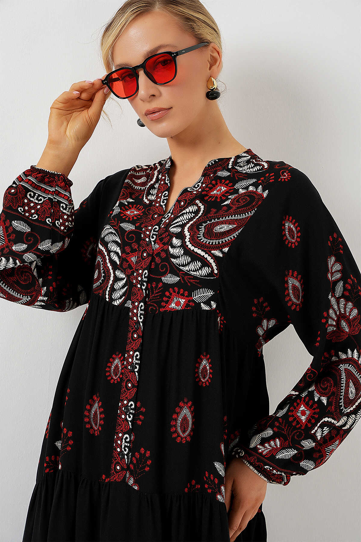 Otantik Desenli Elbise