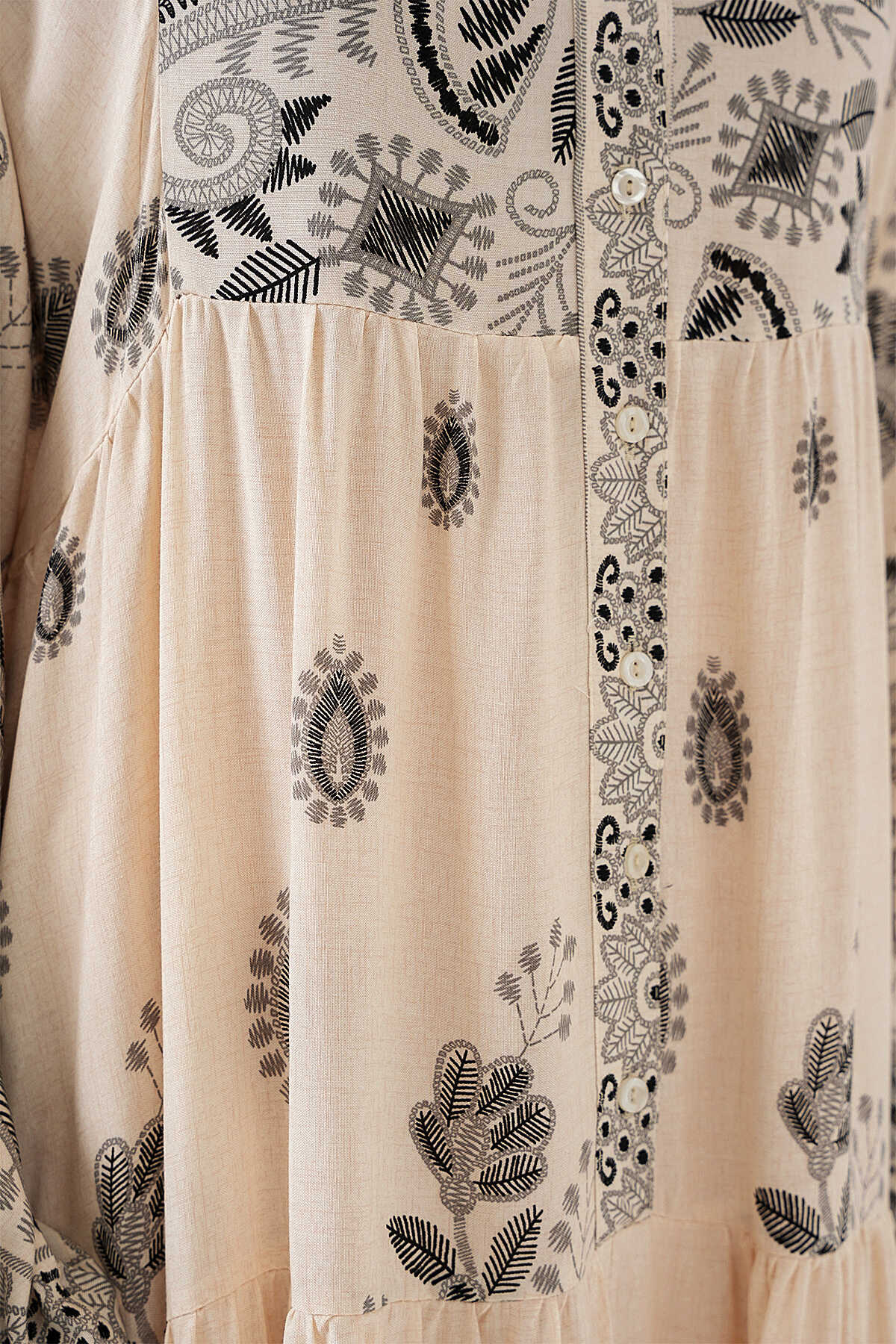 2423 Otantik Desenli Tesettür Elbise - Siyah - Krem - Kombin