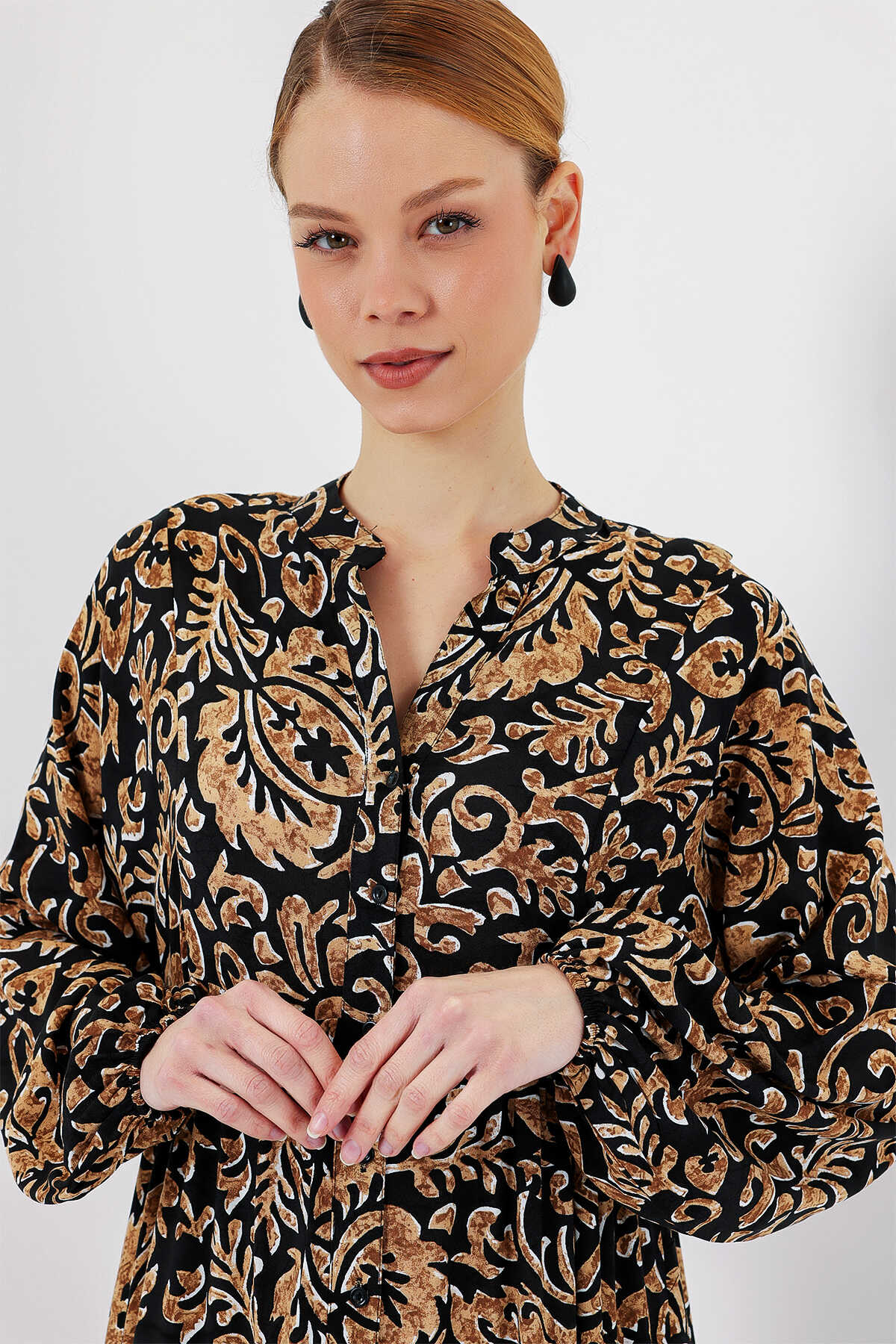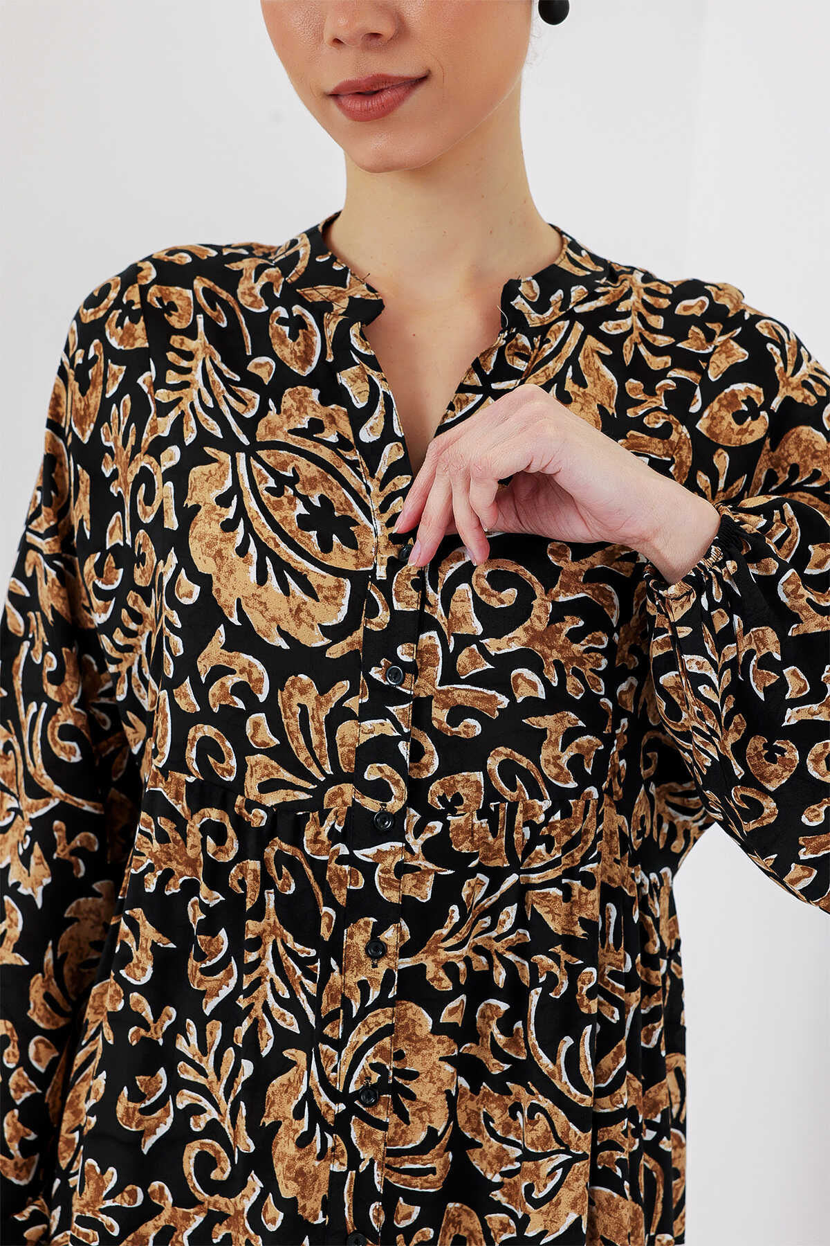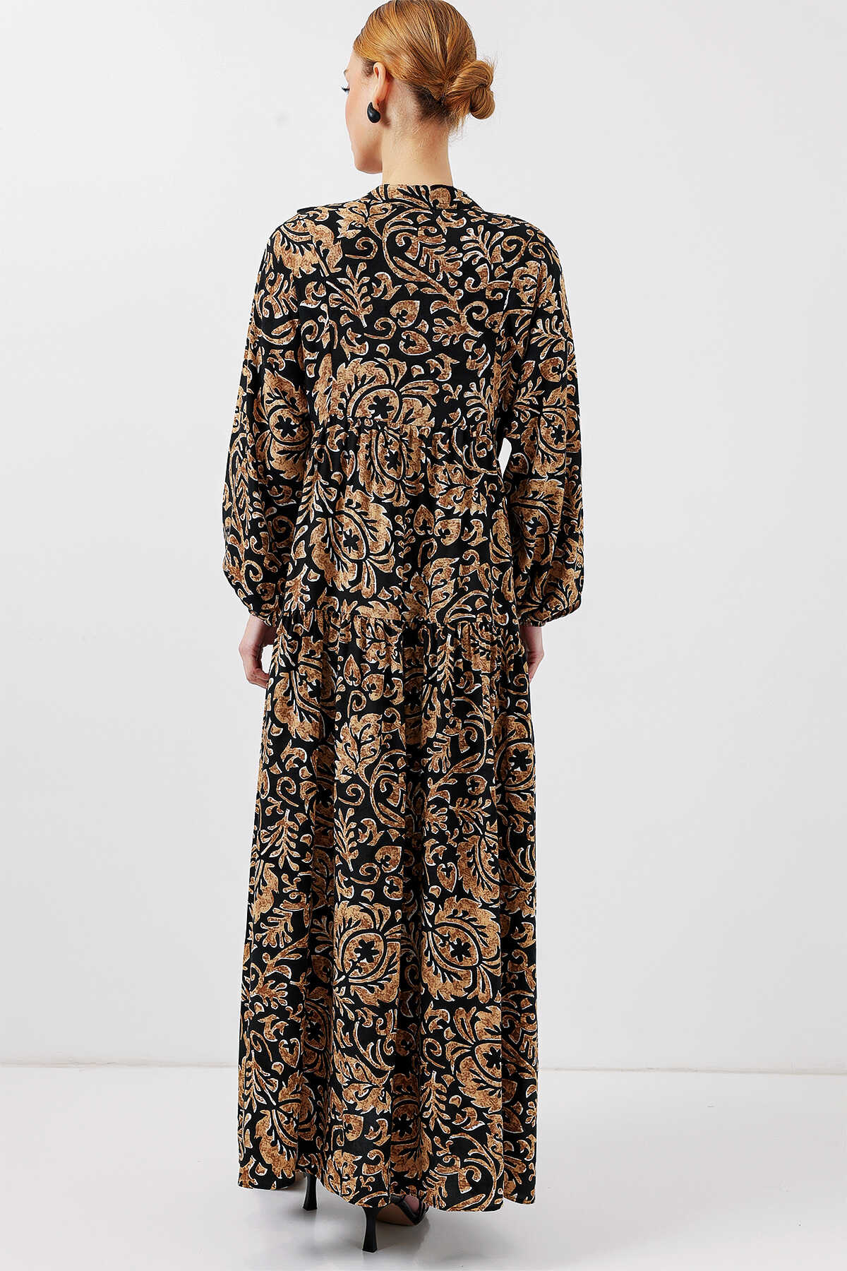 2423 Otantik Desenli Tesettür Elbise - Siyah10