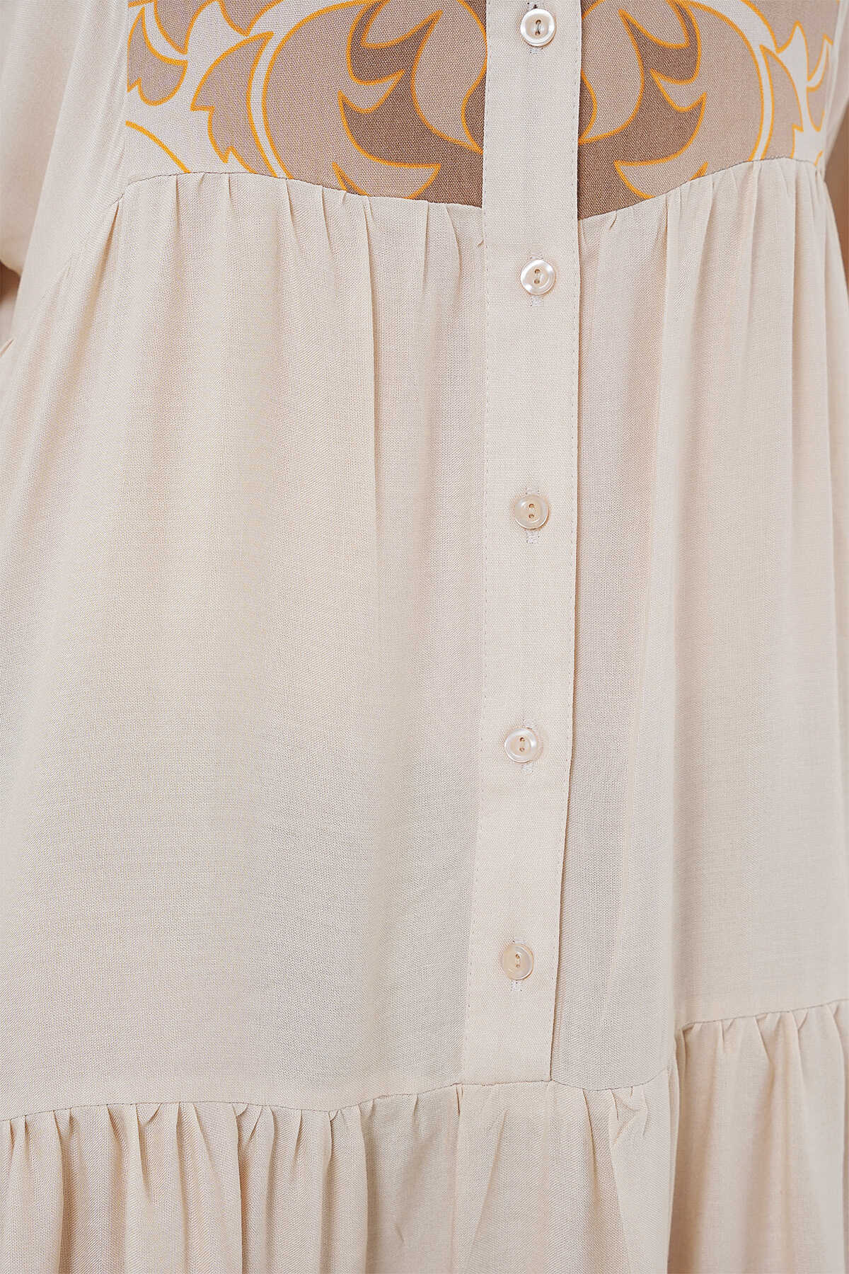 2423 Otantik Desenli Tesettür Elbise - T. Ekru - Kombin