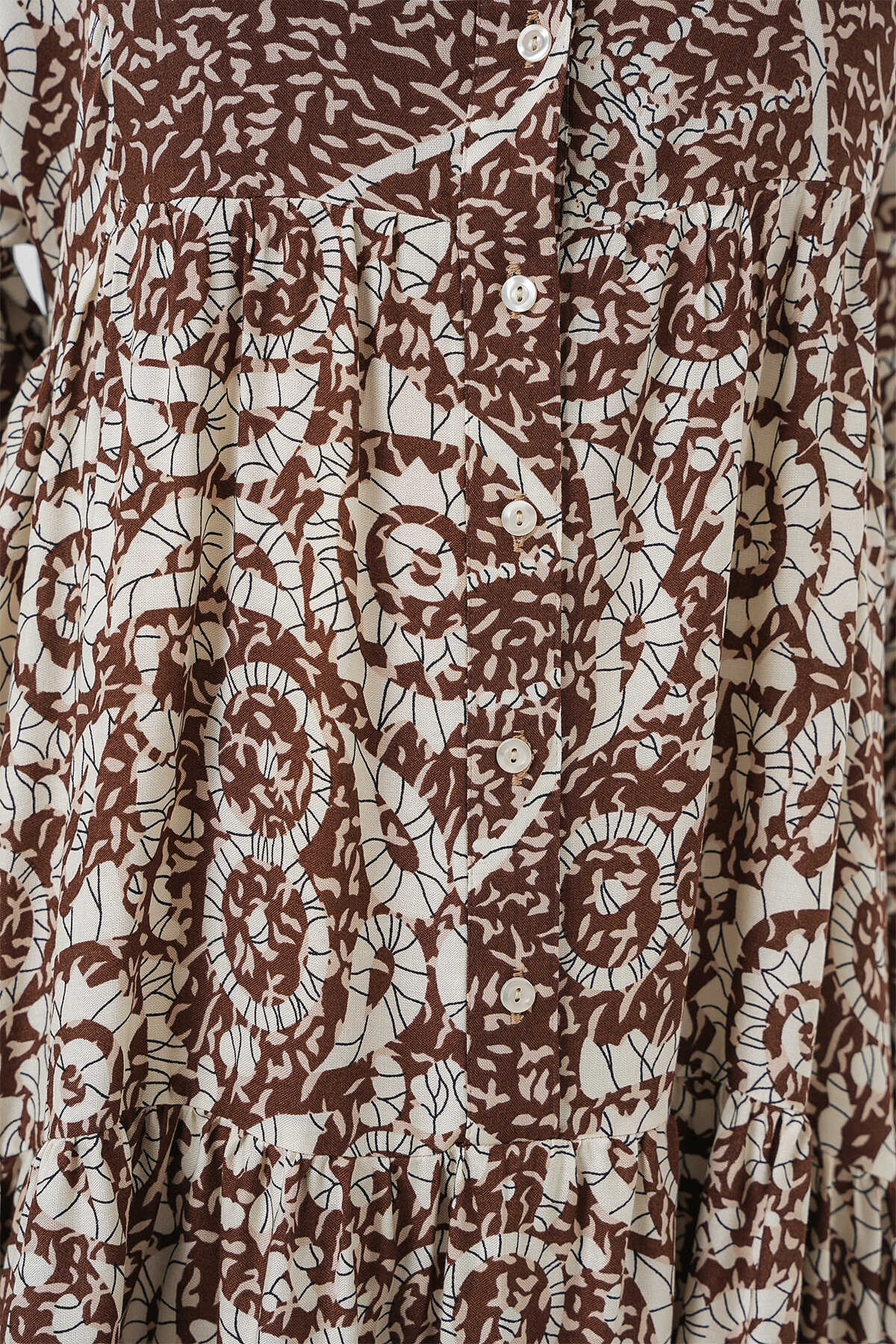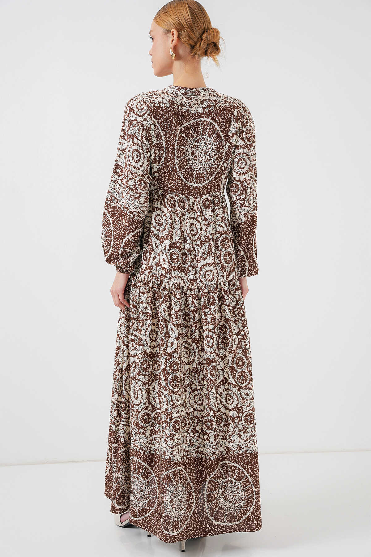 2423 Otantik Desenli Tesettür Elbise - Y.Kahve