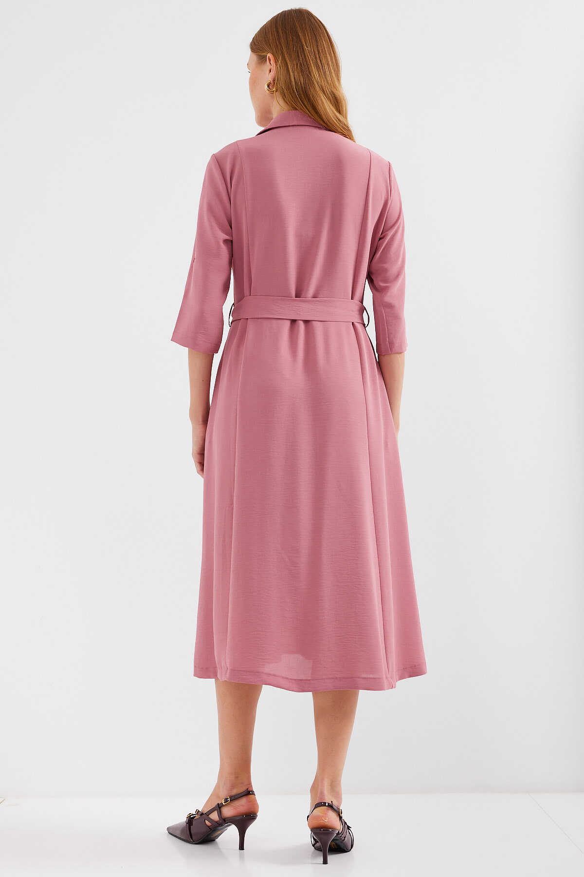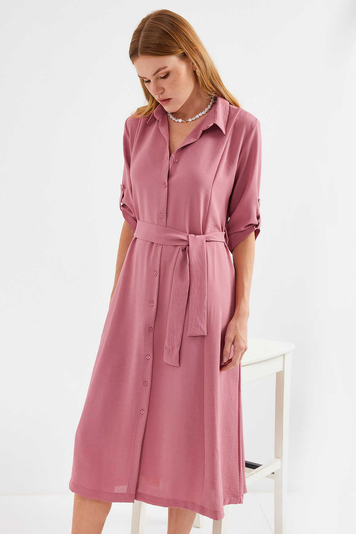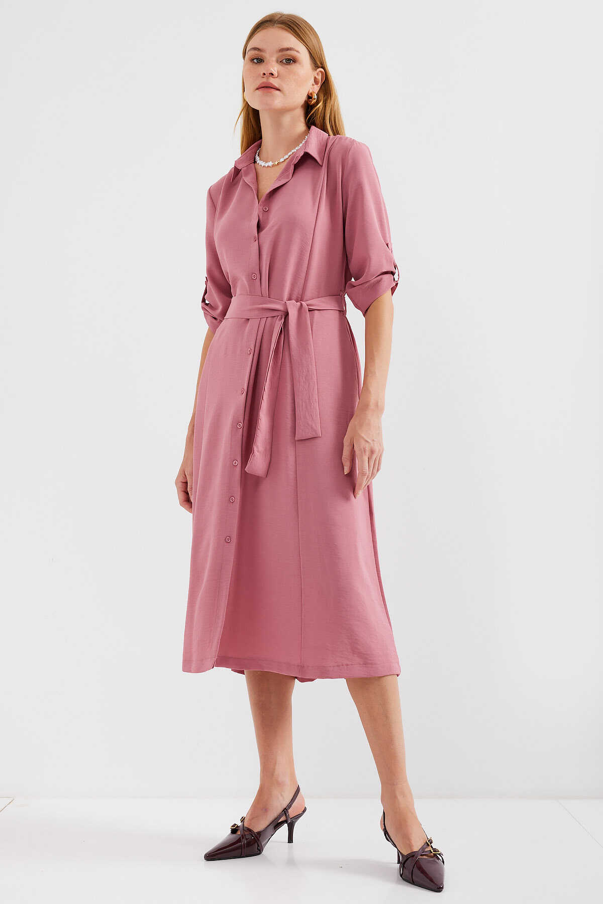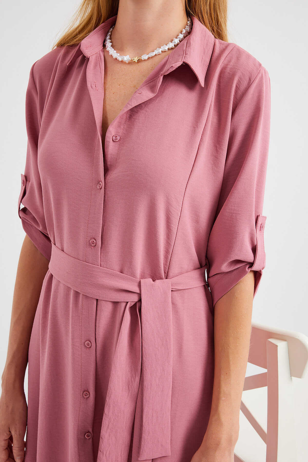 2442 Kuşaklı Gömlek Elbise - A.Gül Kurusu