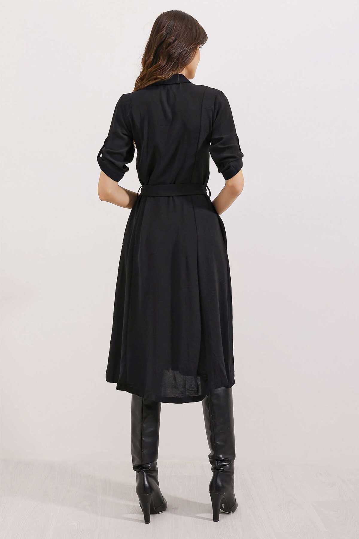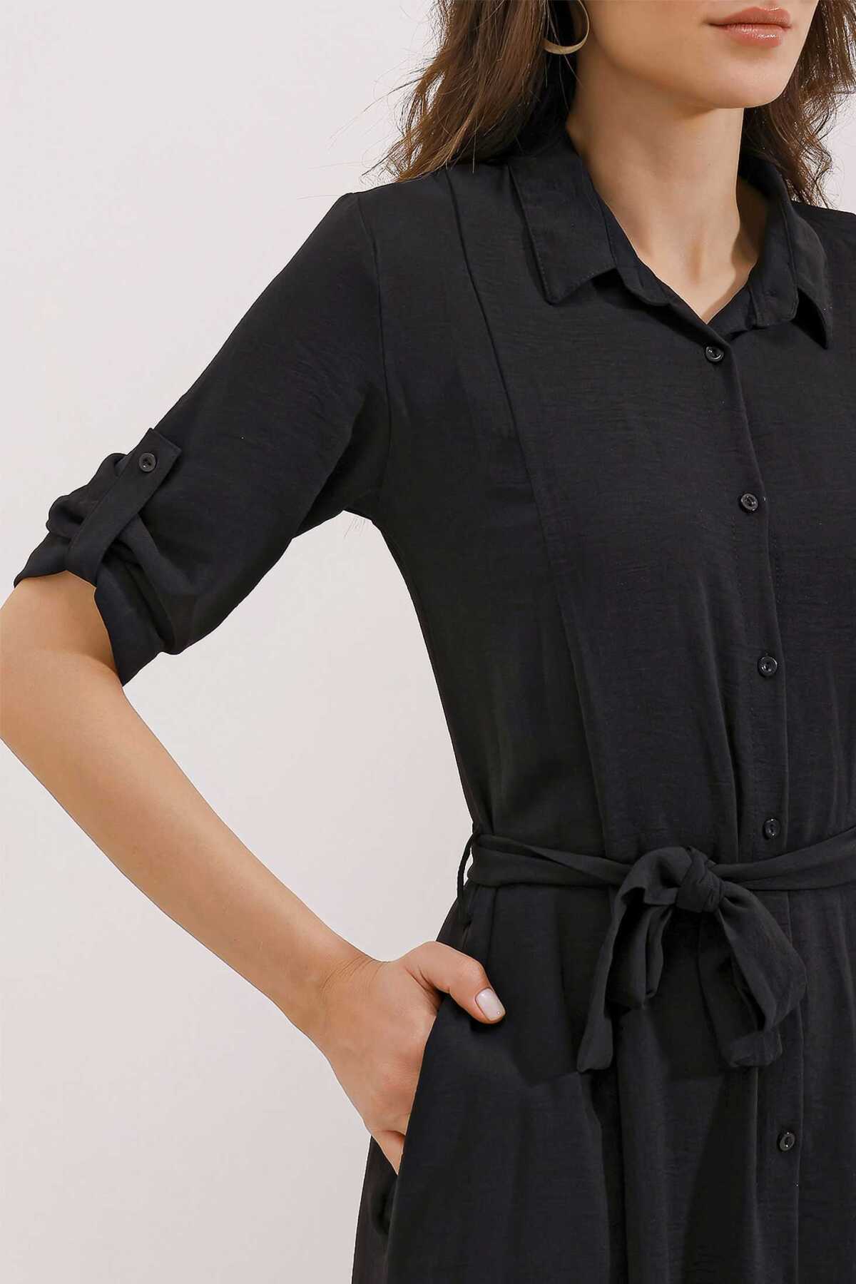 Kadın Siyah Kuşaklı Gömlek Elbise 2442 - Kombin