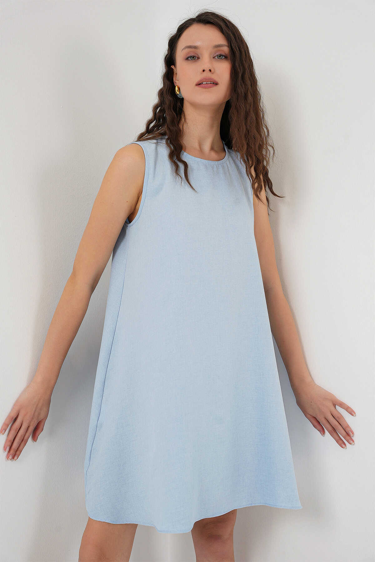 2444 Mini Keten Elbise - Açık Mavi - Kombin