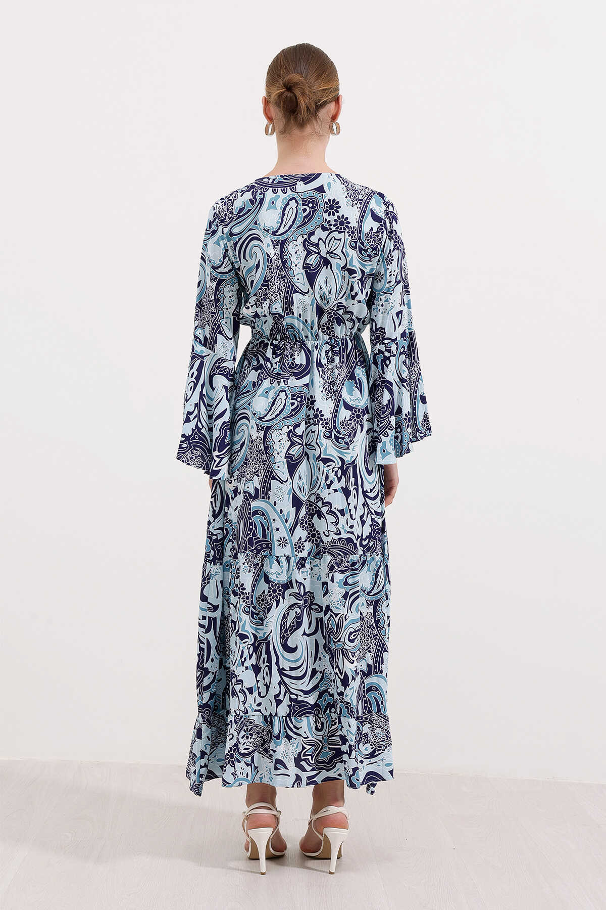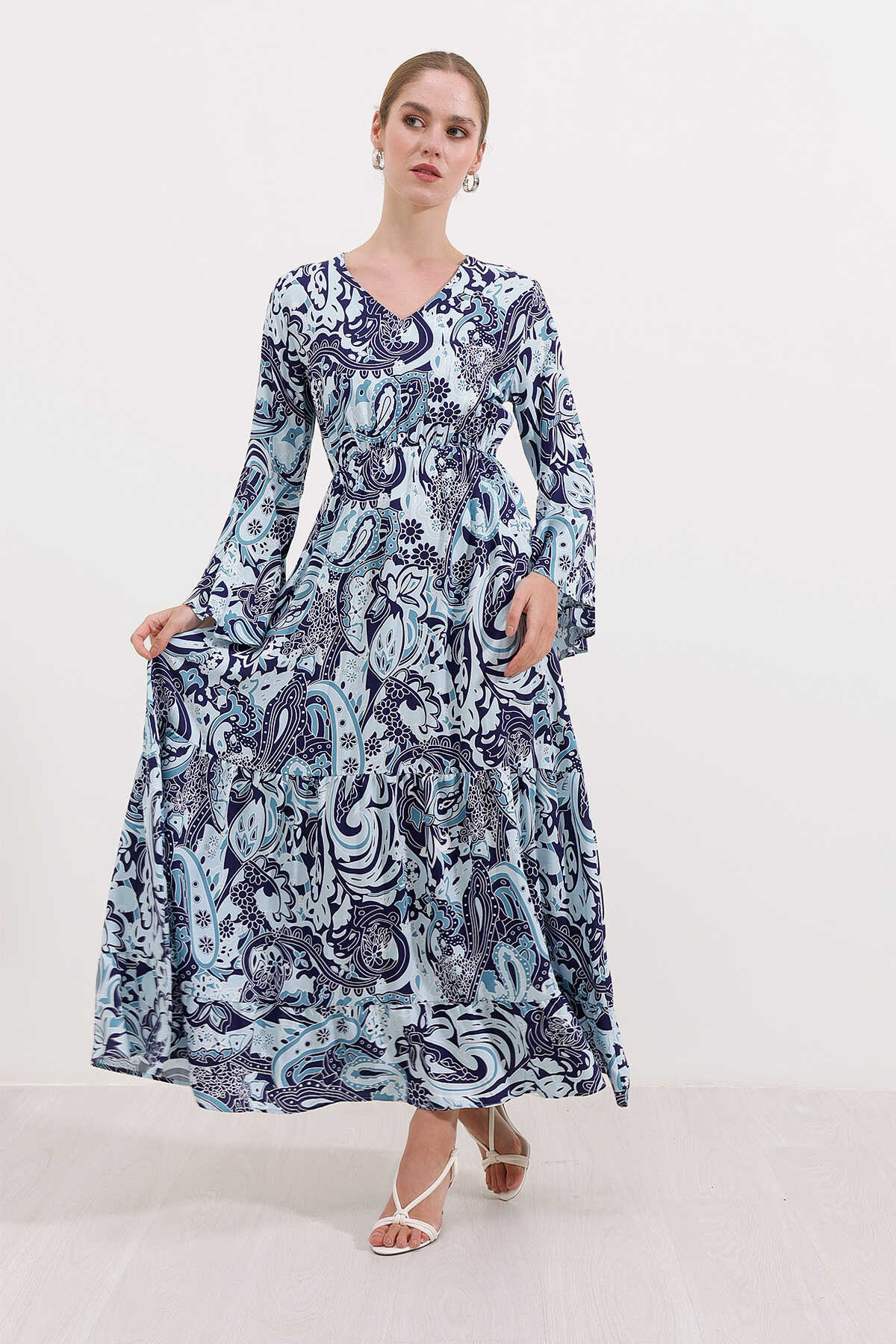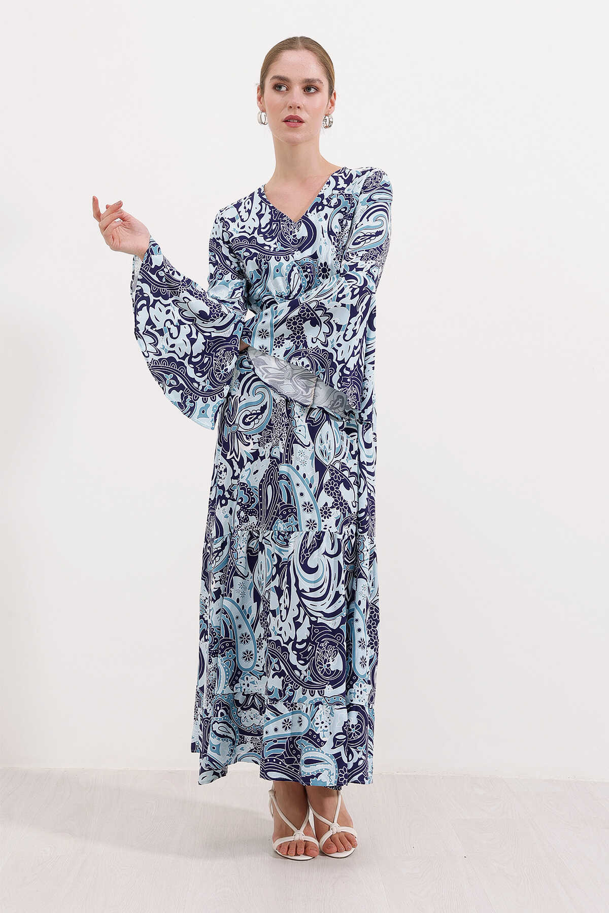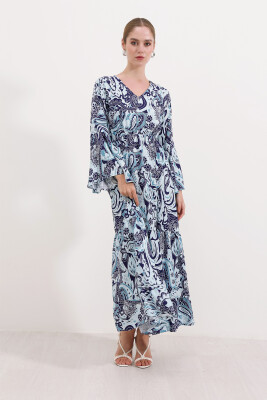 2454 Desenli Uzun Elbise - Lacivert - Kombin