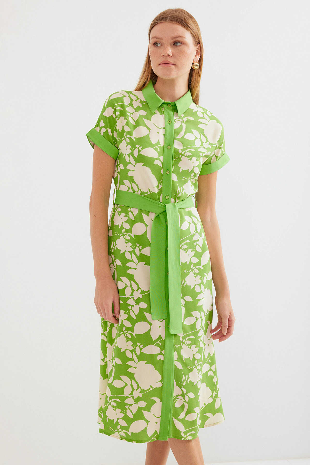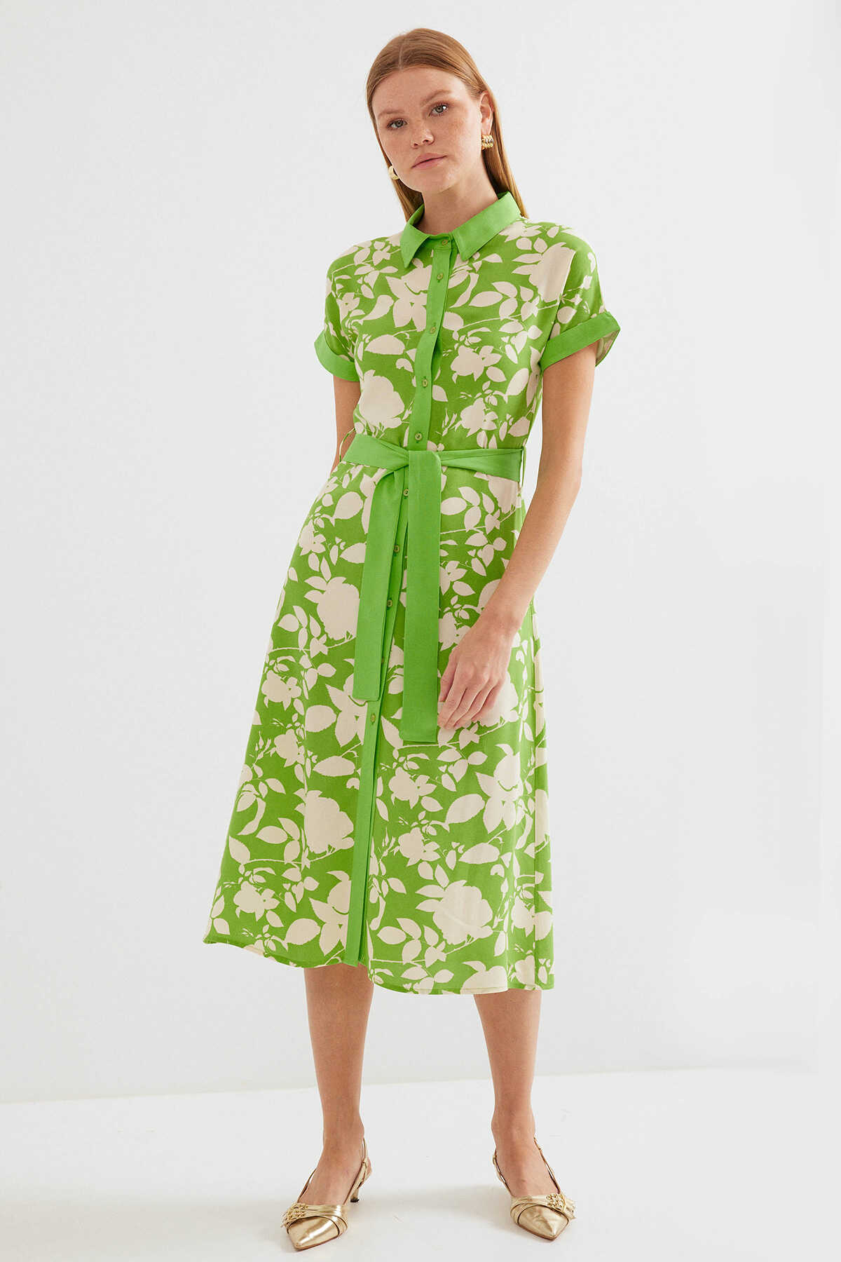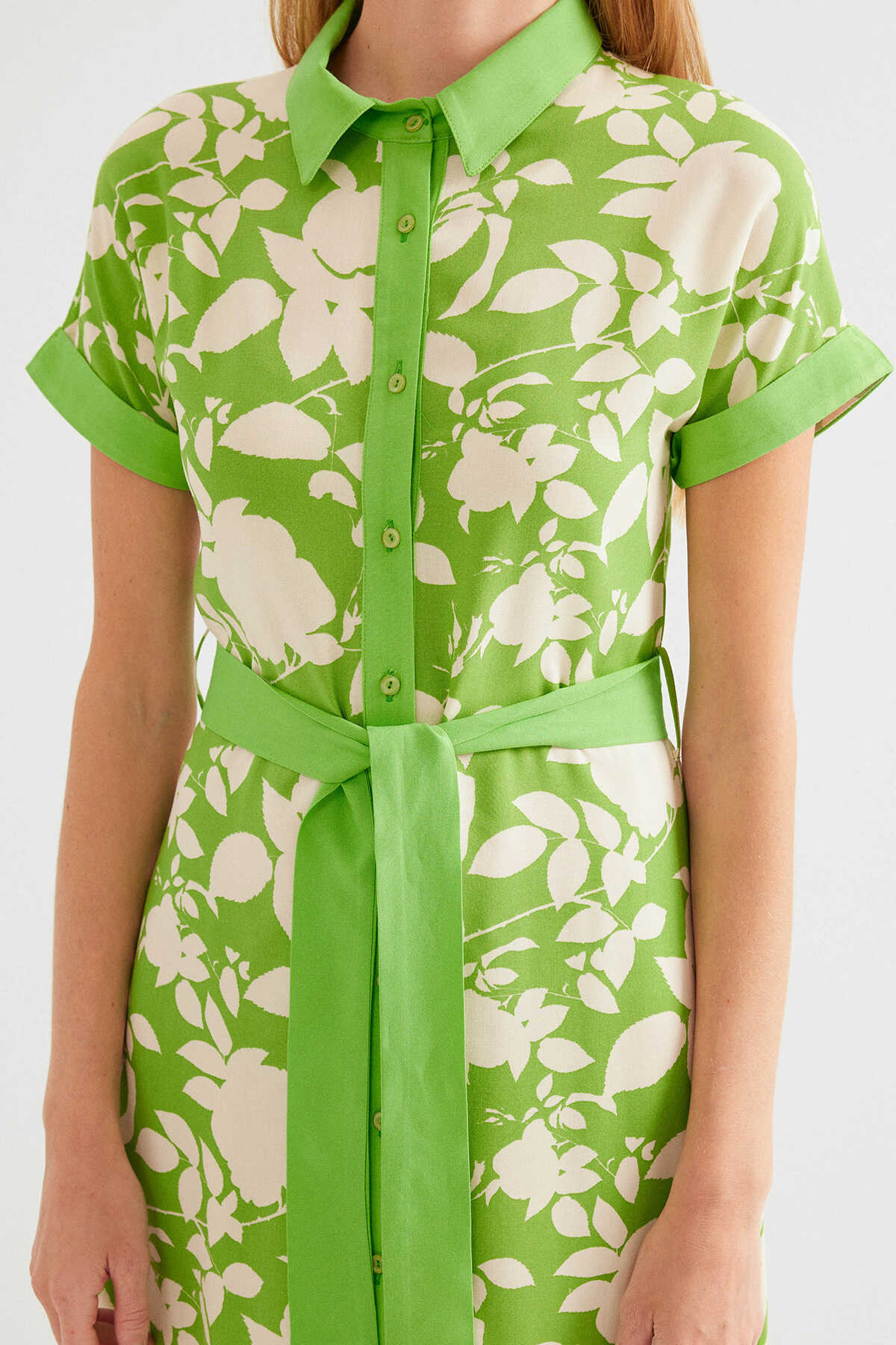 2455 Desenli Gömlek Elbise - Yeşil - Kombin