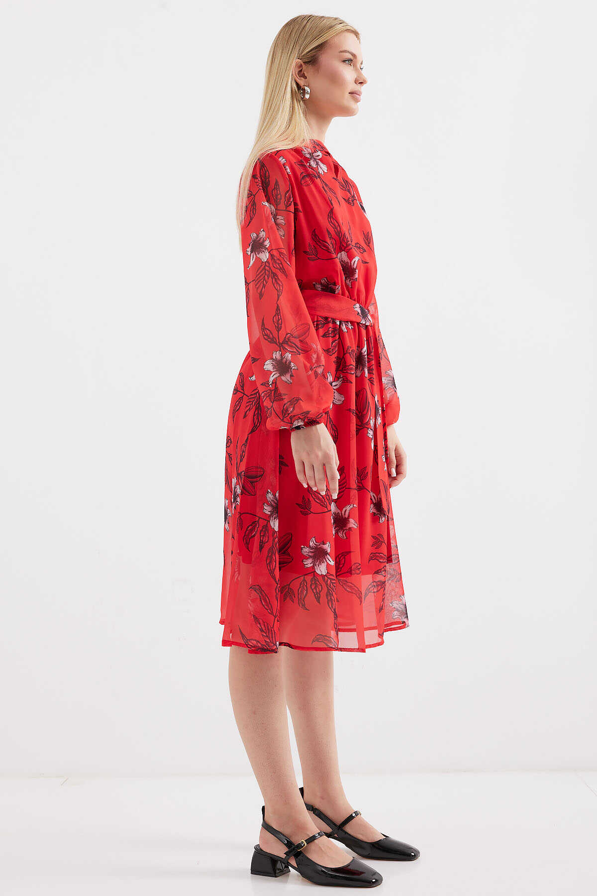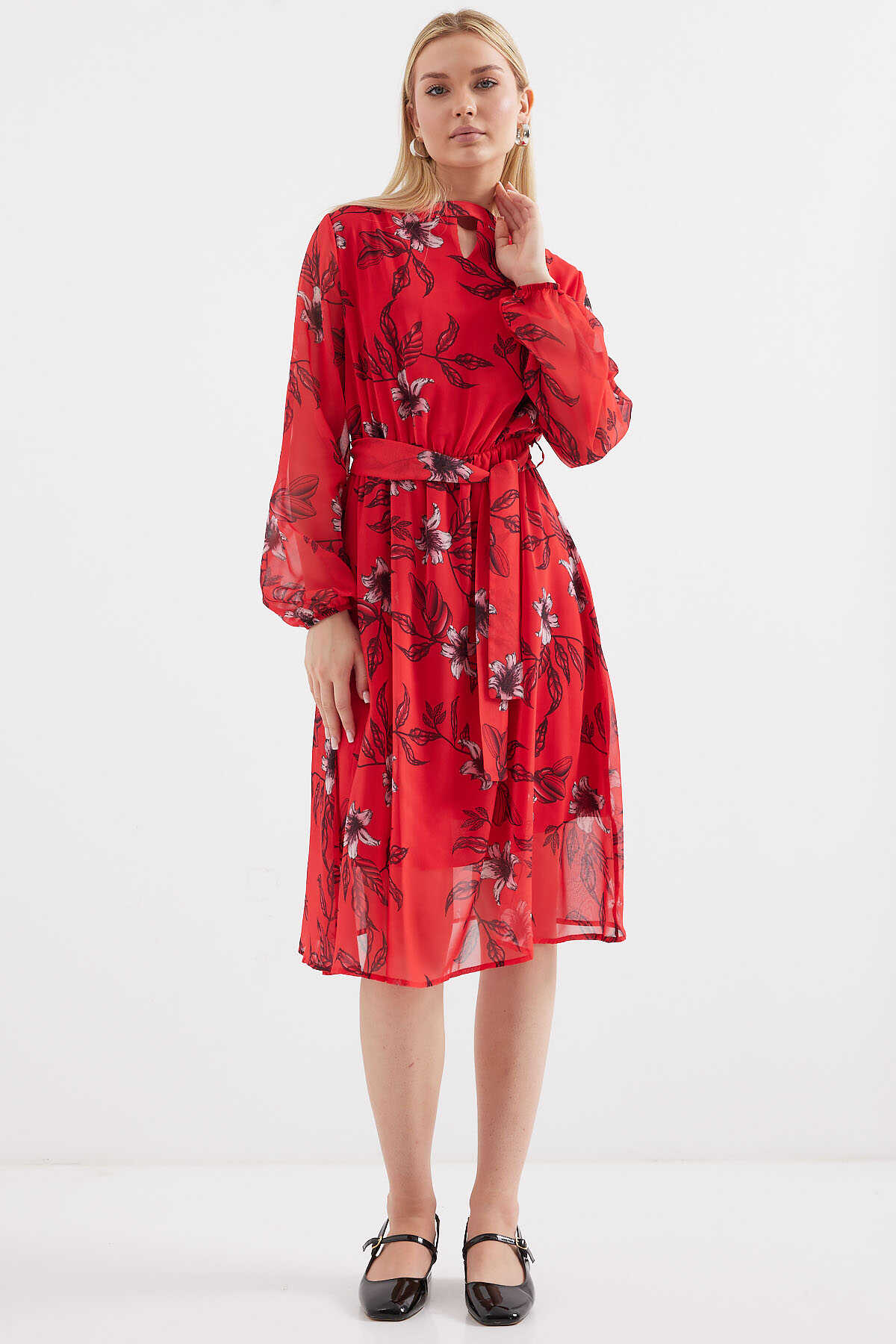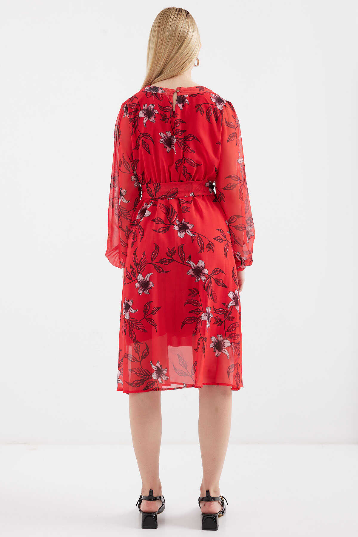 Desenli Sifon Elbise,Içi Astarli Sifon Elbise
