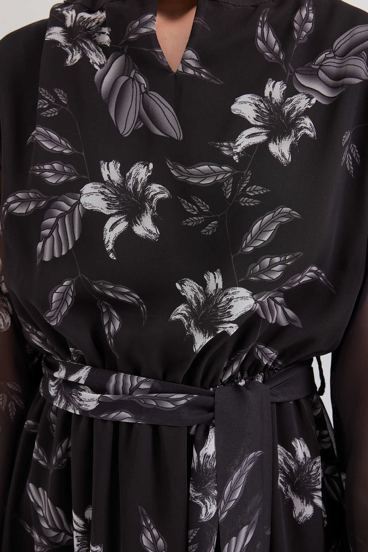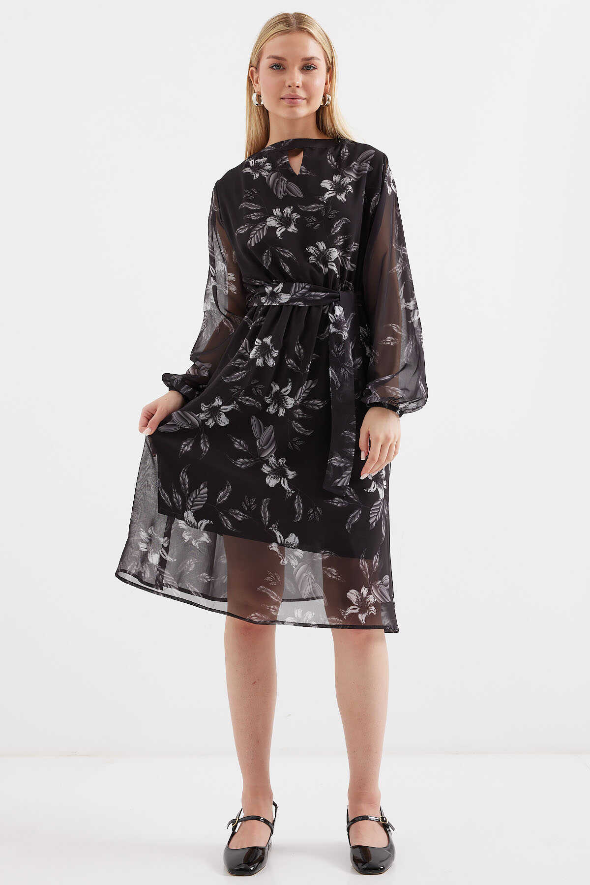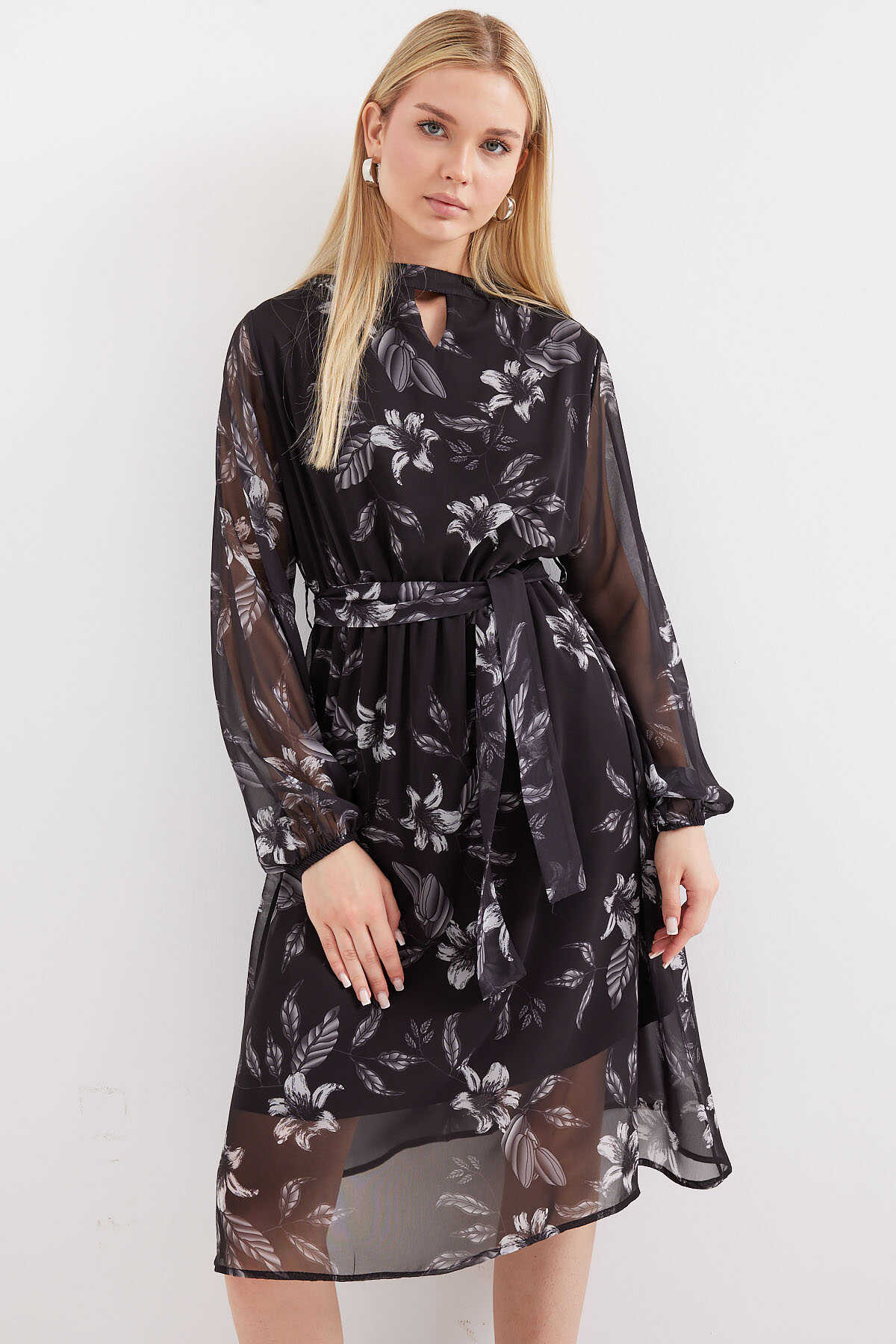 Desenli Sifon Elbise,Içi Astarli Sifon Elbise