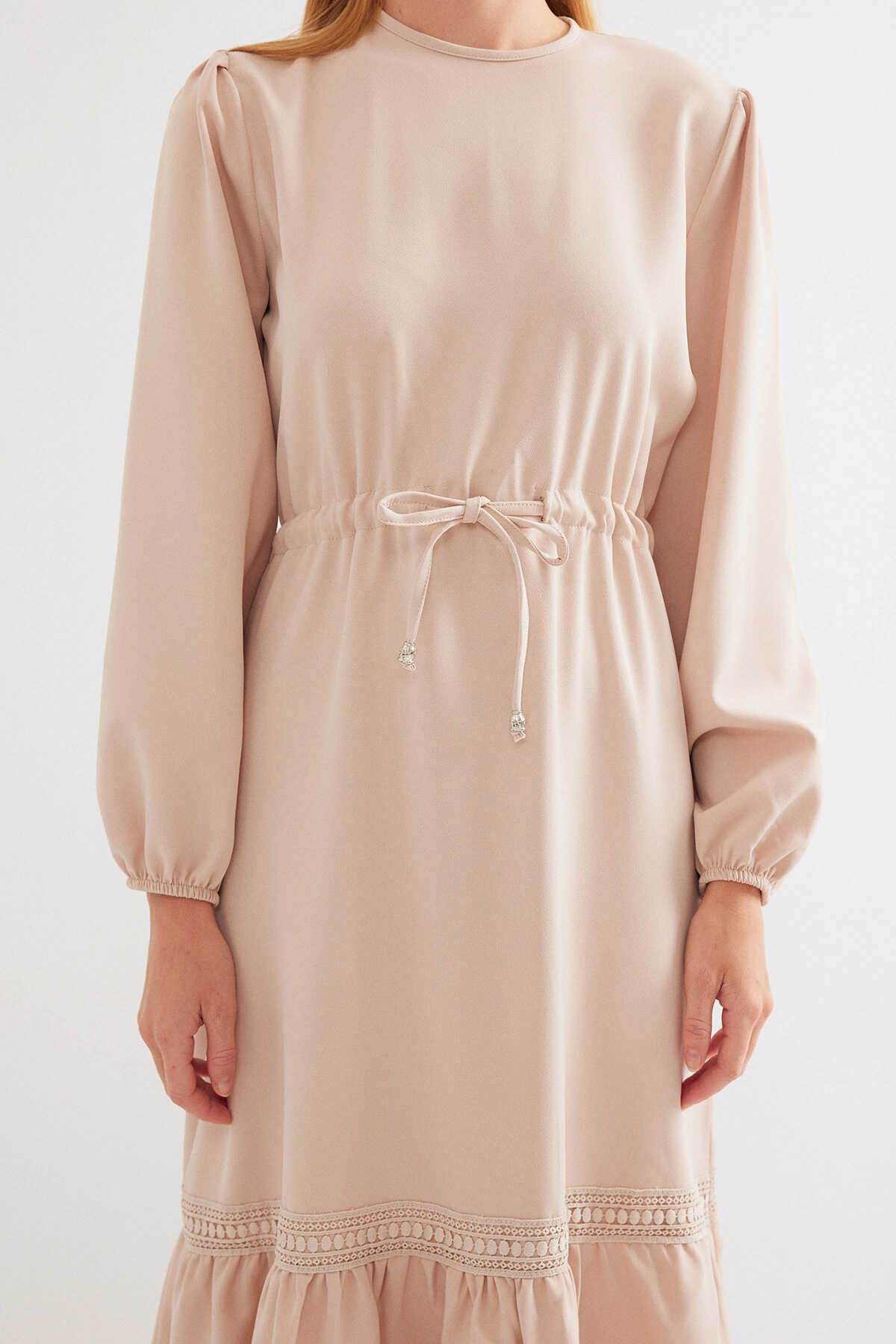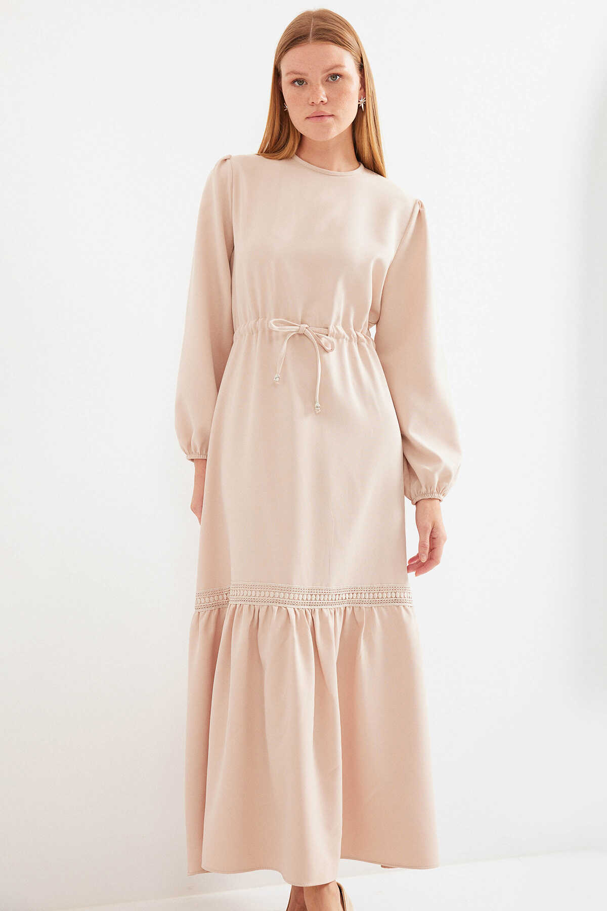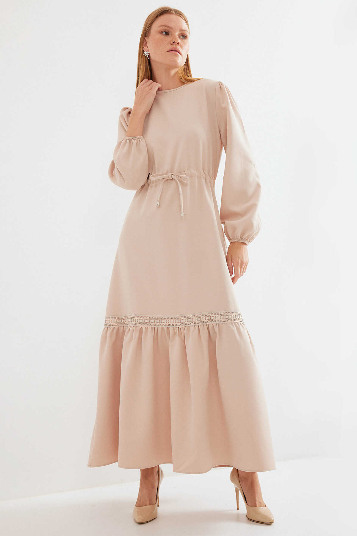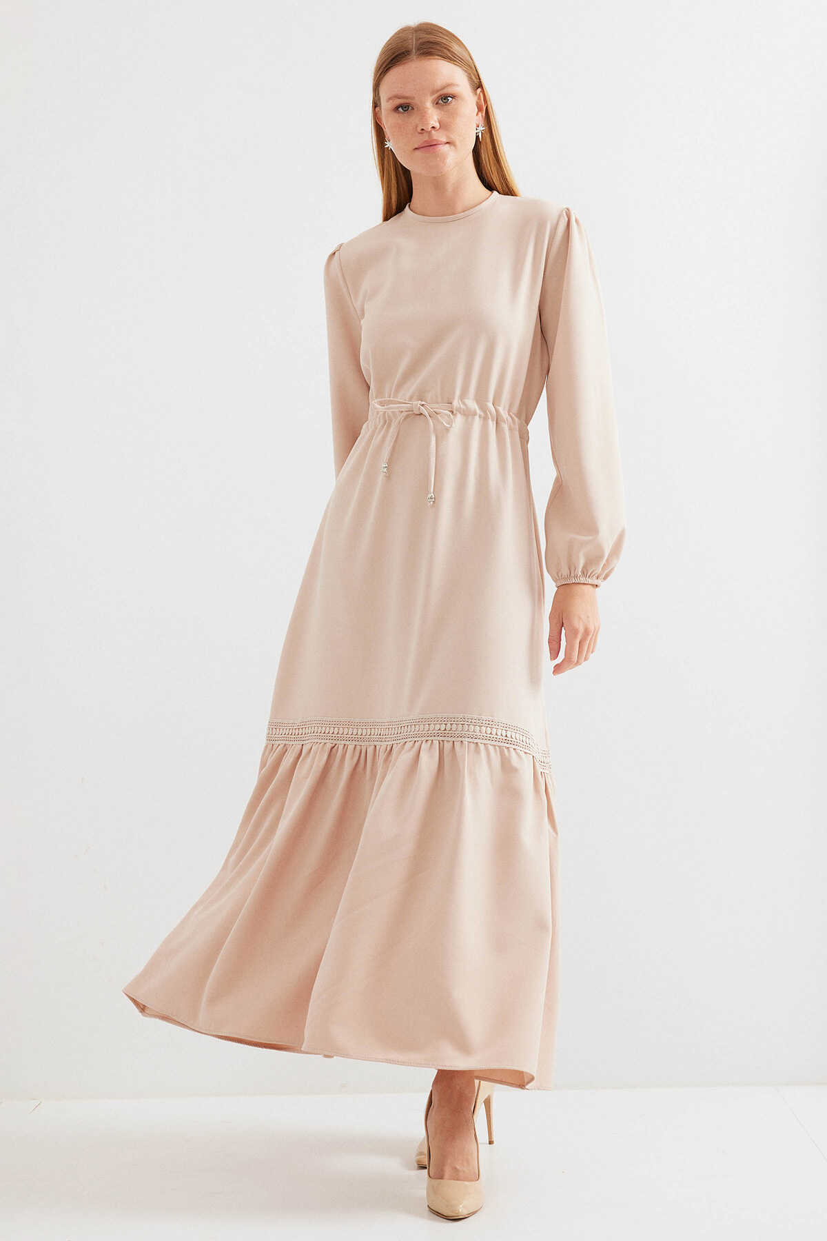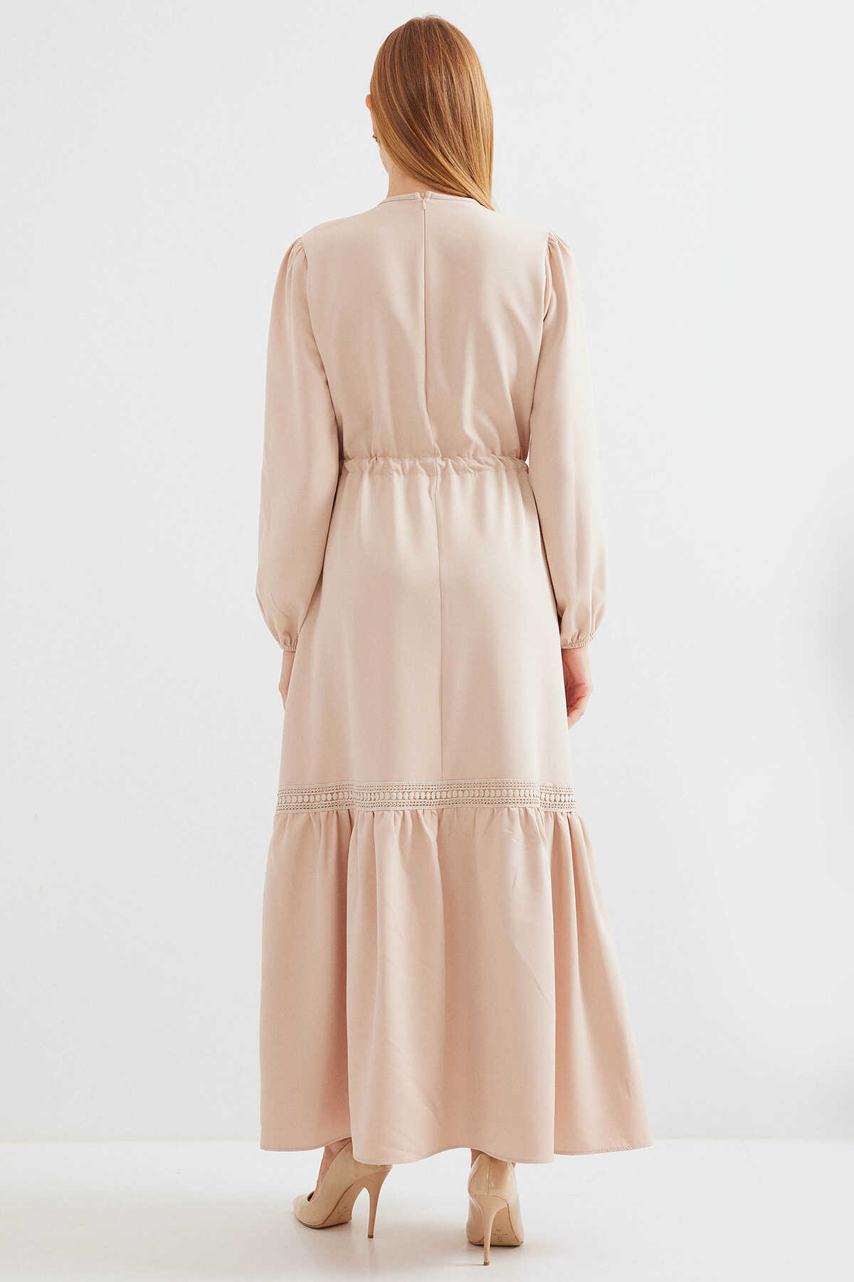2483 Uzun Boydan Elbise - Krem - Kombin