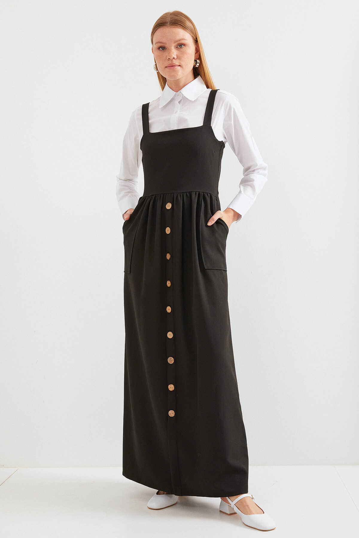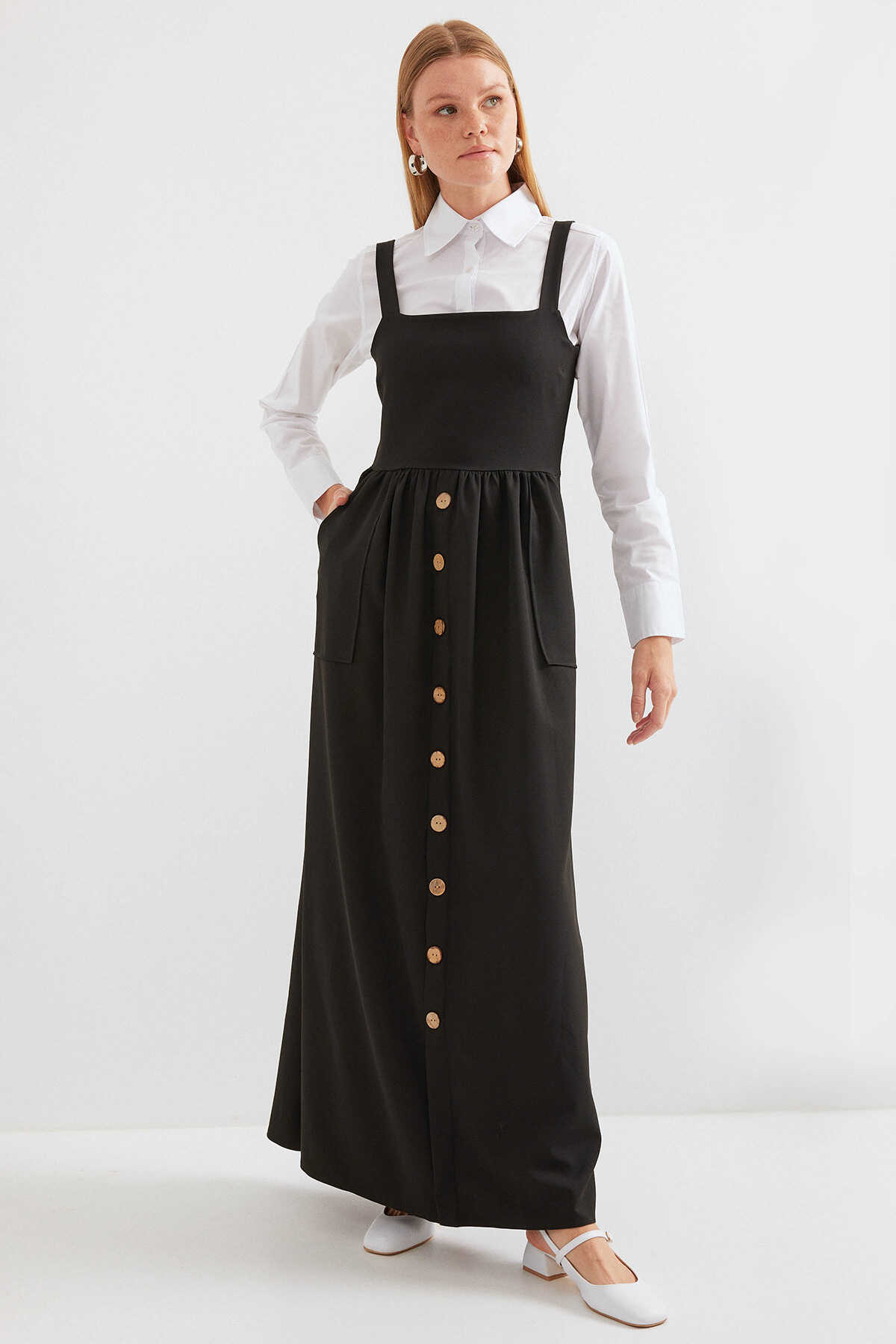 2490 Uzun Salopet Elbise - Siyah - Kombin