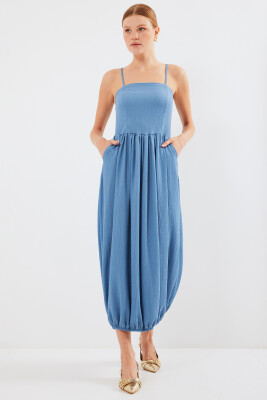 2492 Askılı Örme Salopet Elbise - İndigo