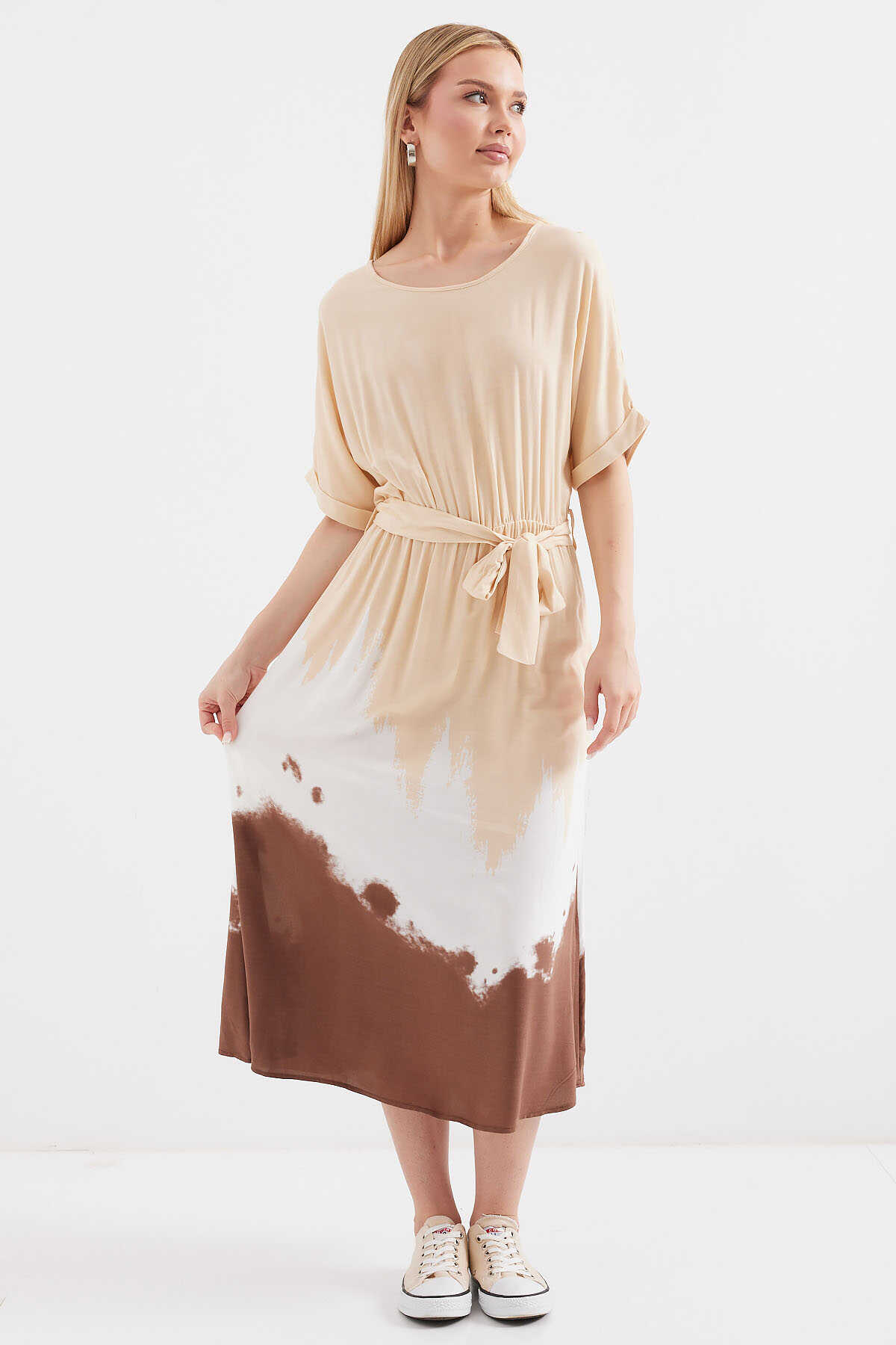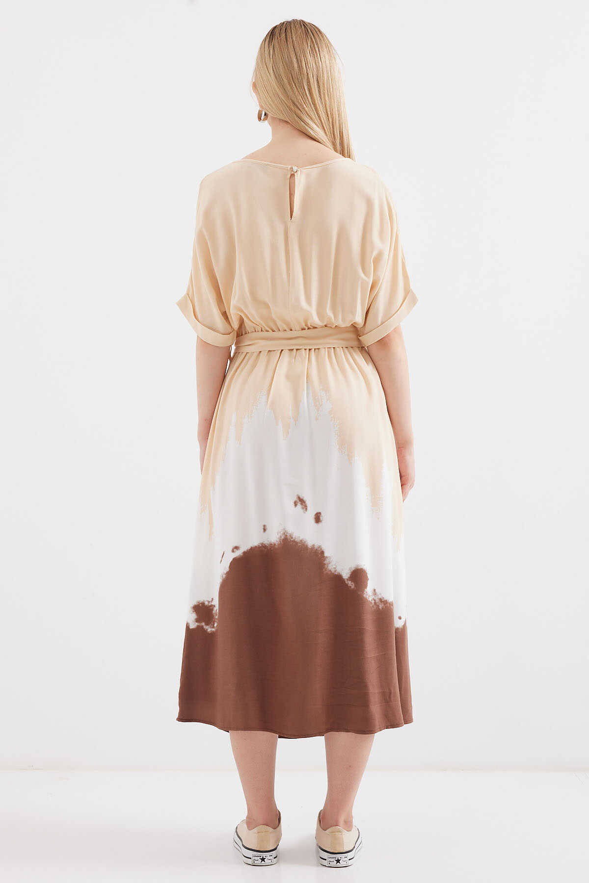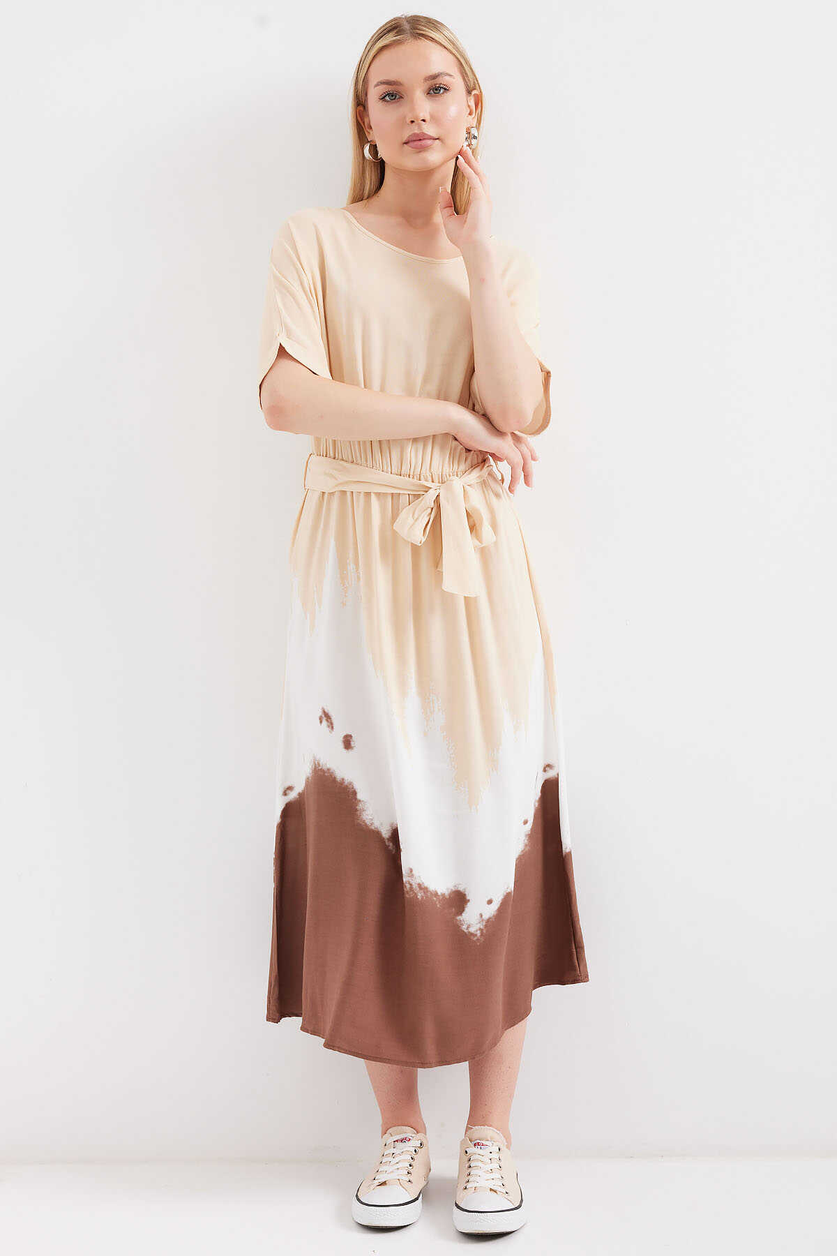 Desenli Kisa Kol Viskon Elbise