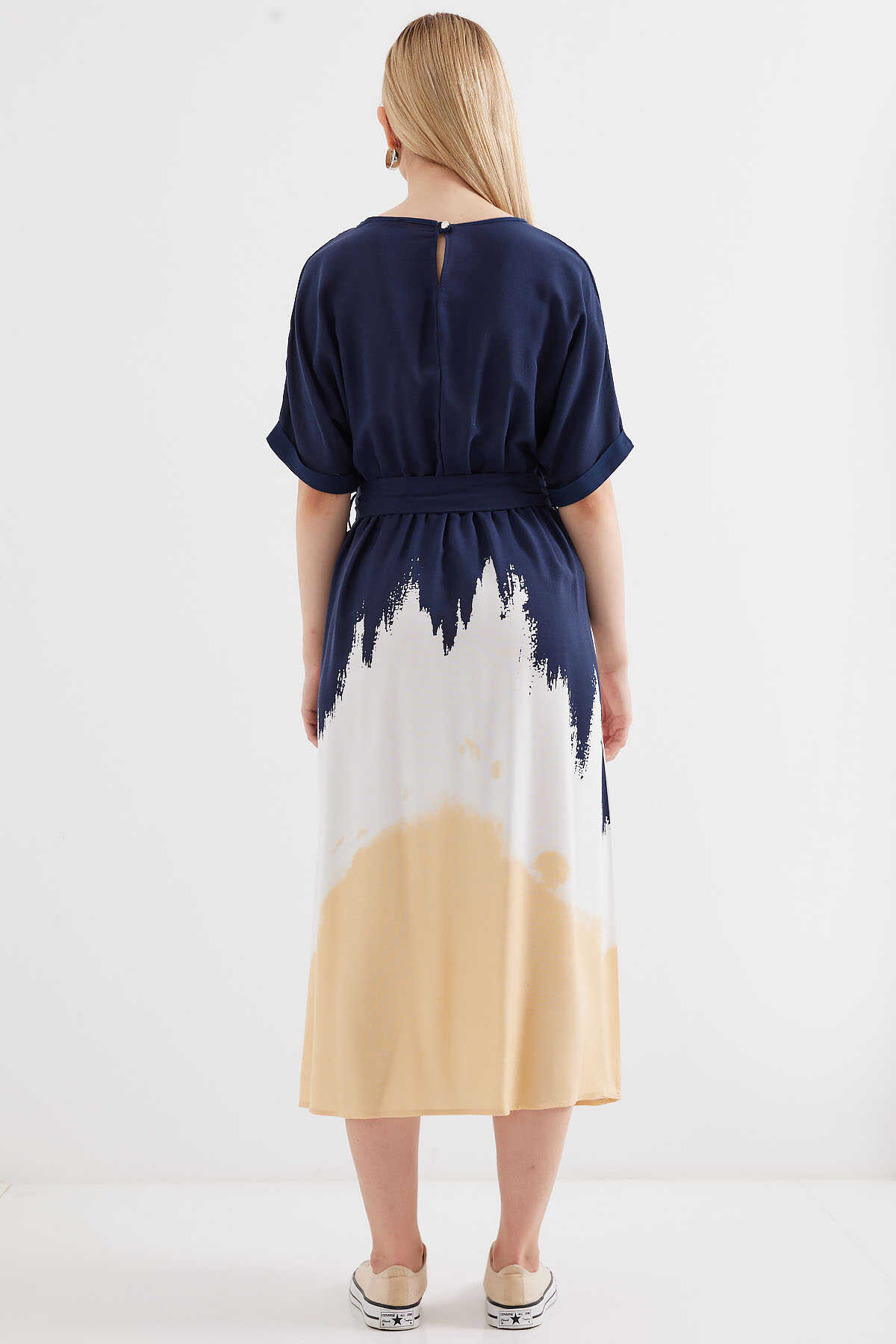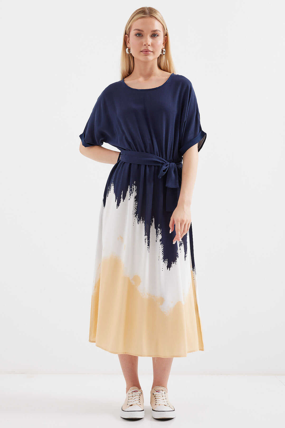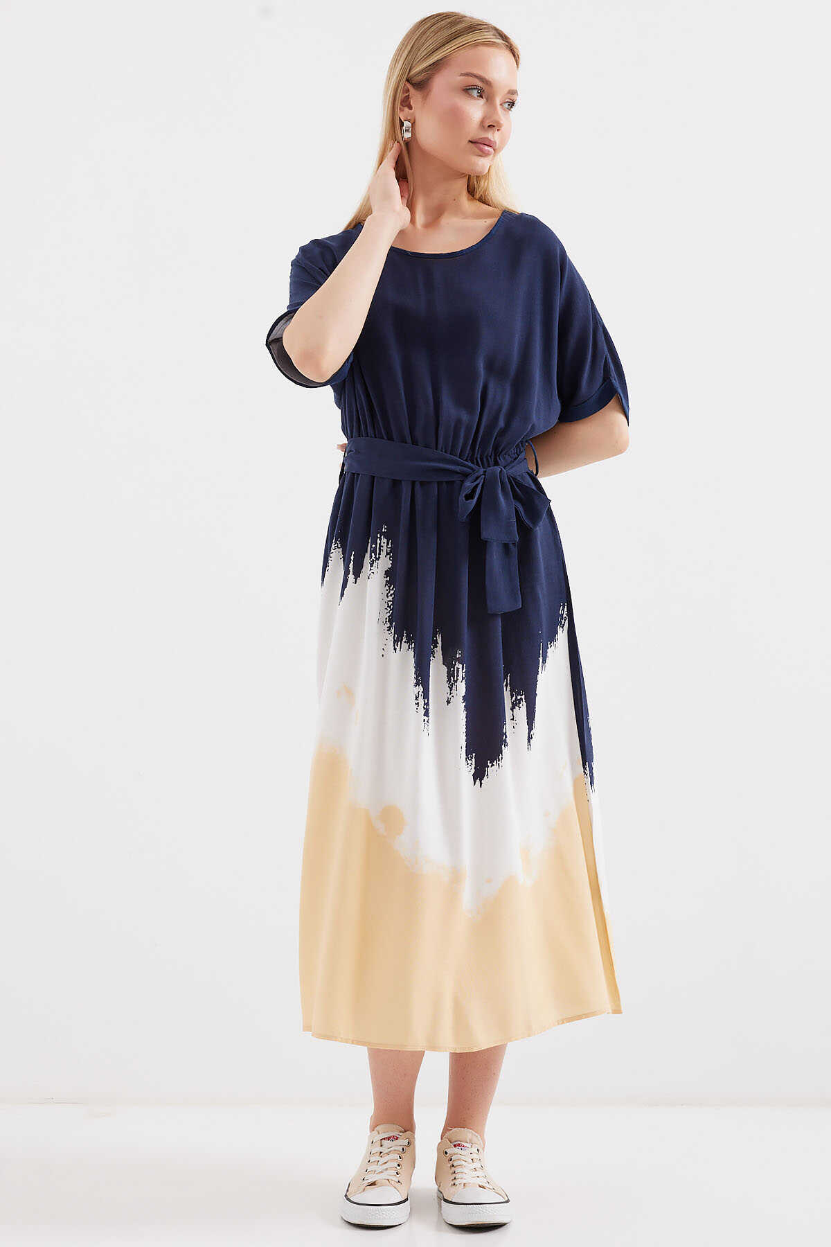 Desenli Kisa Kol Viskon Elbise