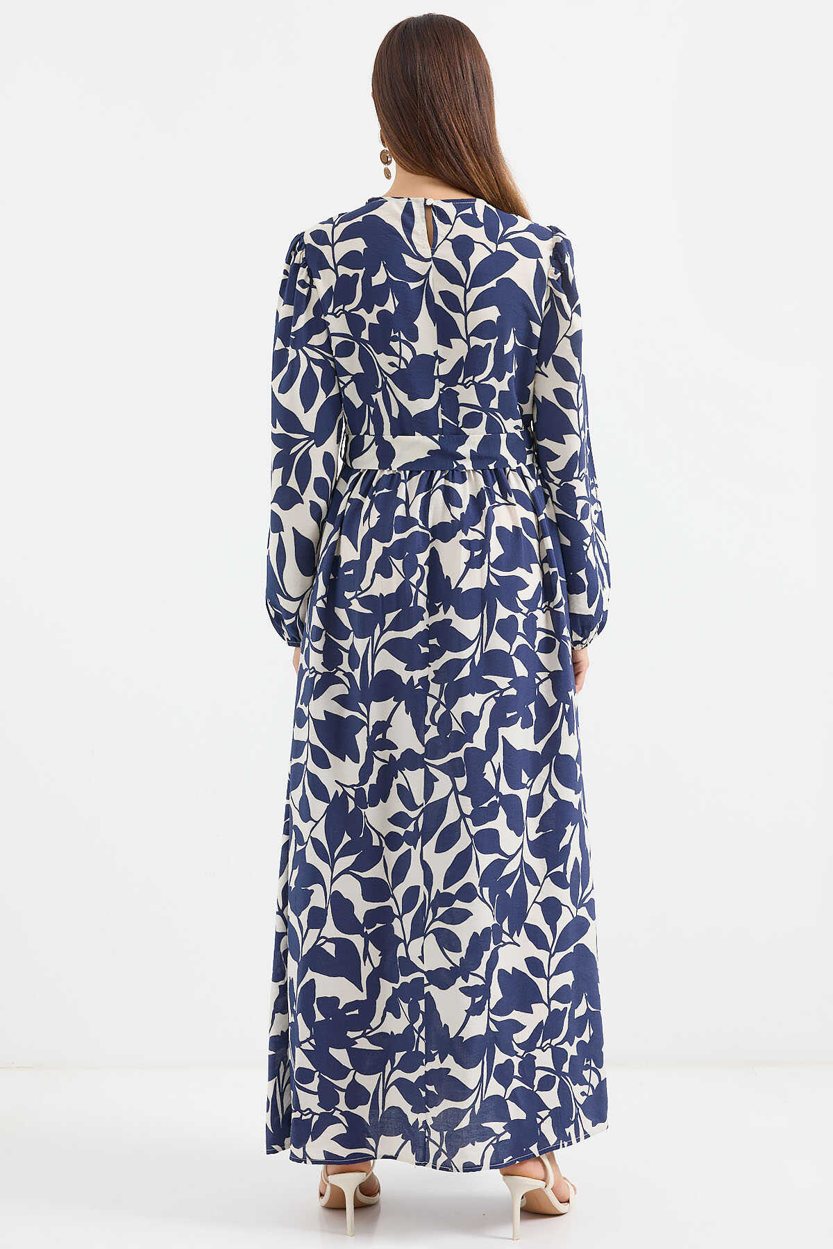 2513 Balon Kol Tesettür Elbise - Lacivert