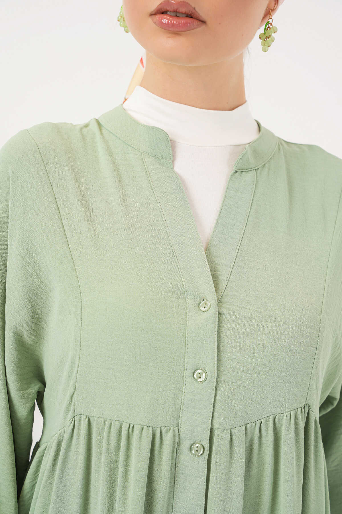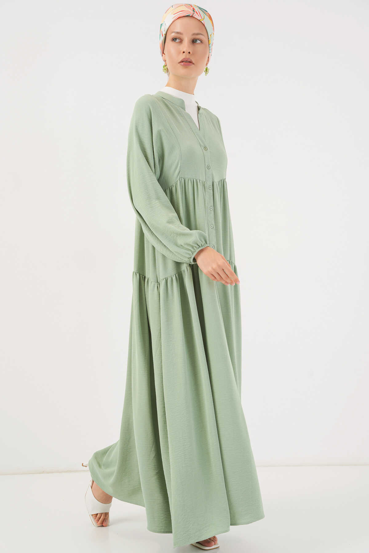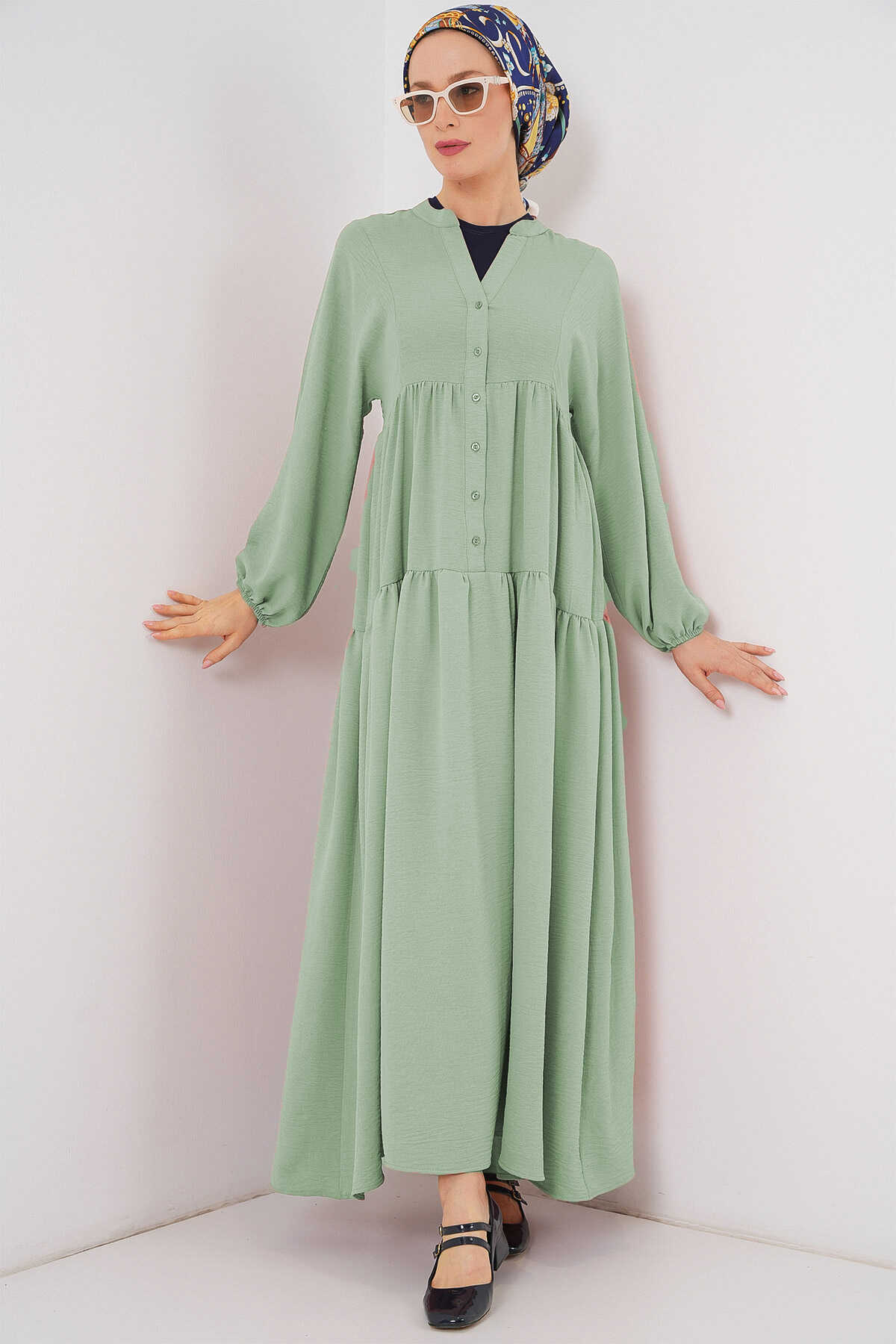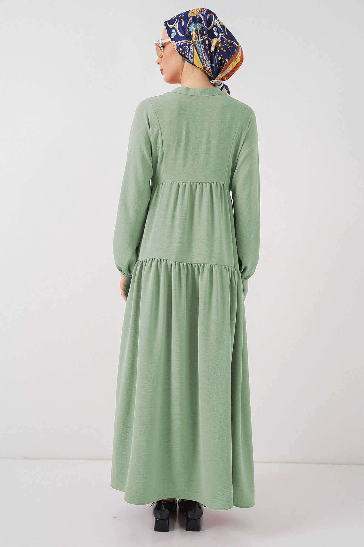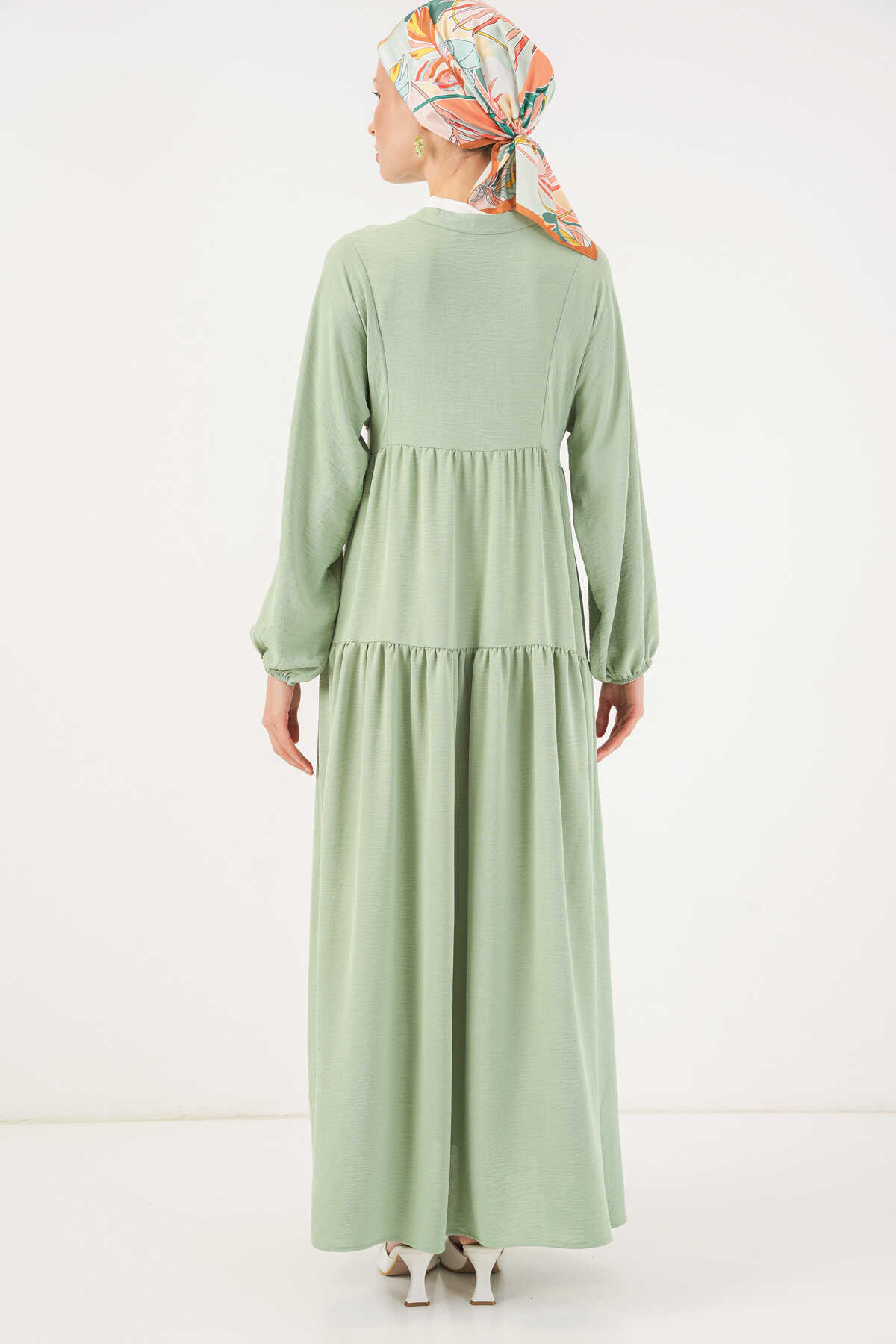 2527 Kadın Uzun Tesettür Elbise - E.Yeşil